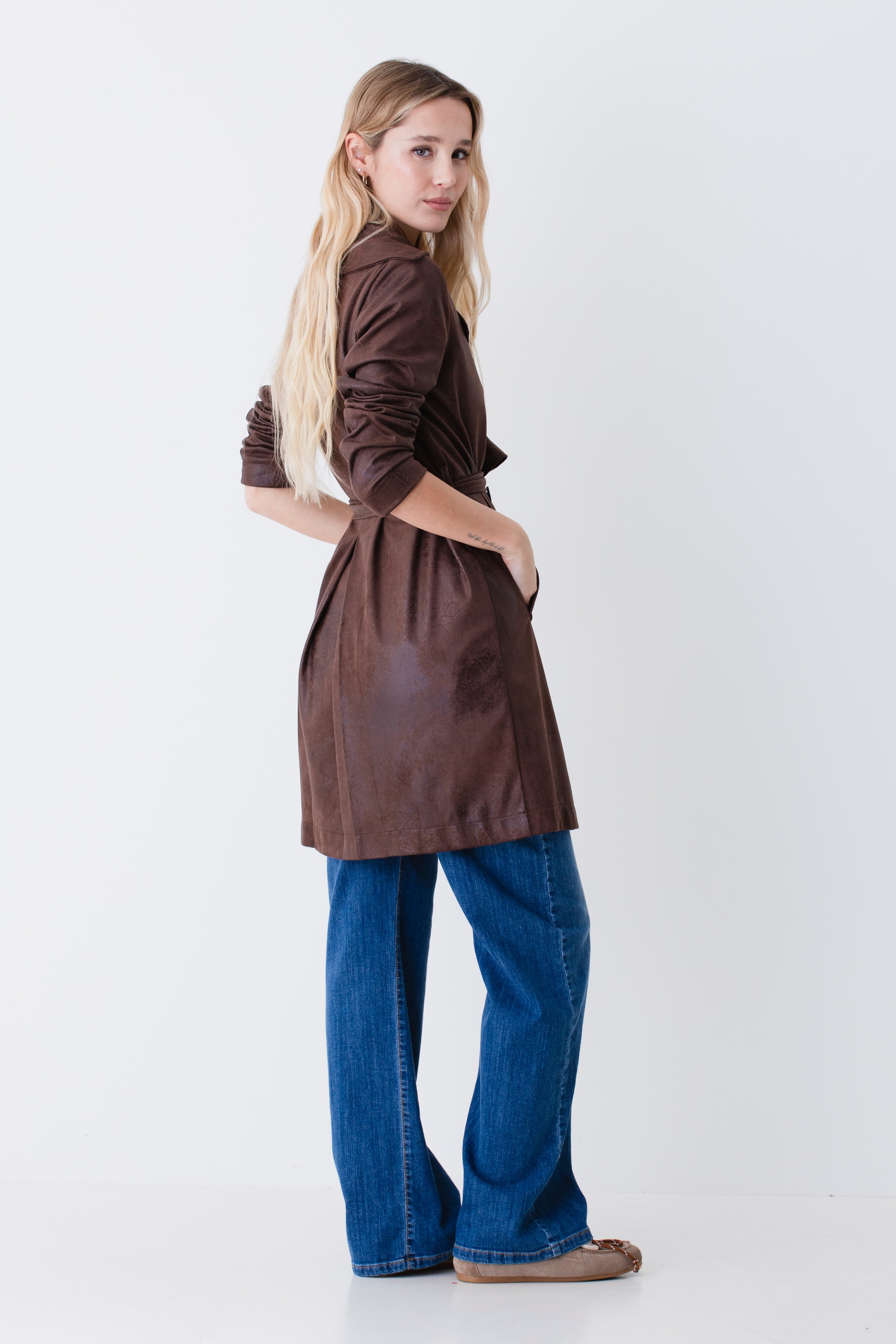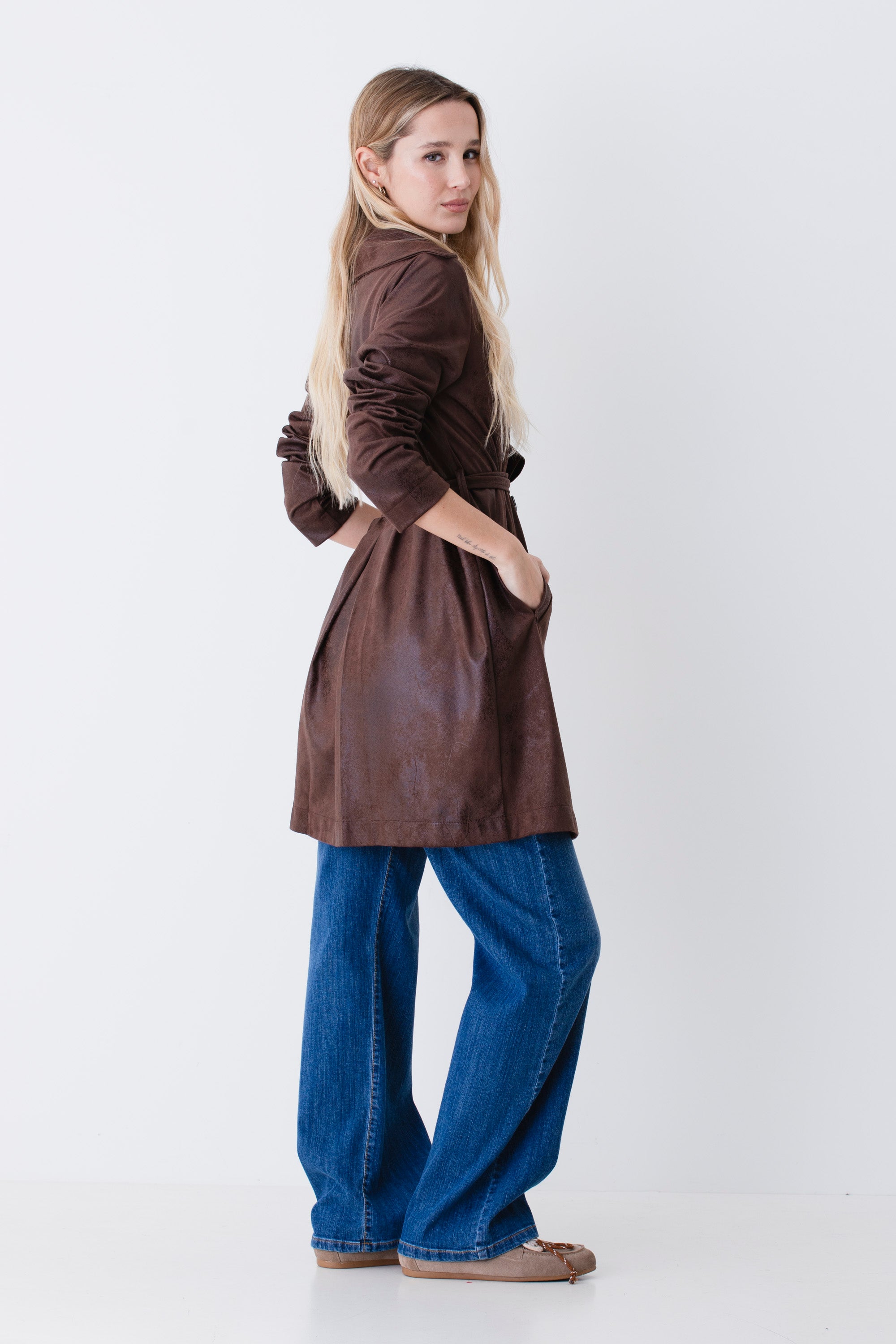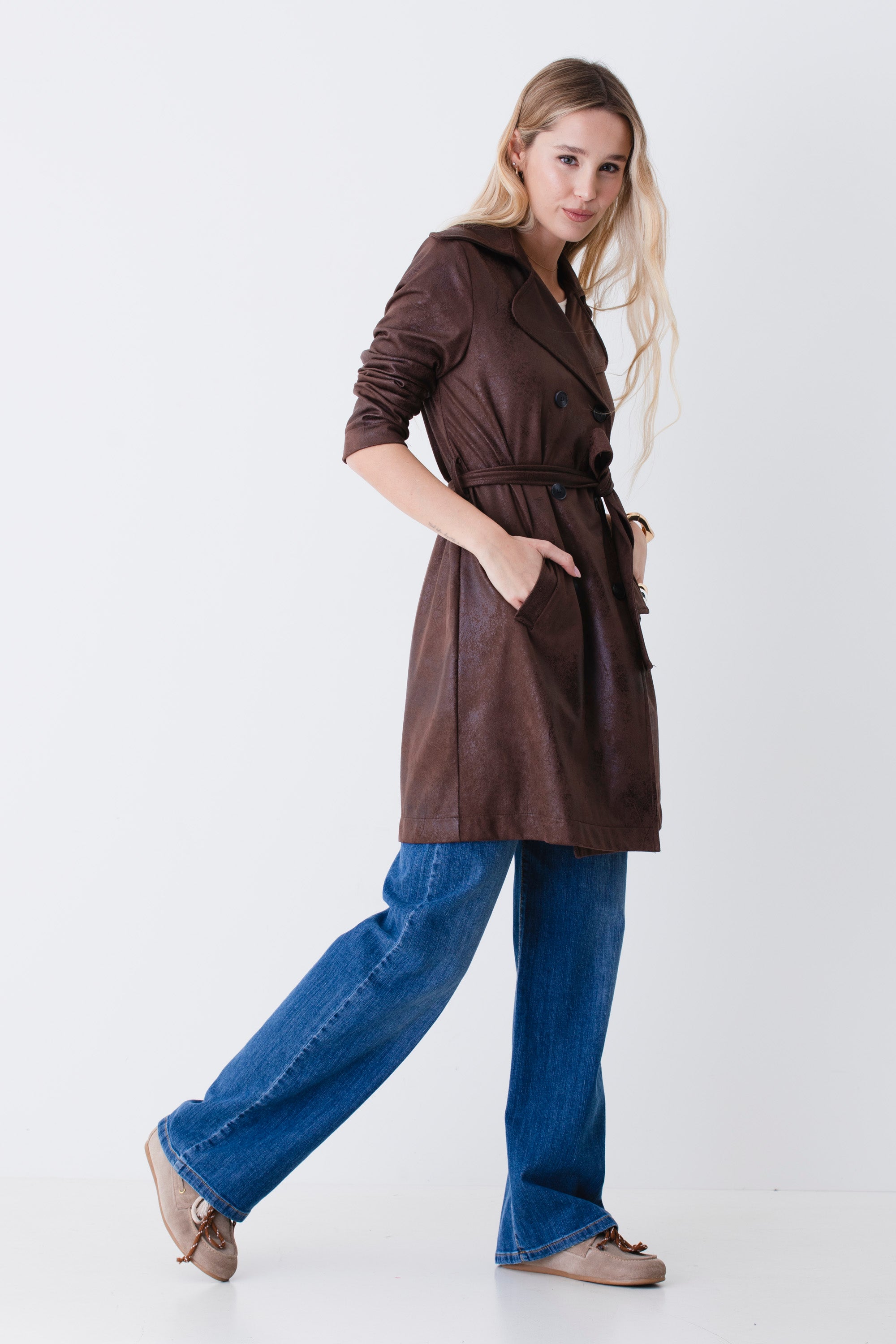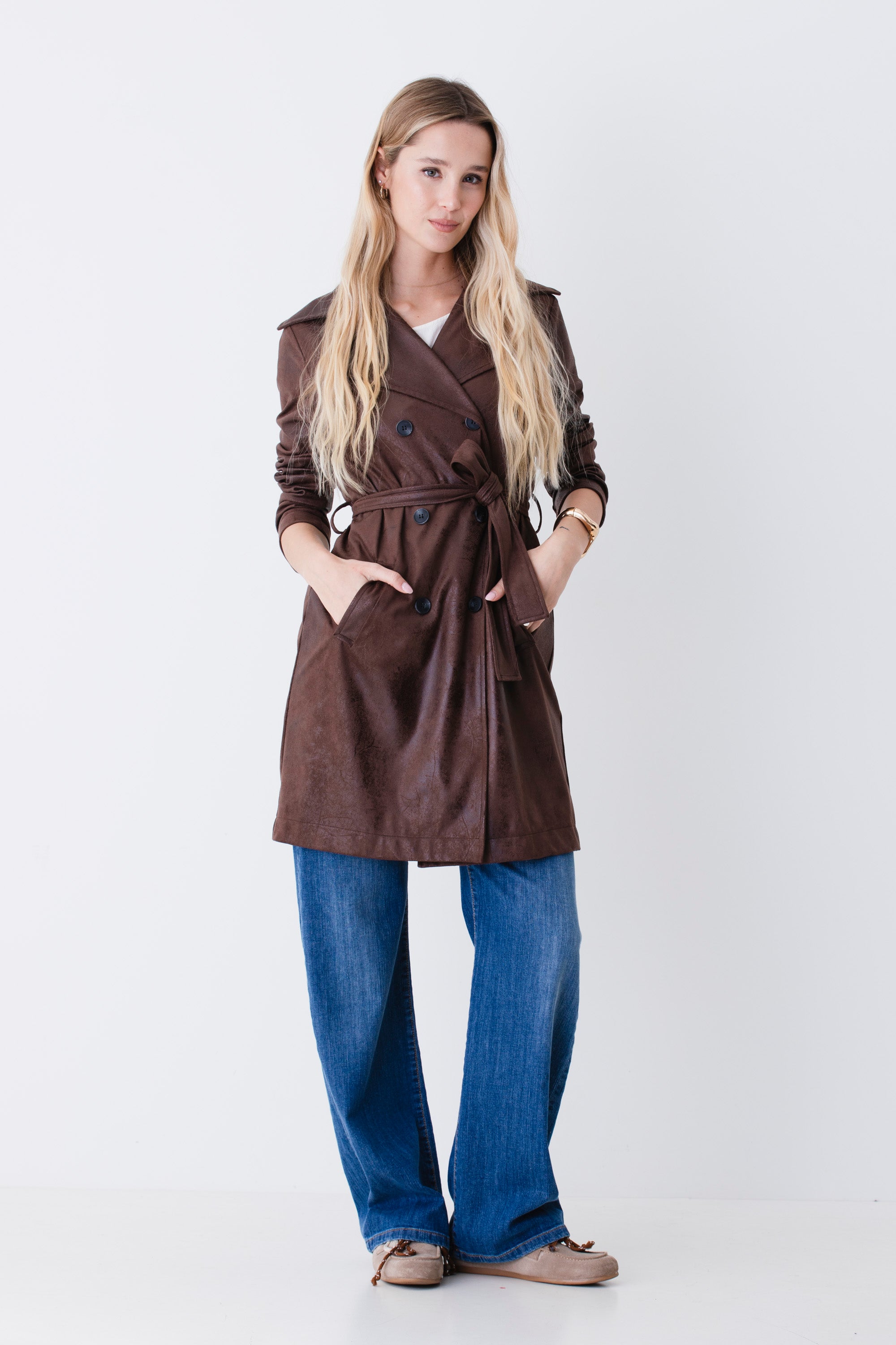 Trench doppio petto in effetto pelle - PE26