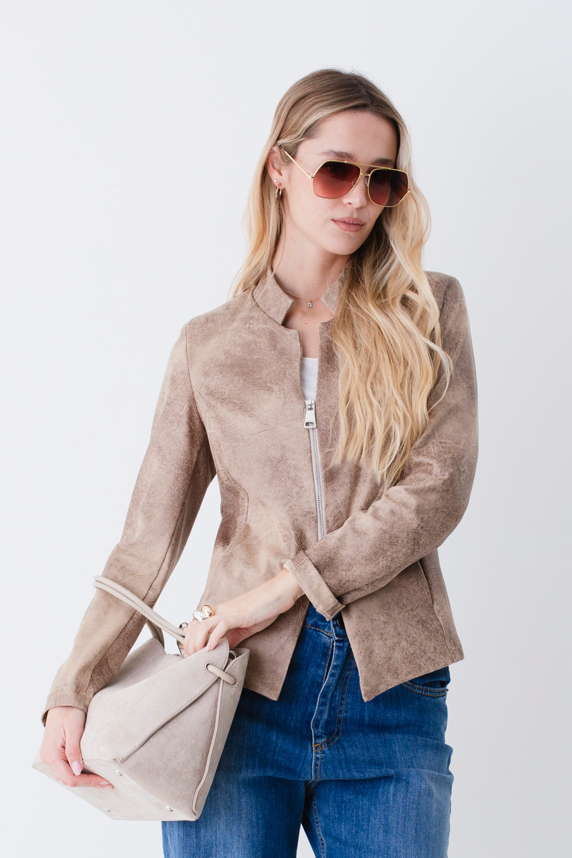 Giacca con cerniera in effetto pelle - PE26