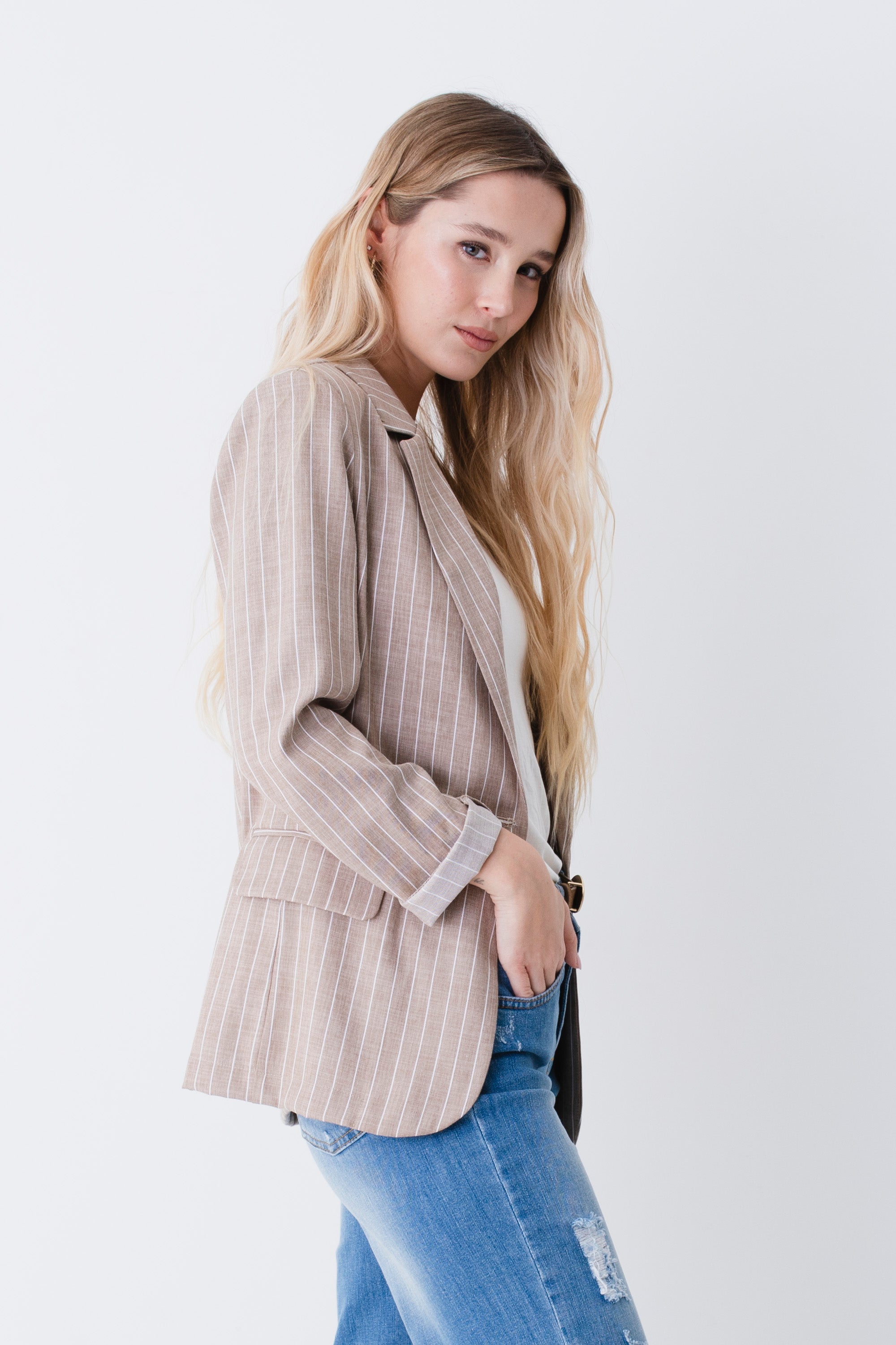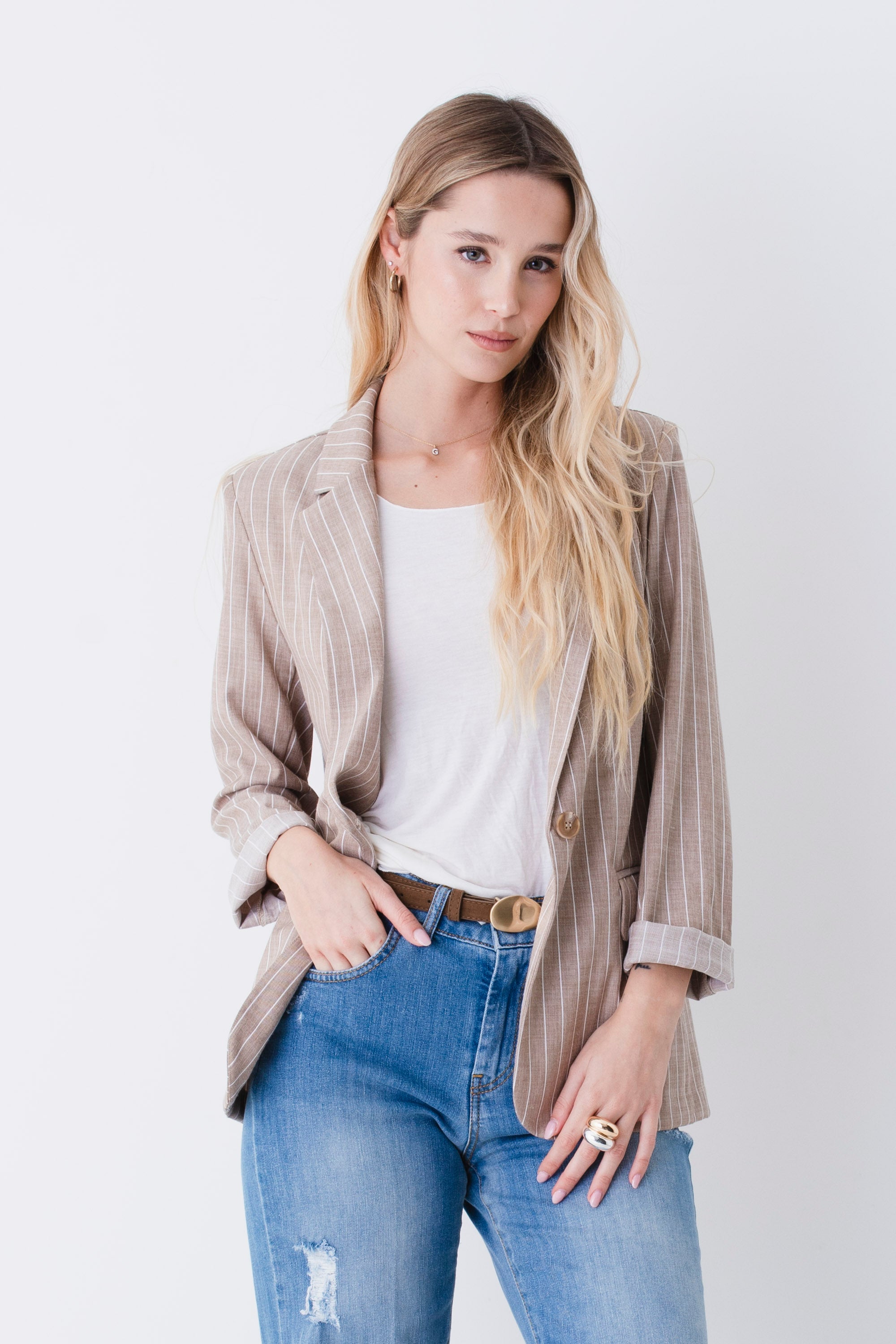 Blazer ad un petto in tessuto gessato - PE26
