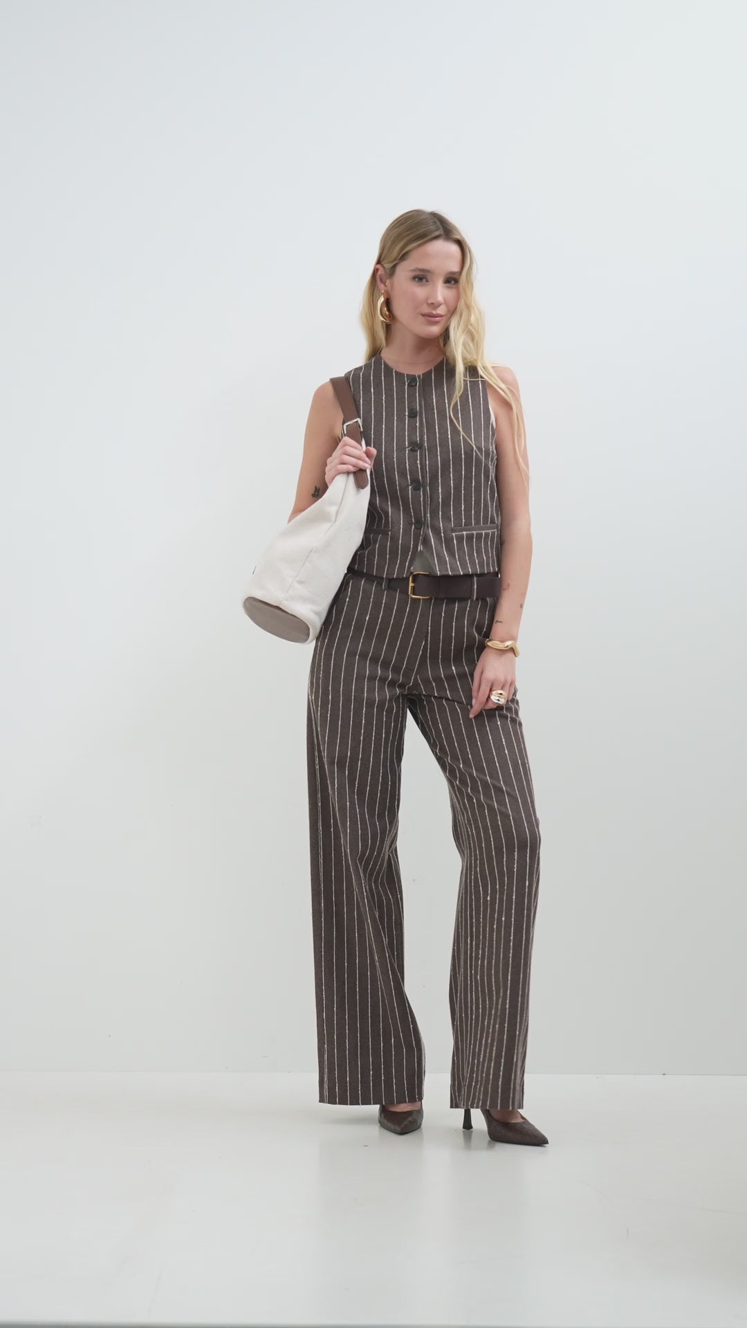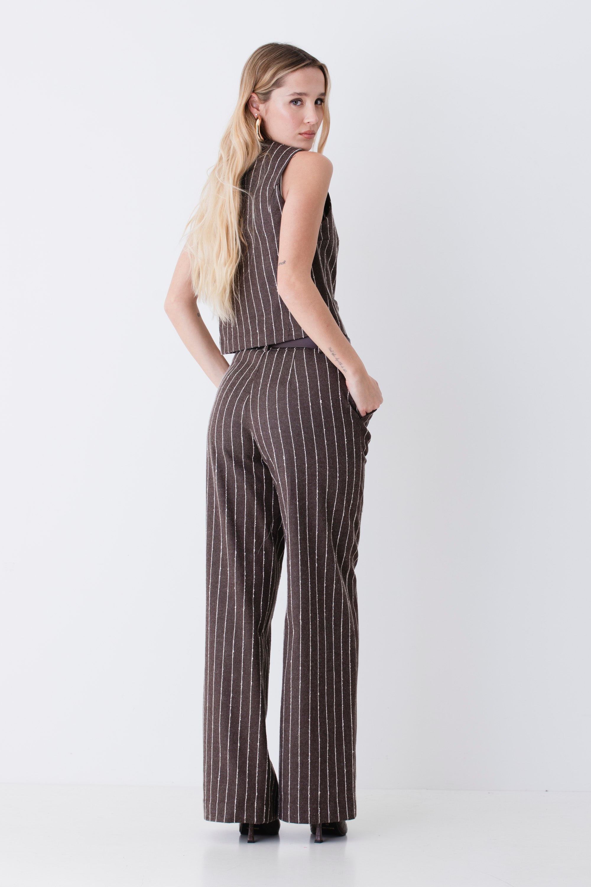 Gilet ad un petto in tessuto gessato di cotone - PE26