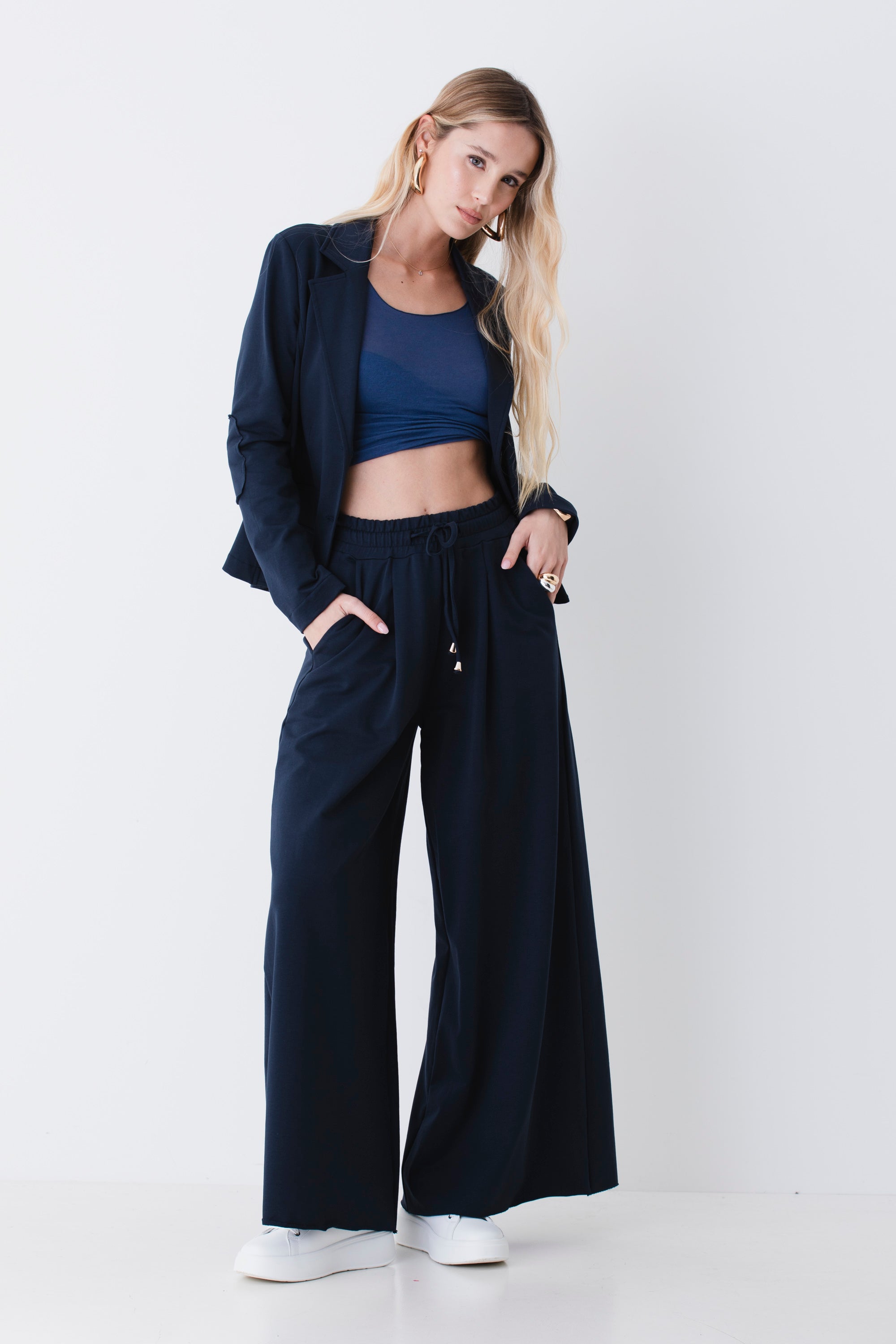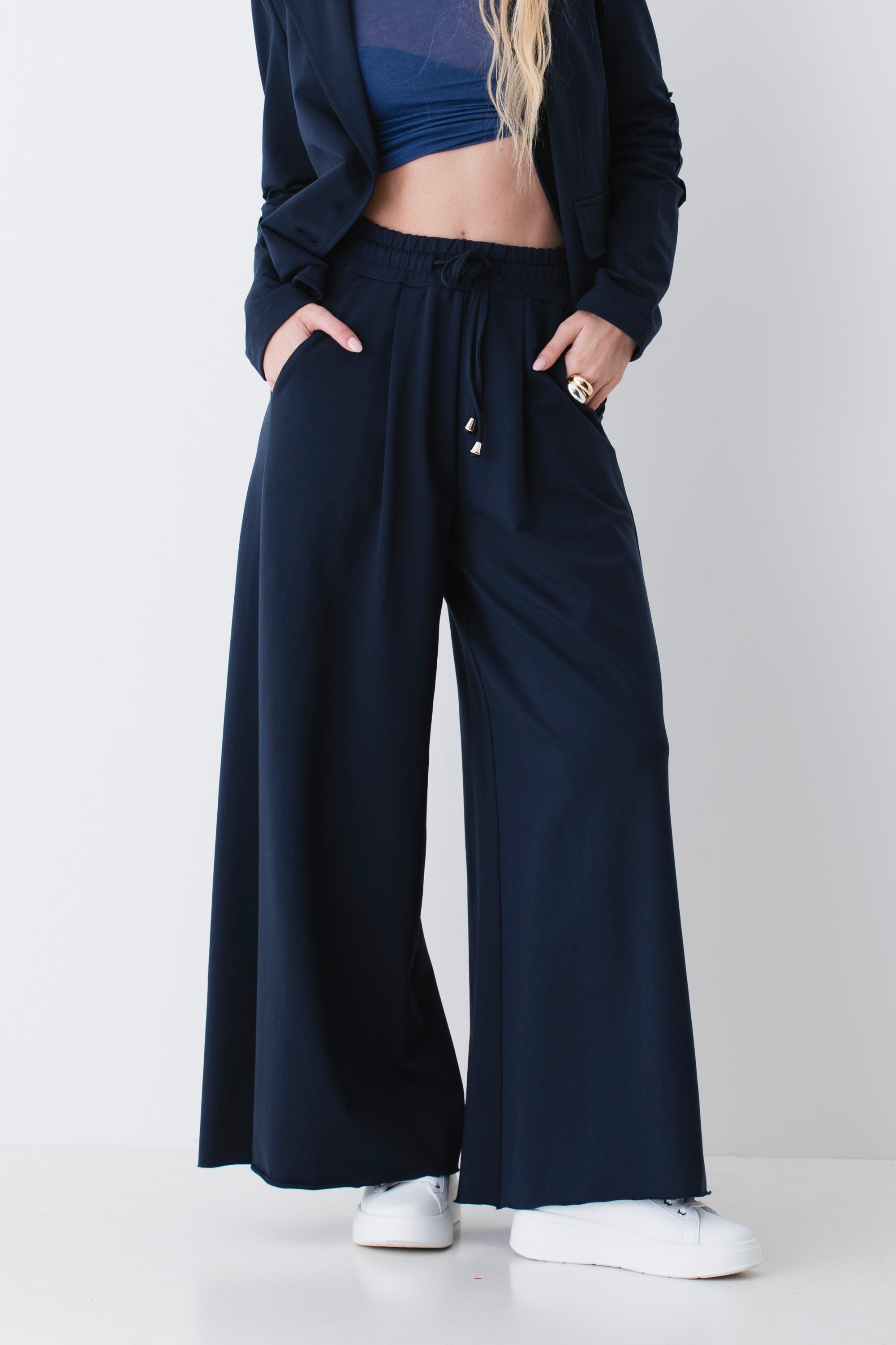 Pantalone palazzo con coulisse in felpa di cotone - PE26