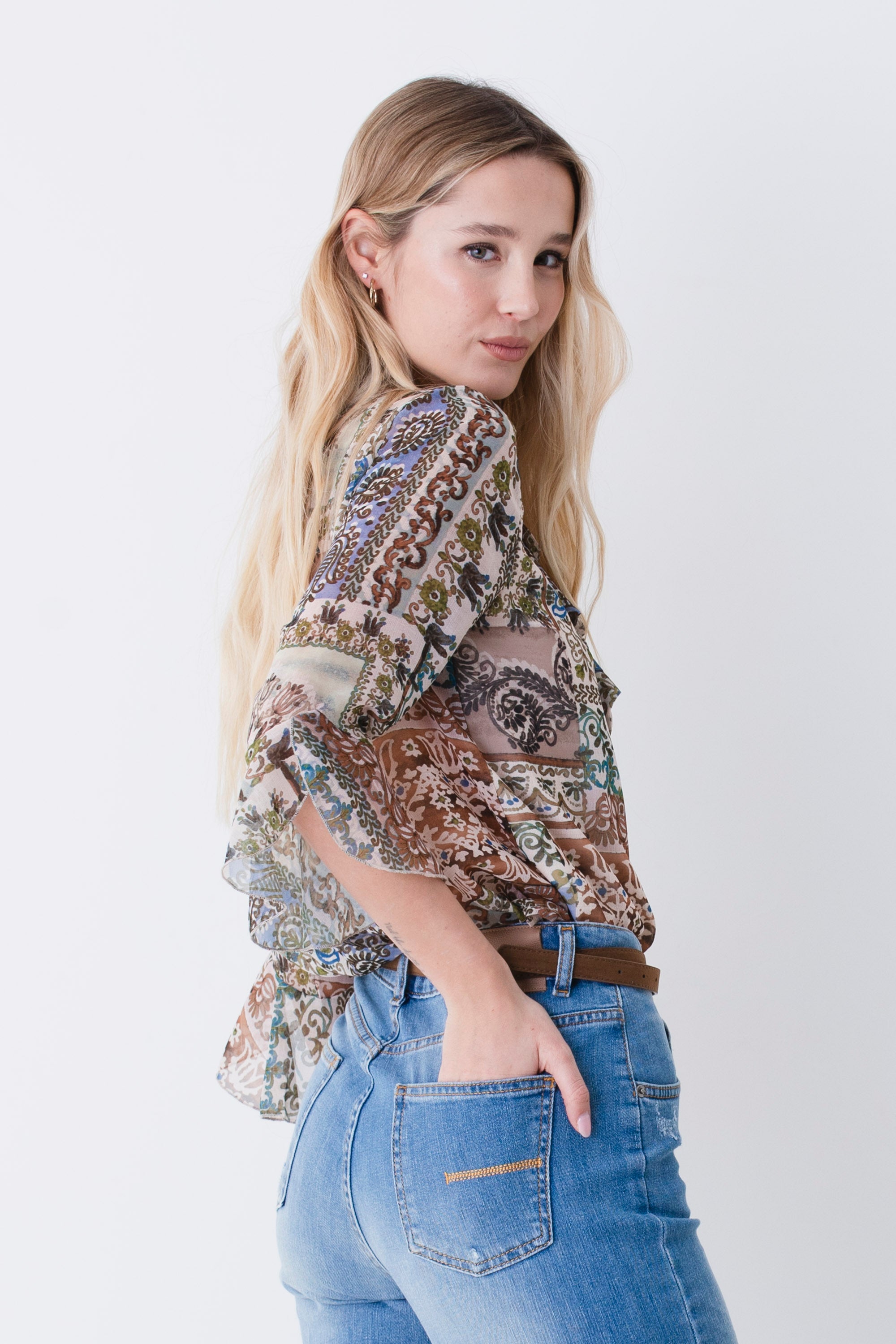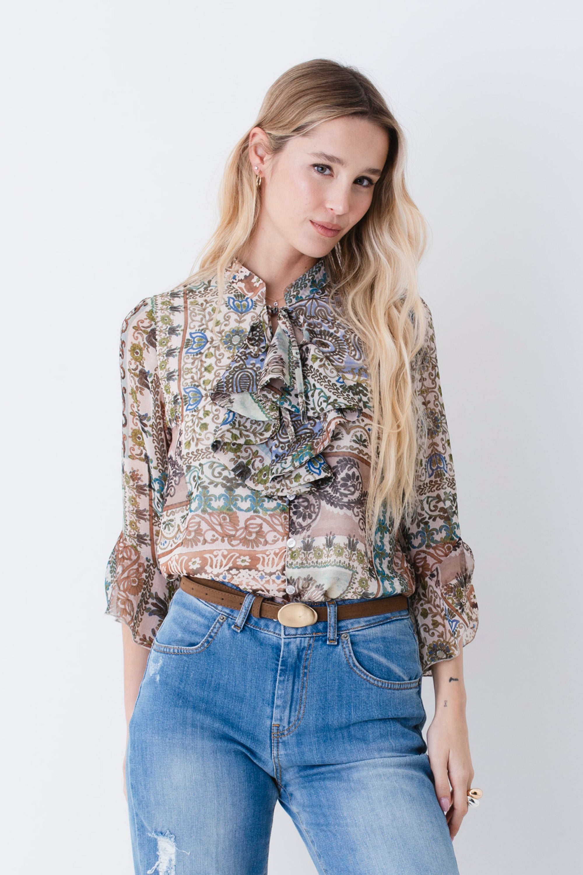 Blusa in georgette fantasia patchwork - PE26