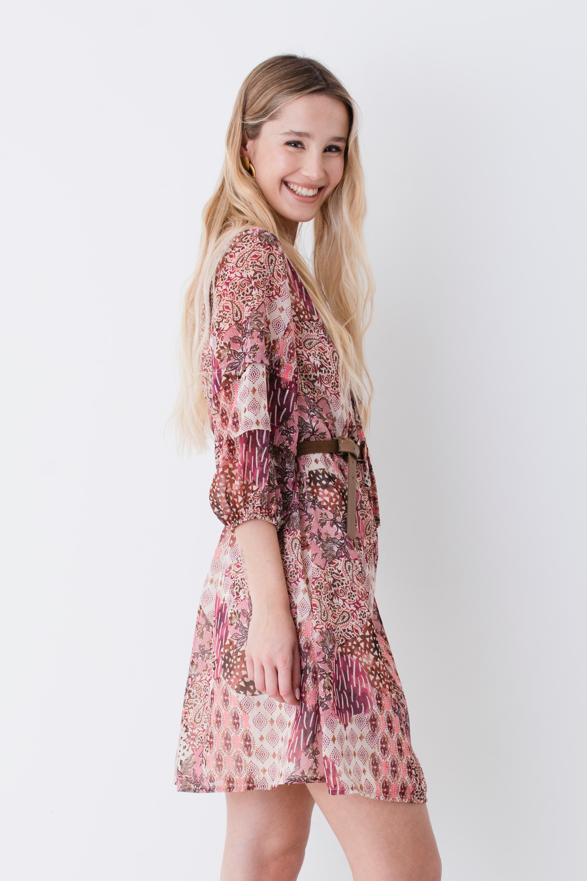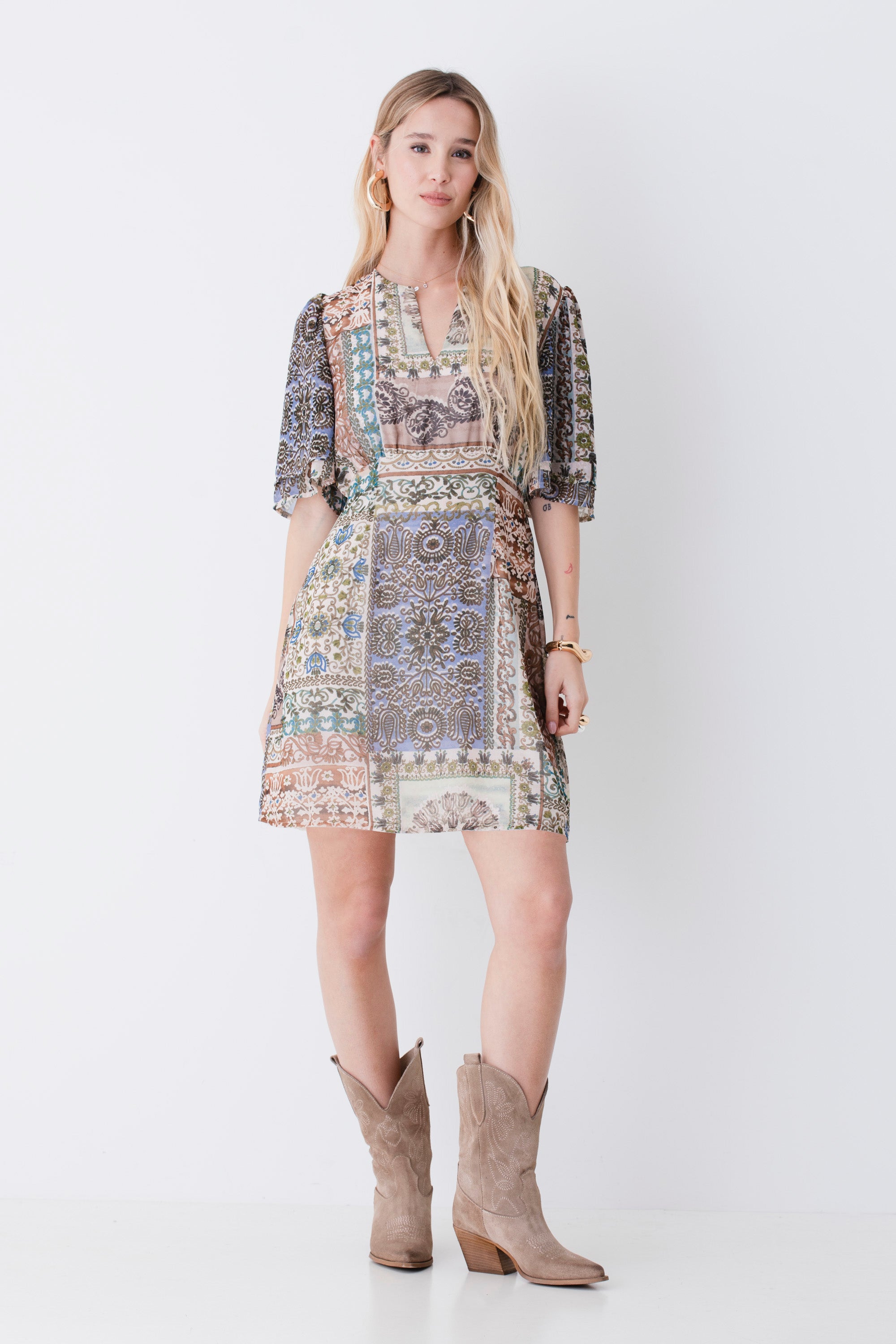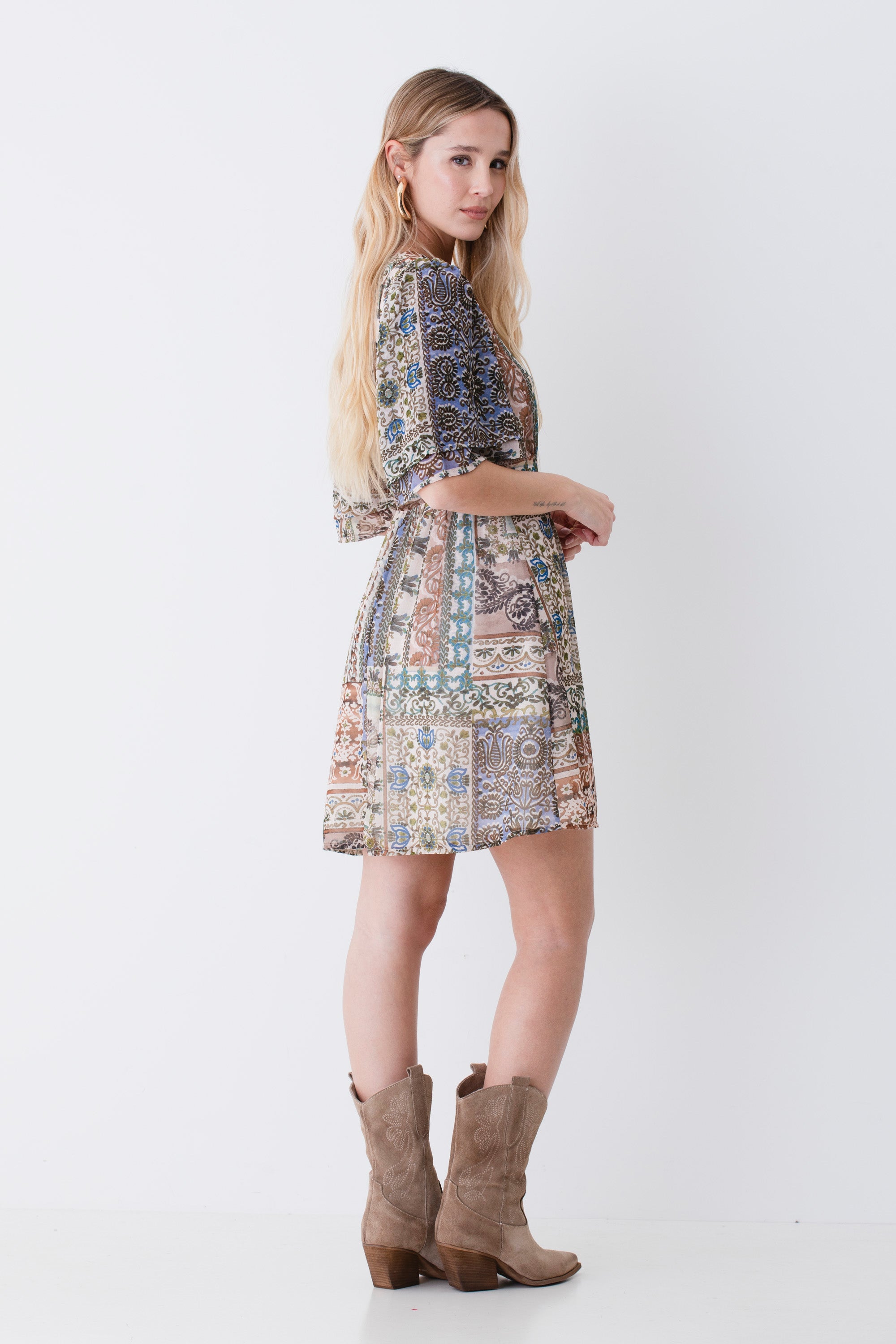 Abito corto in georgette fantasia etnica - PE26