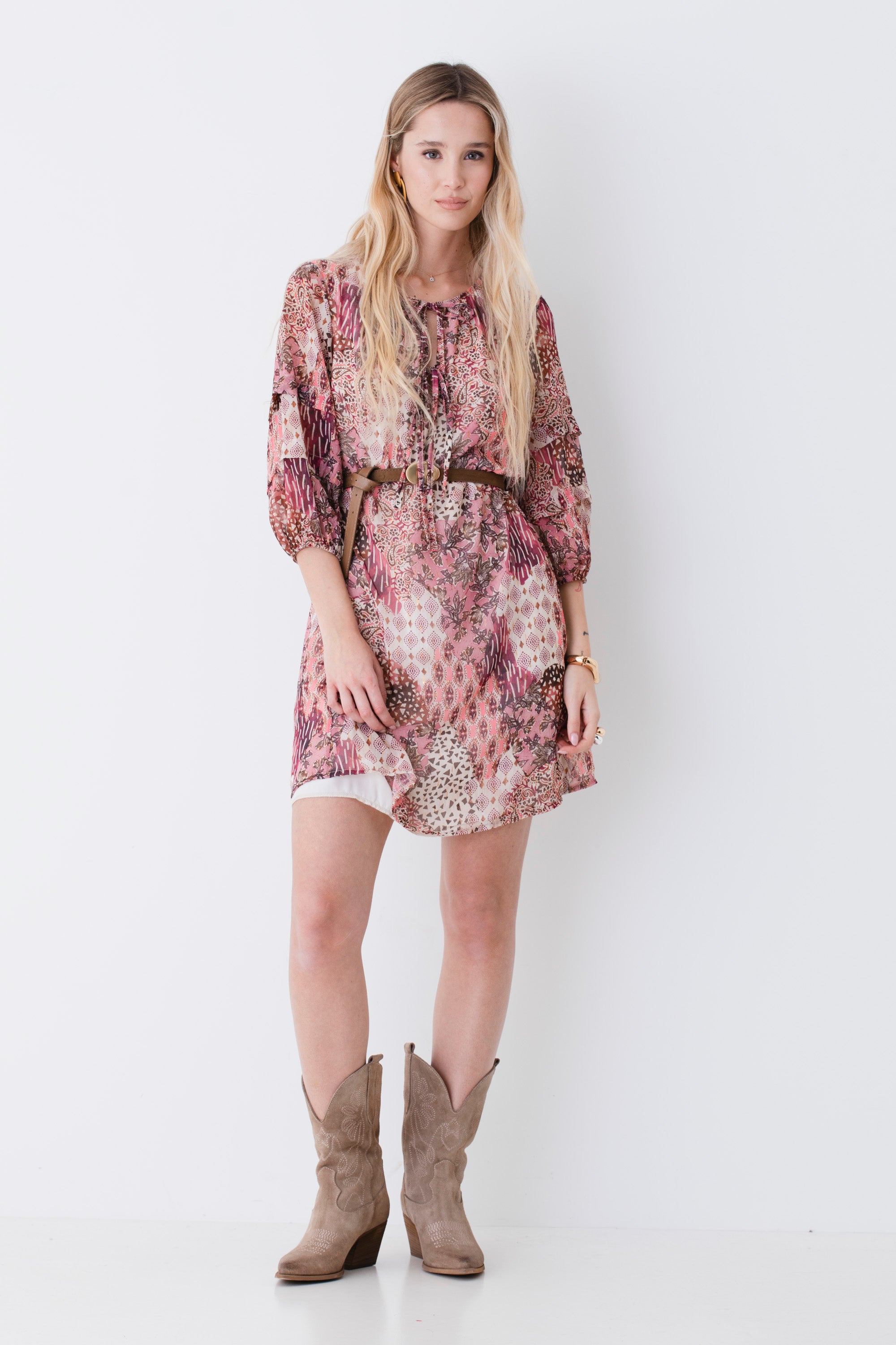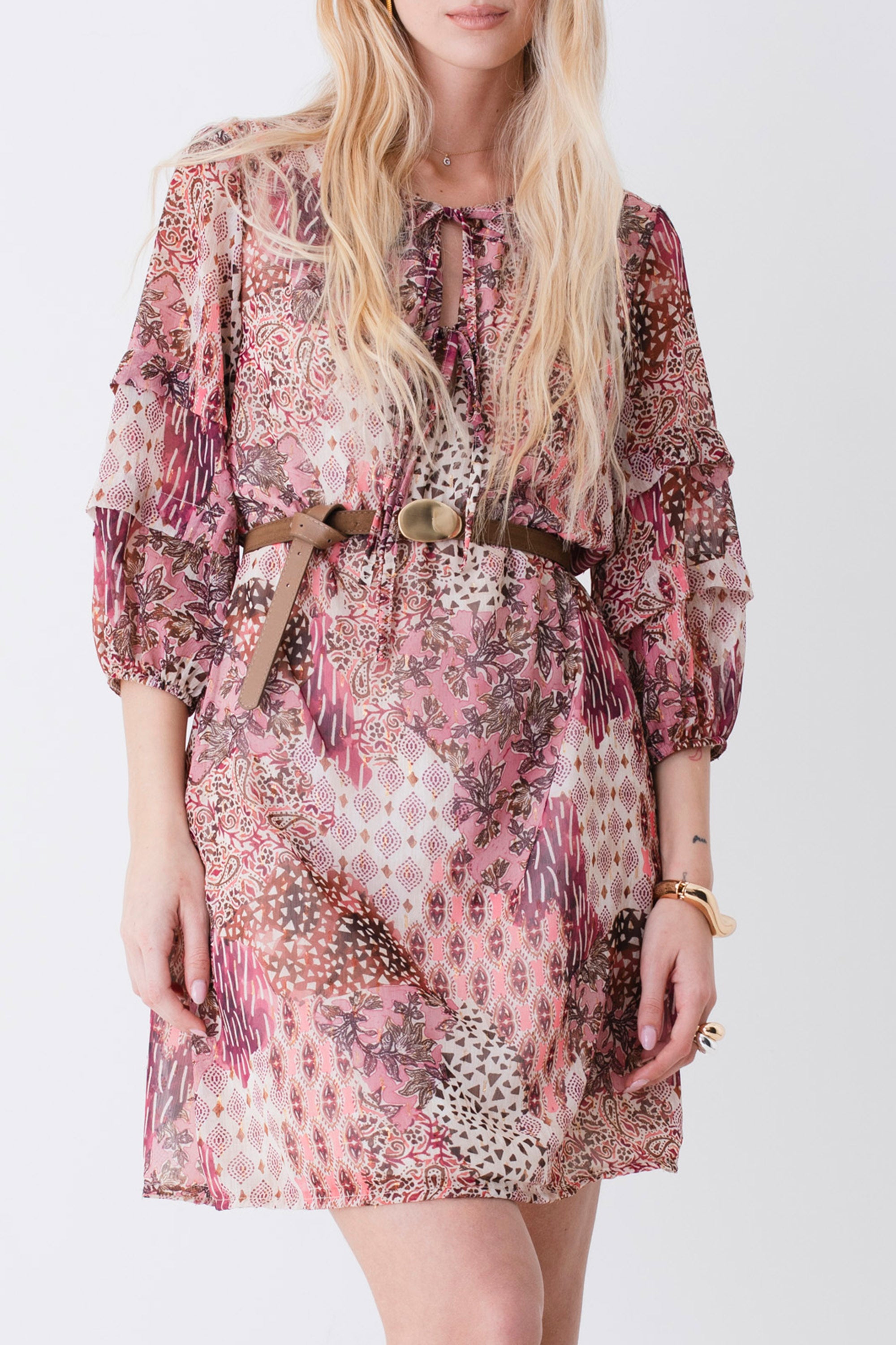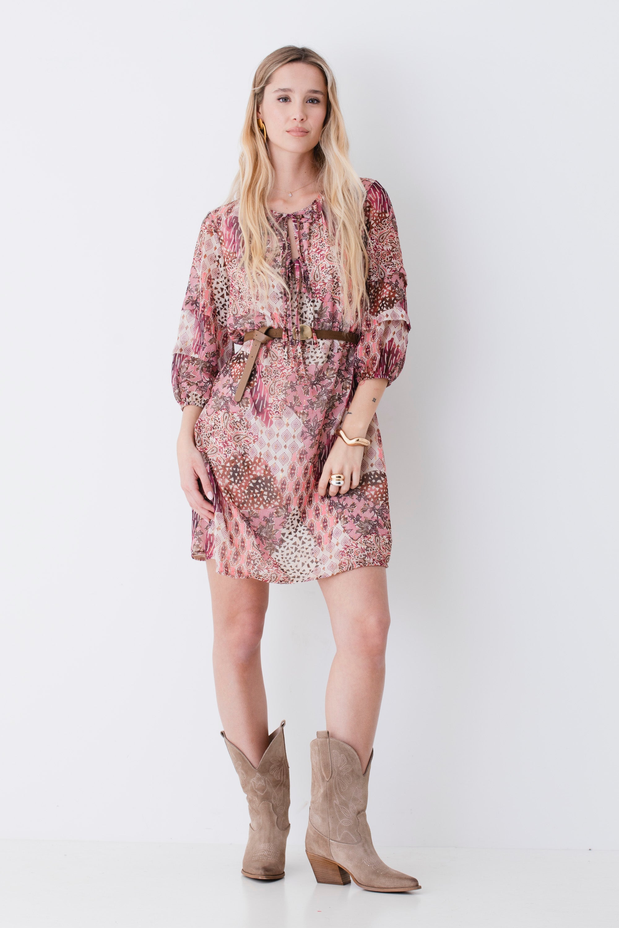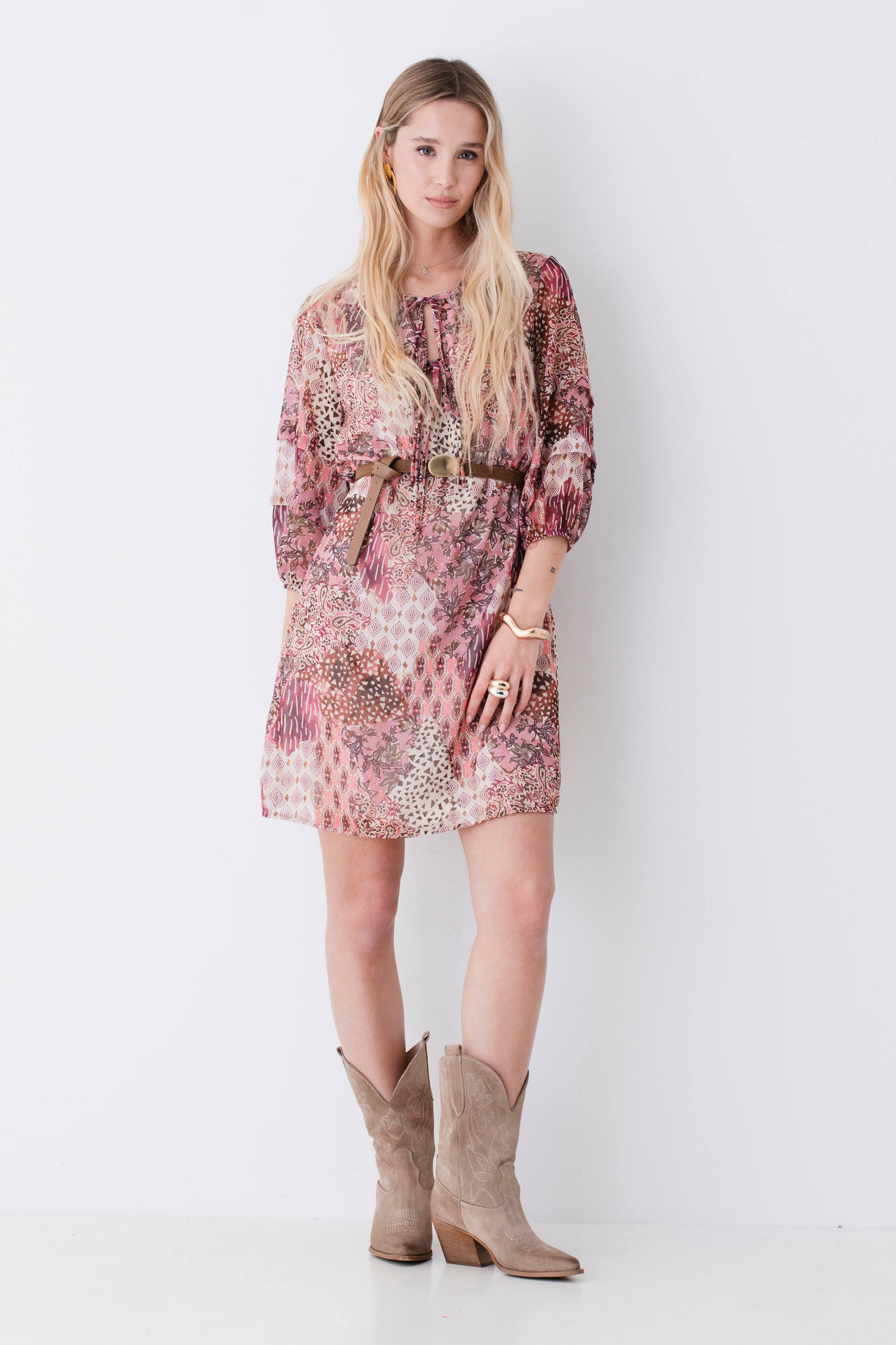 Abito corto in georgette fantasia etnica - PE26