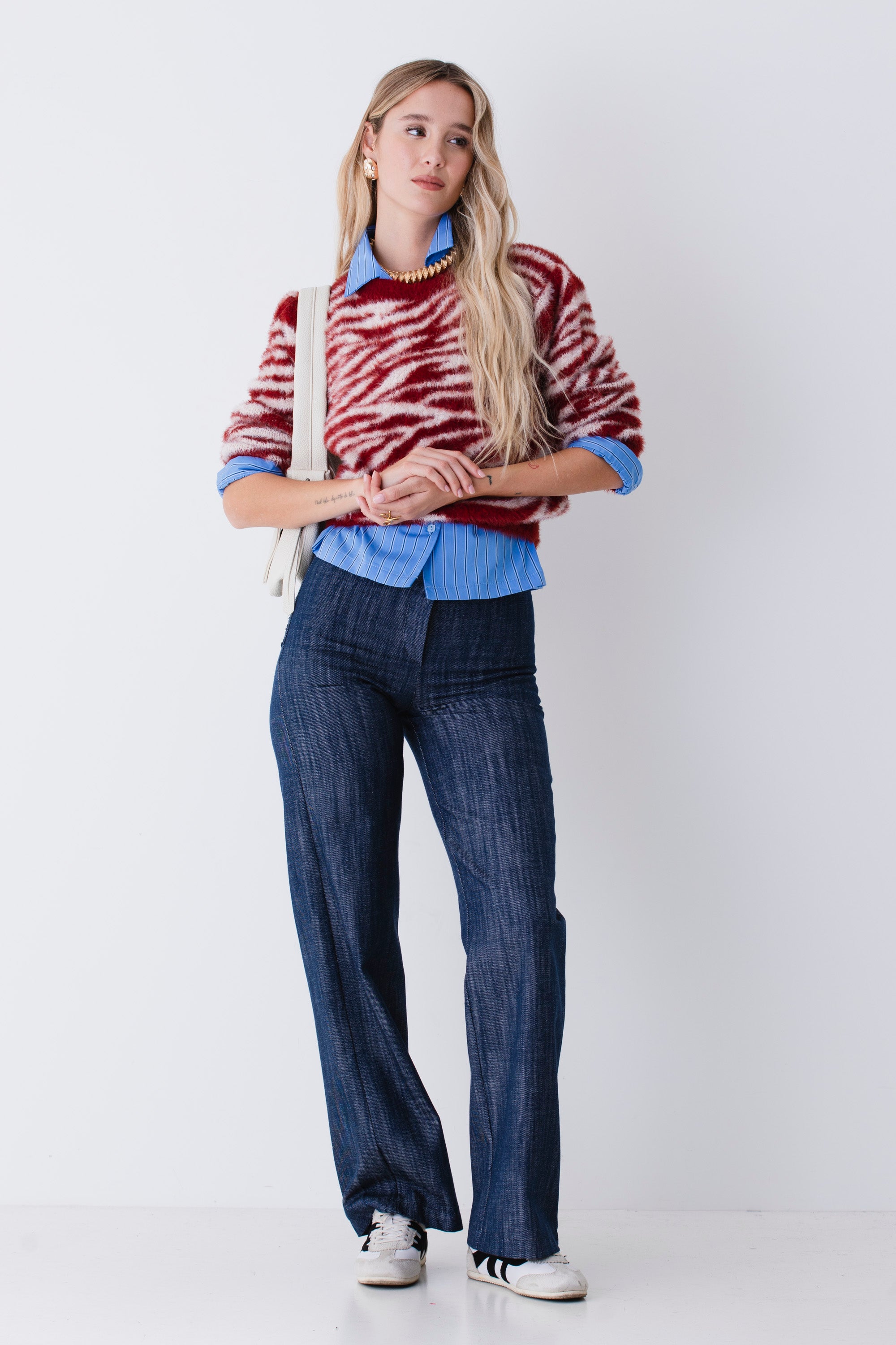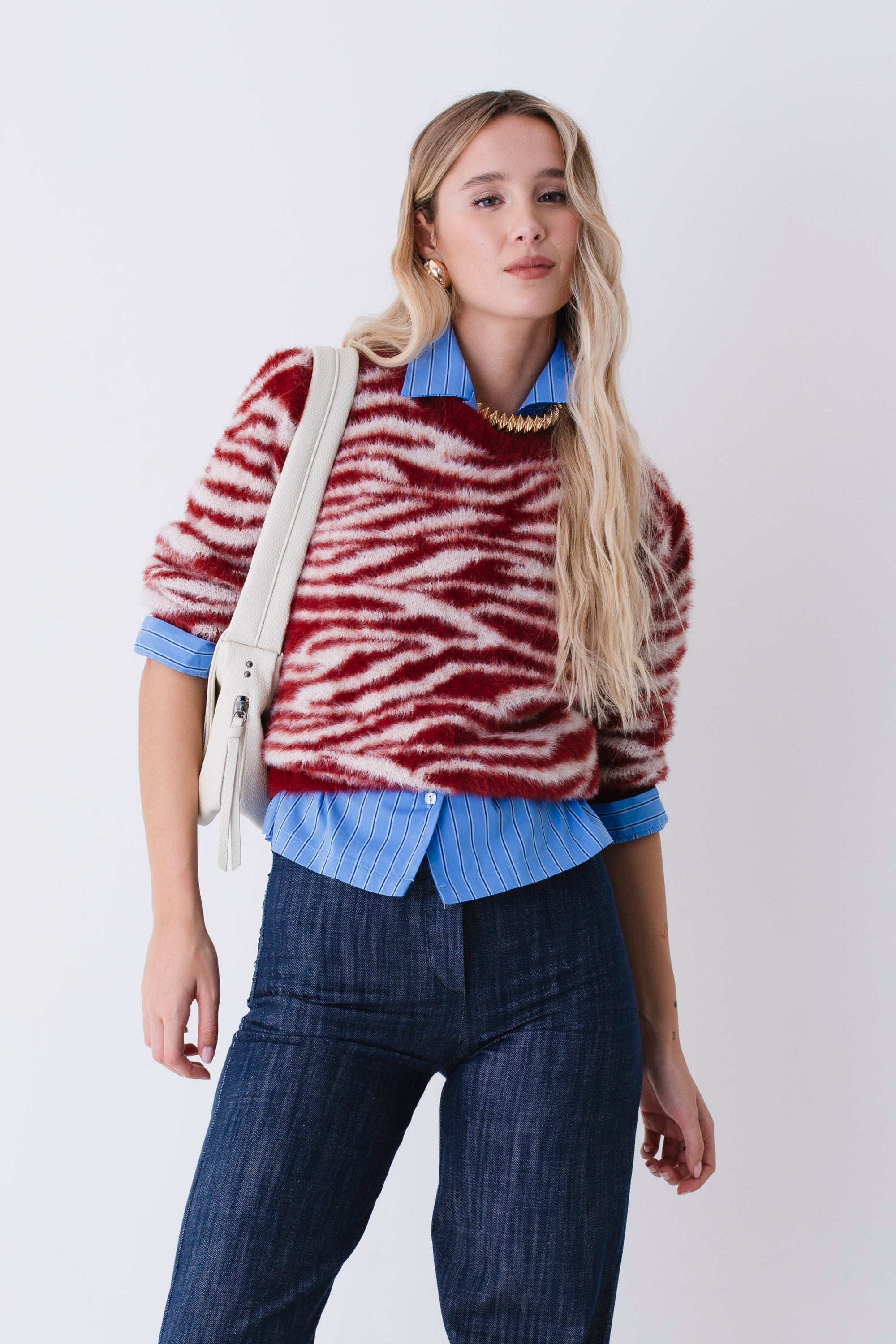 Pullover fantasia zebrata effetto pelliccia - FW26