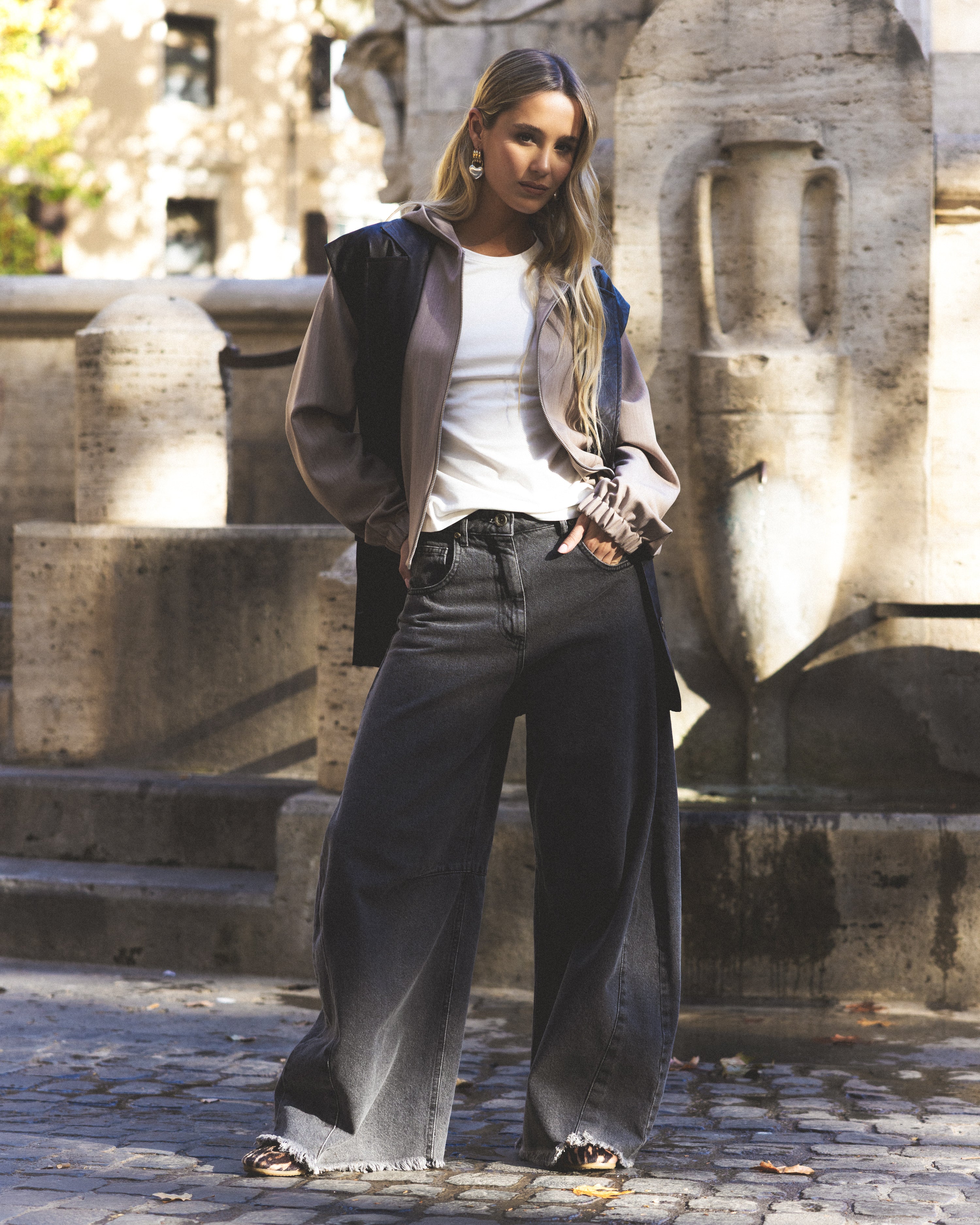 Piumino corto in nylon con inserti in tessuto imbottito lucido - FW26