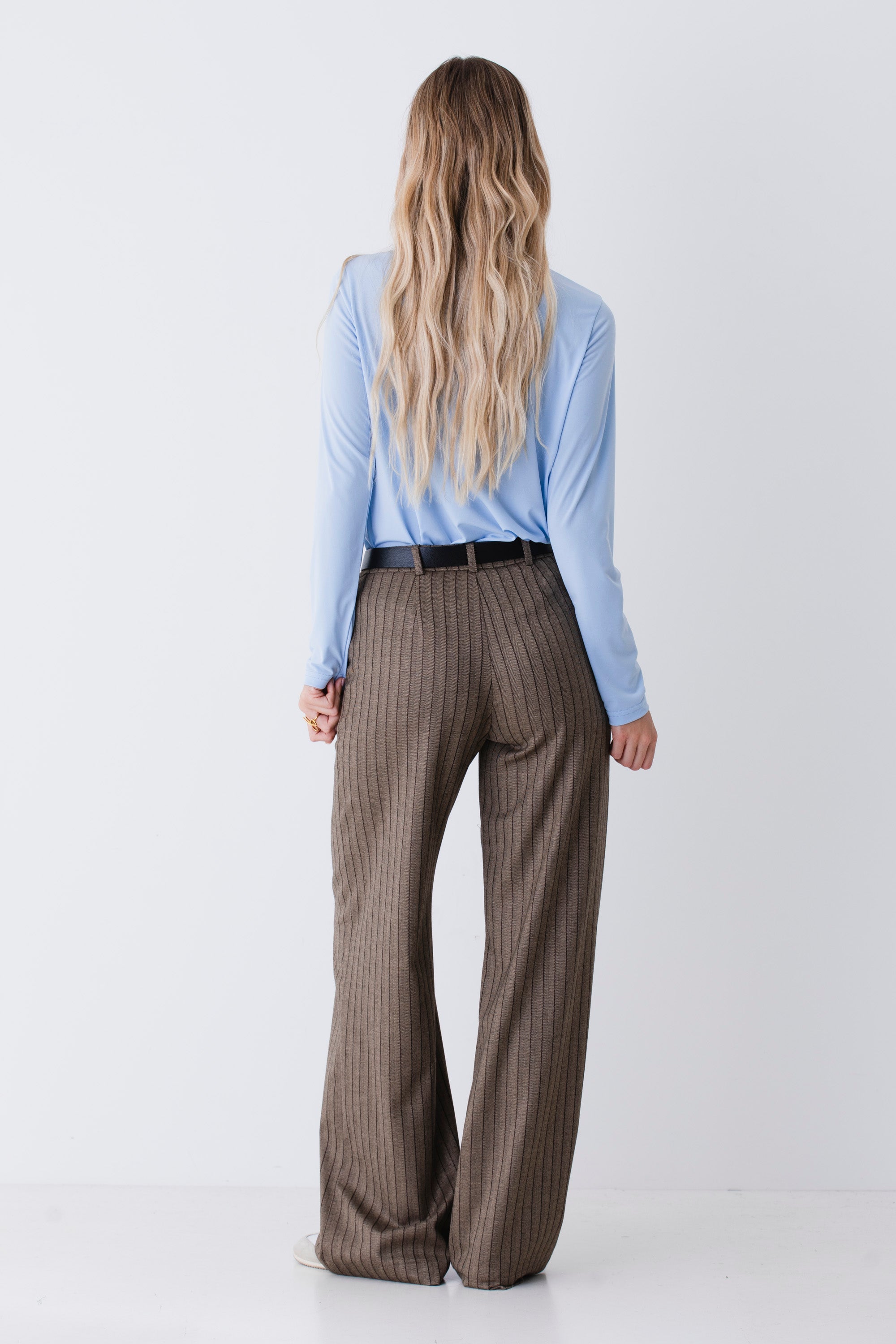 Pantalone palazzo in tessuto gessato con cintura - FW26