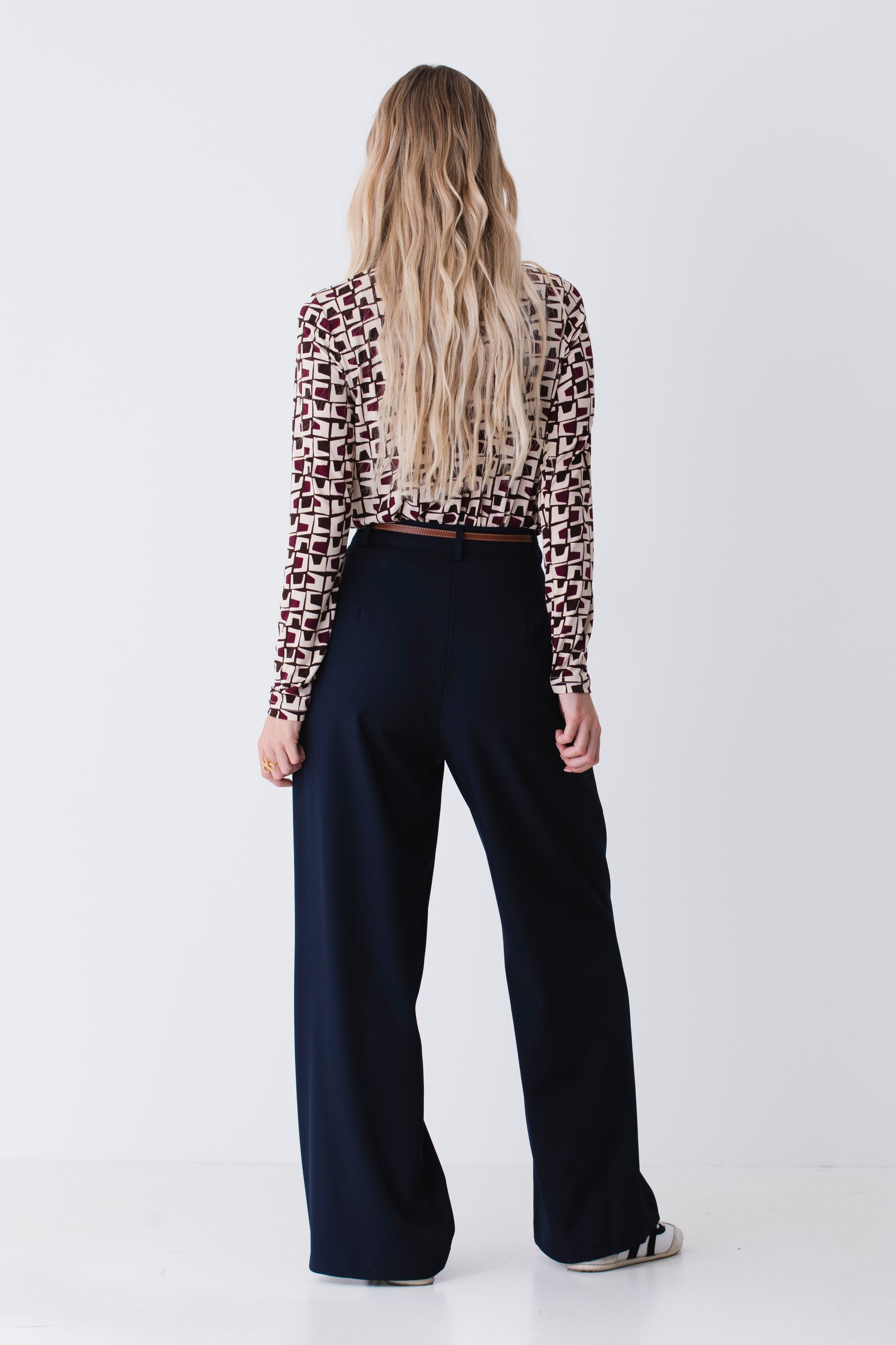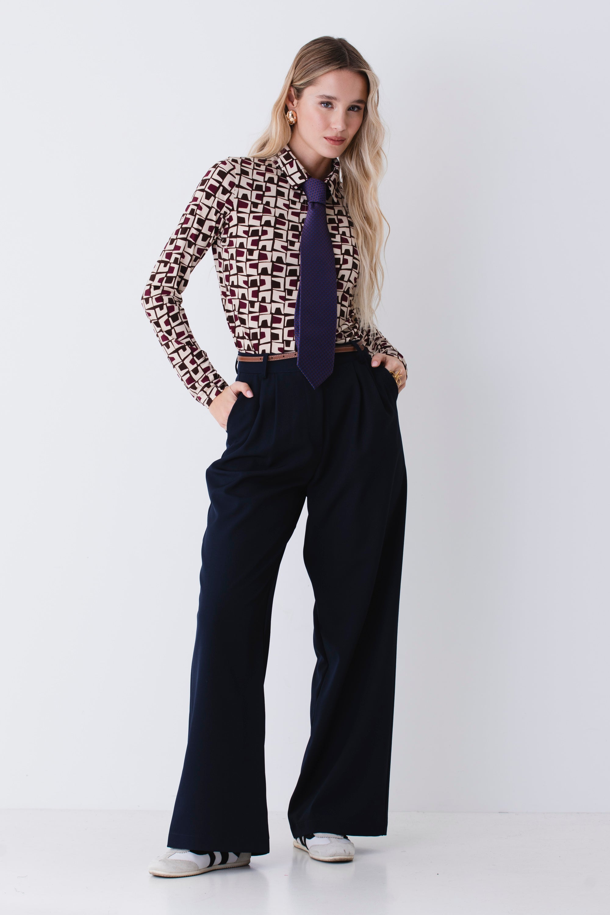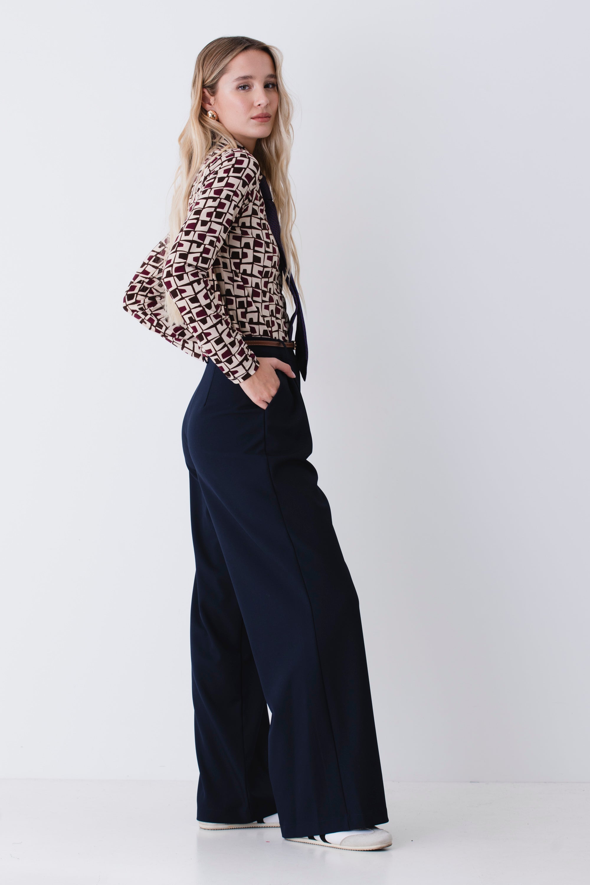 Pantalone palazzo ampio a vita alta gessato - PE25