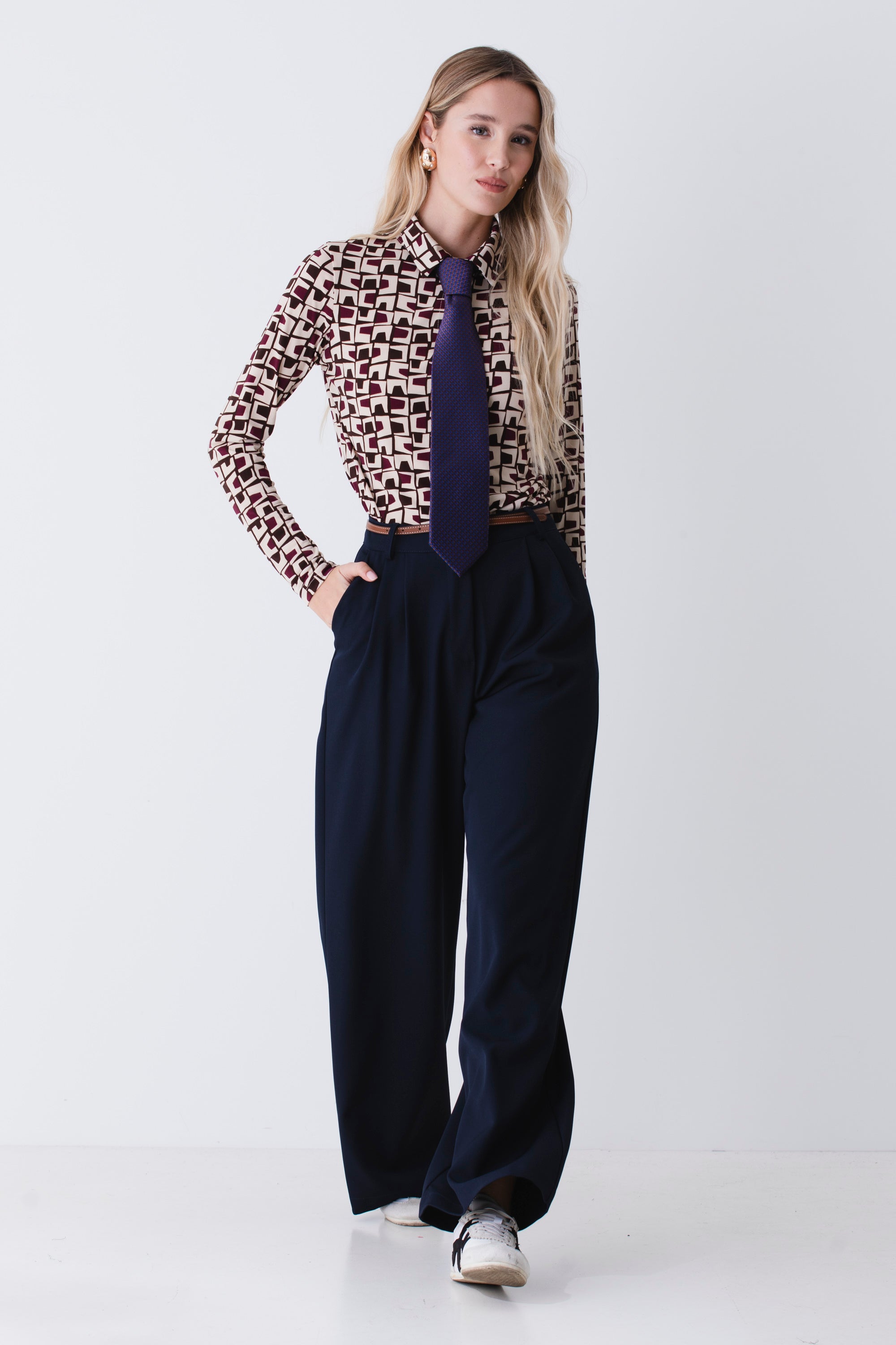 Pantalone palazzo ampio in tessuto elasticizzato - FW26