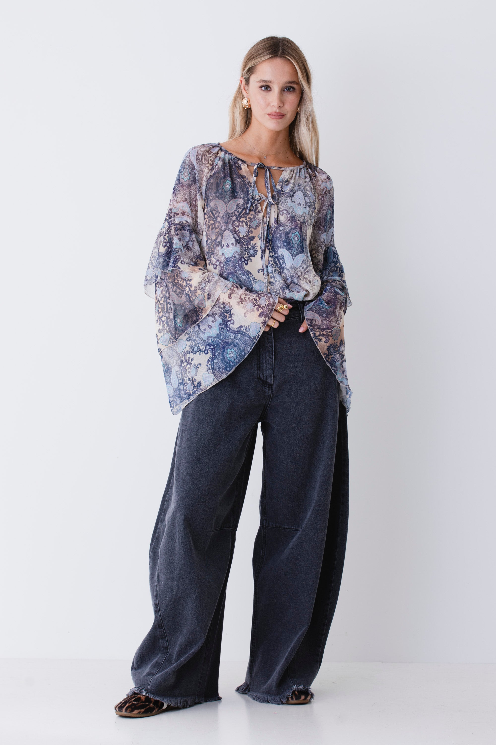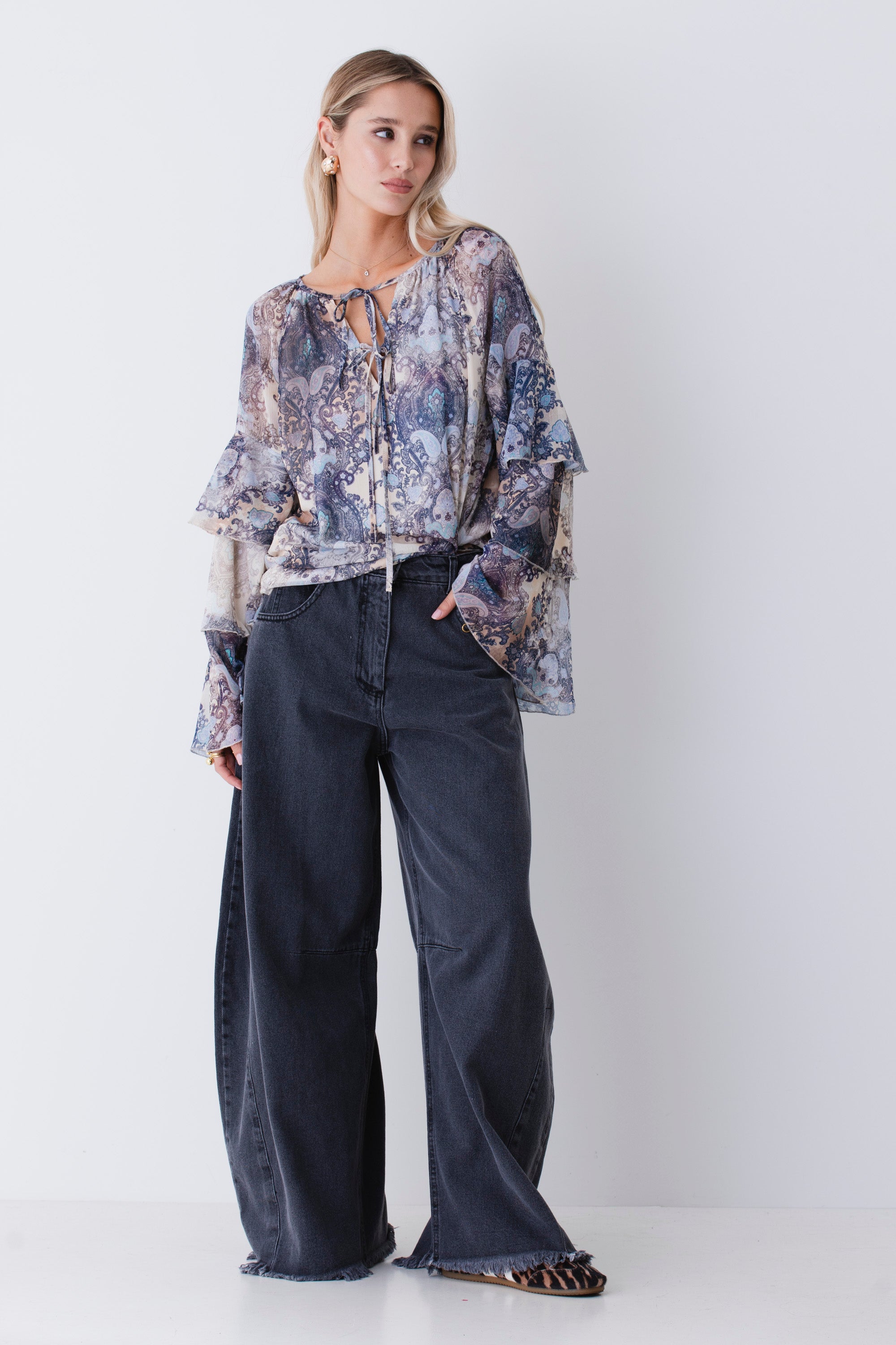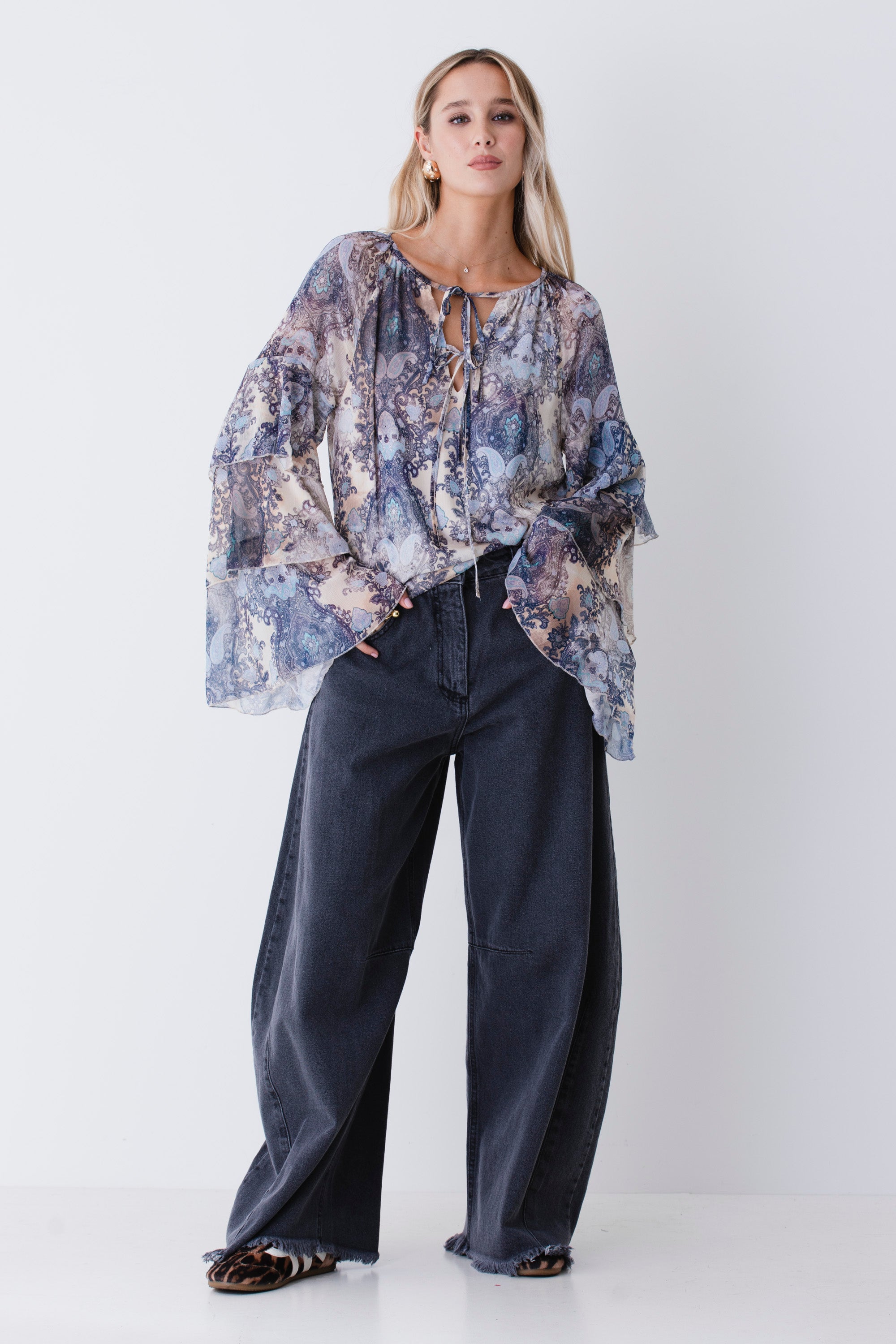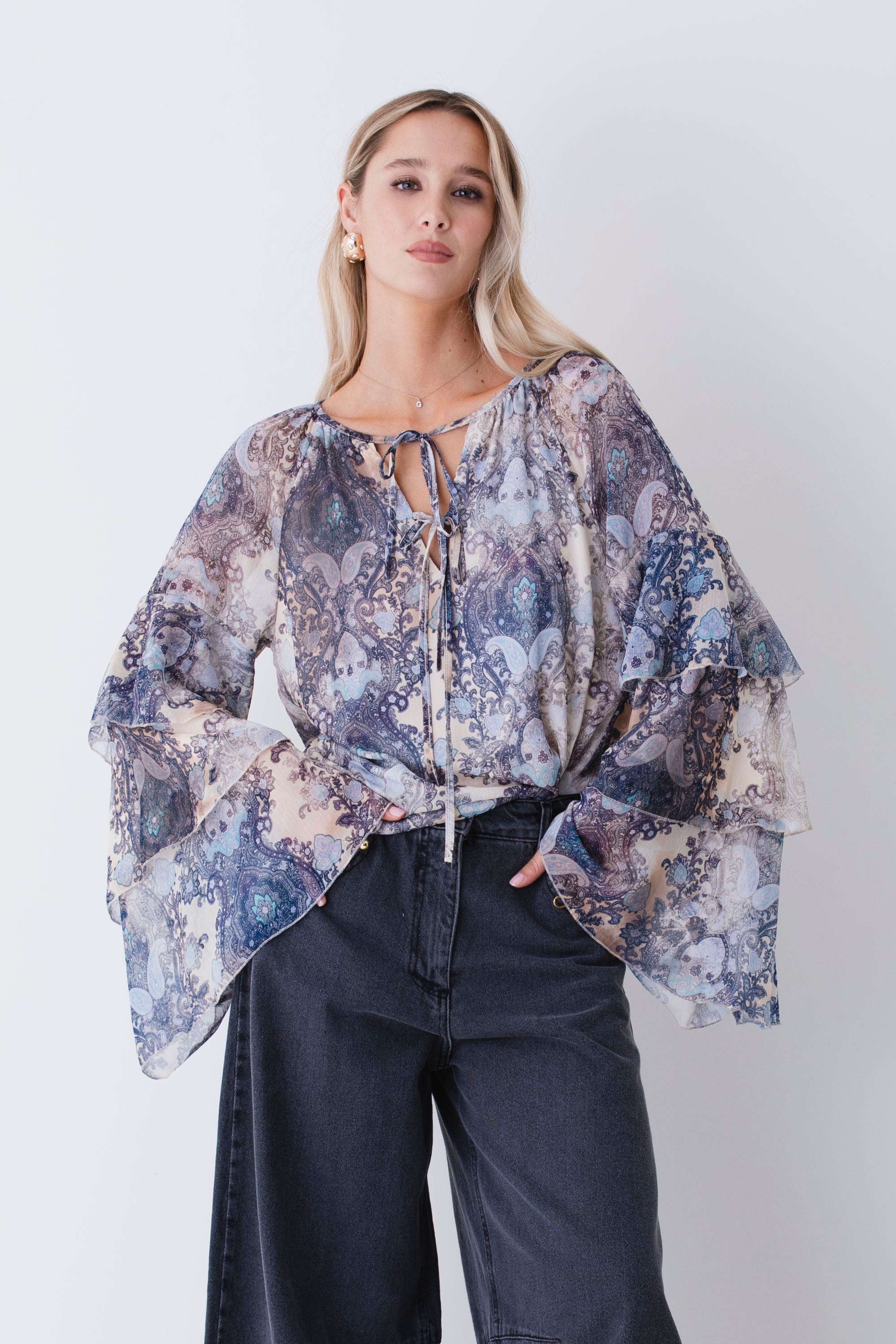 Blusa con balze in georgette fantasia cachemire - FW26