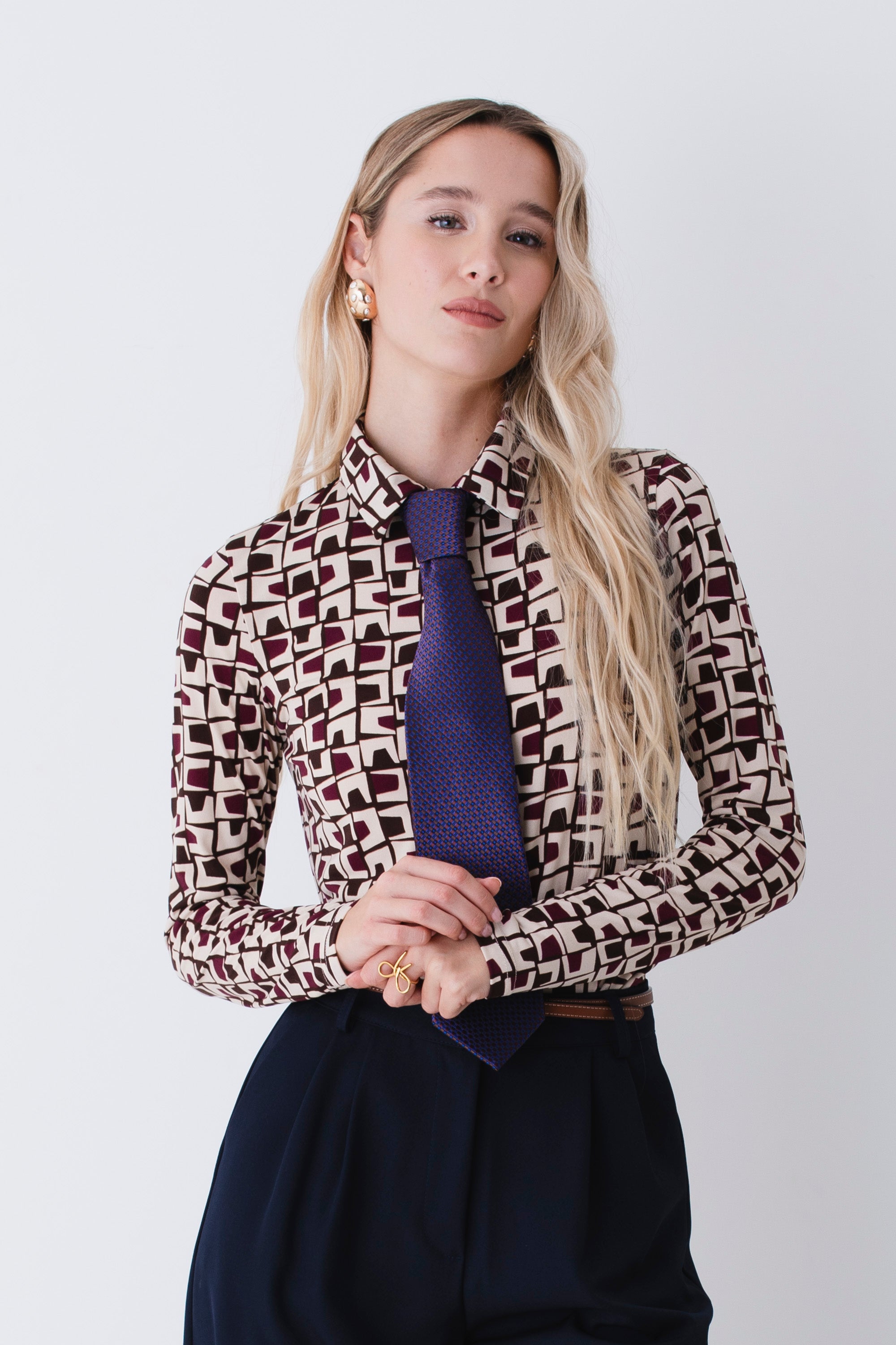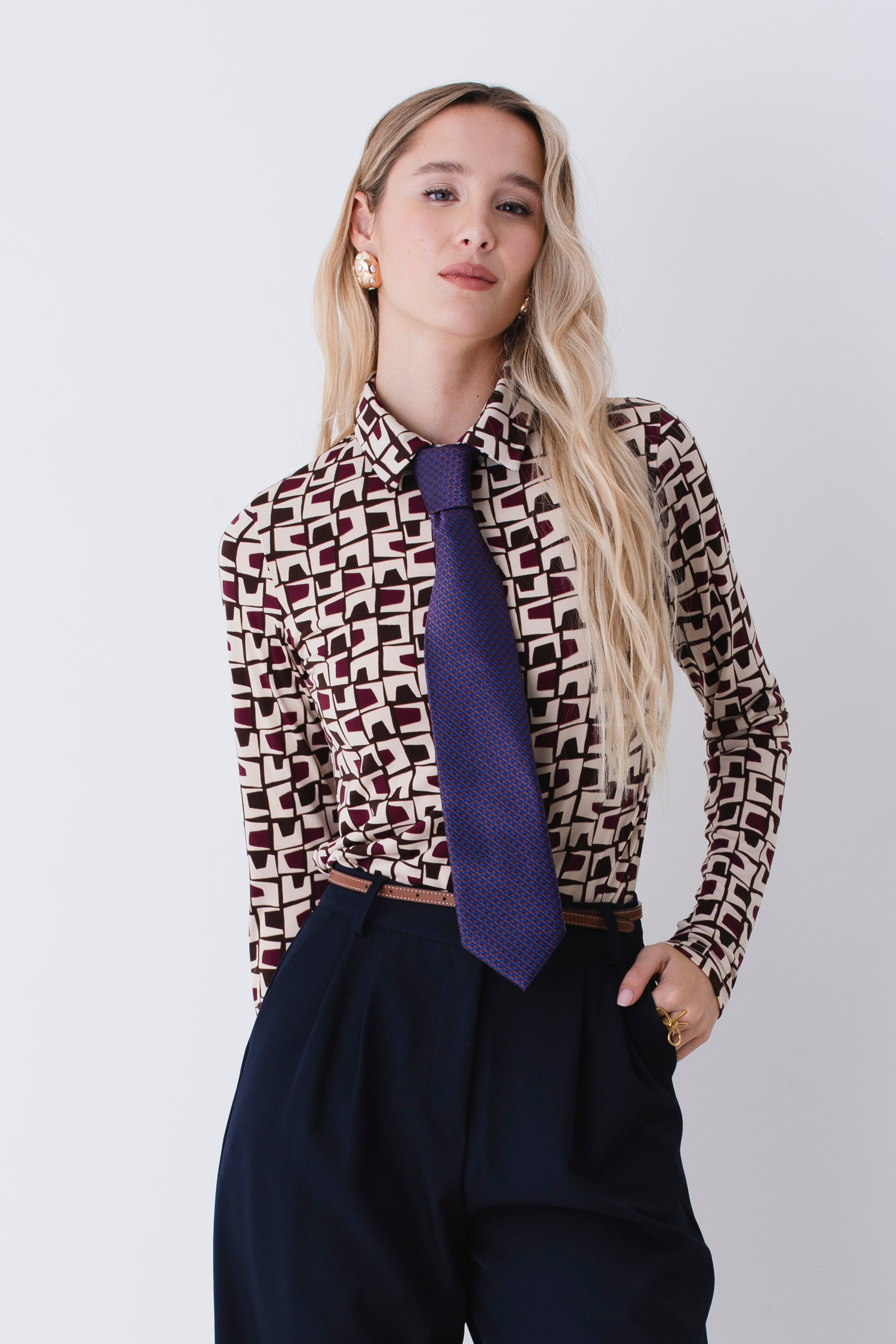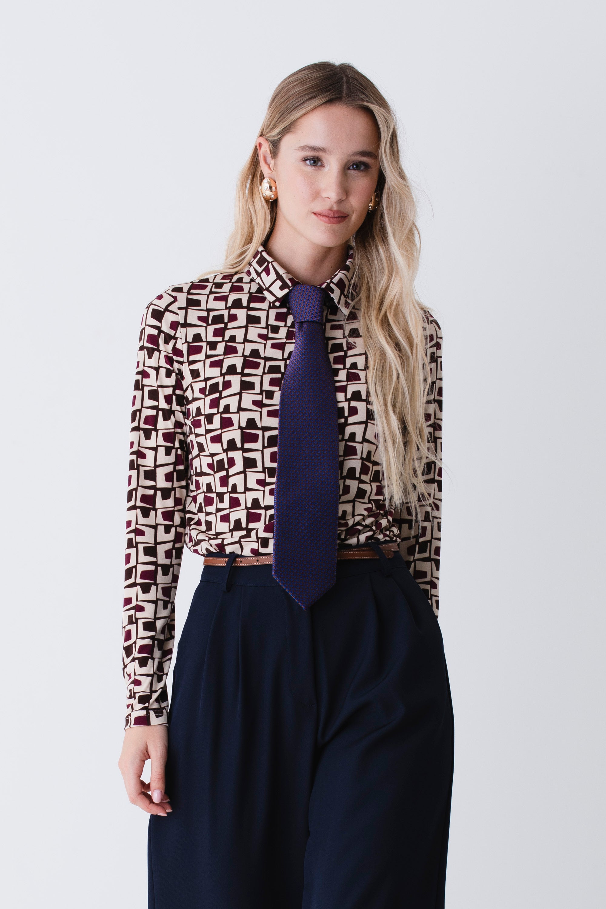 Camicia in raso fantasia geometrica - FW26