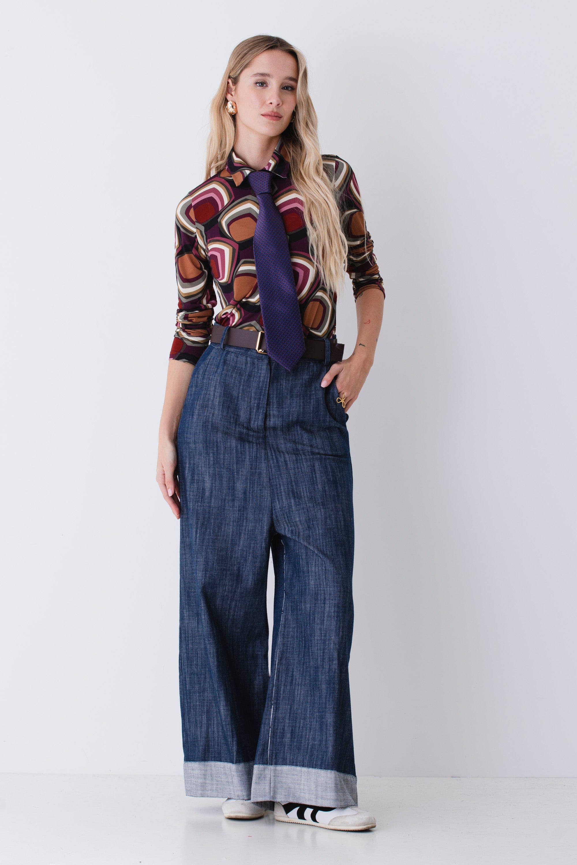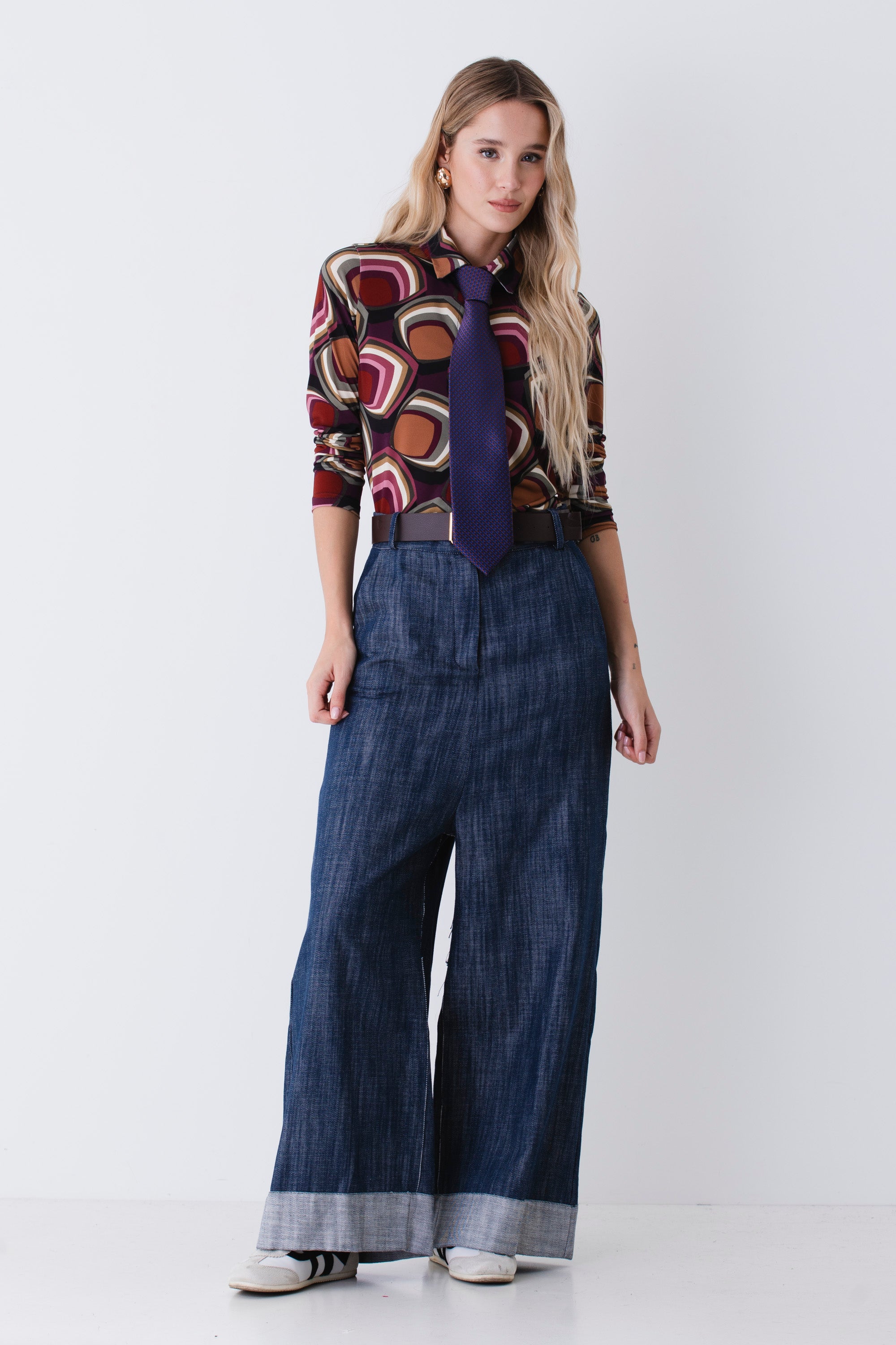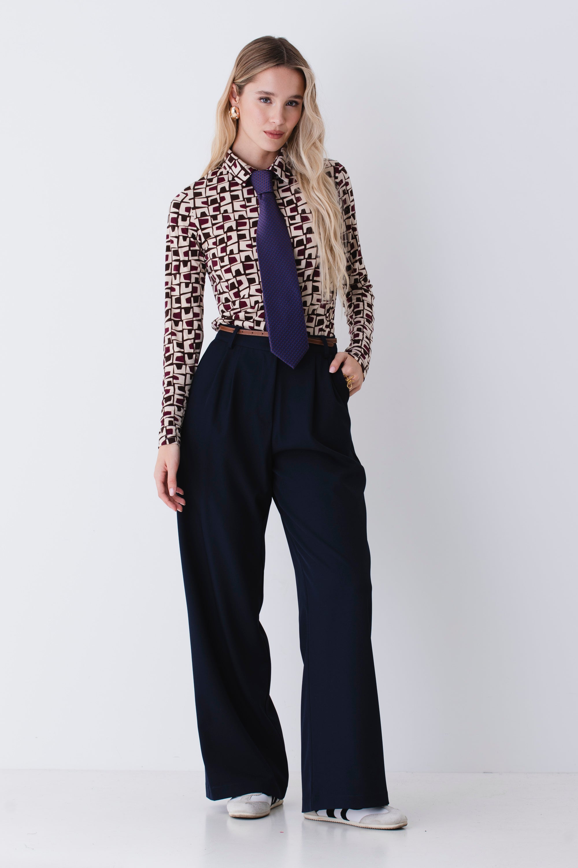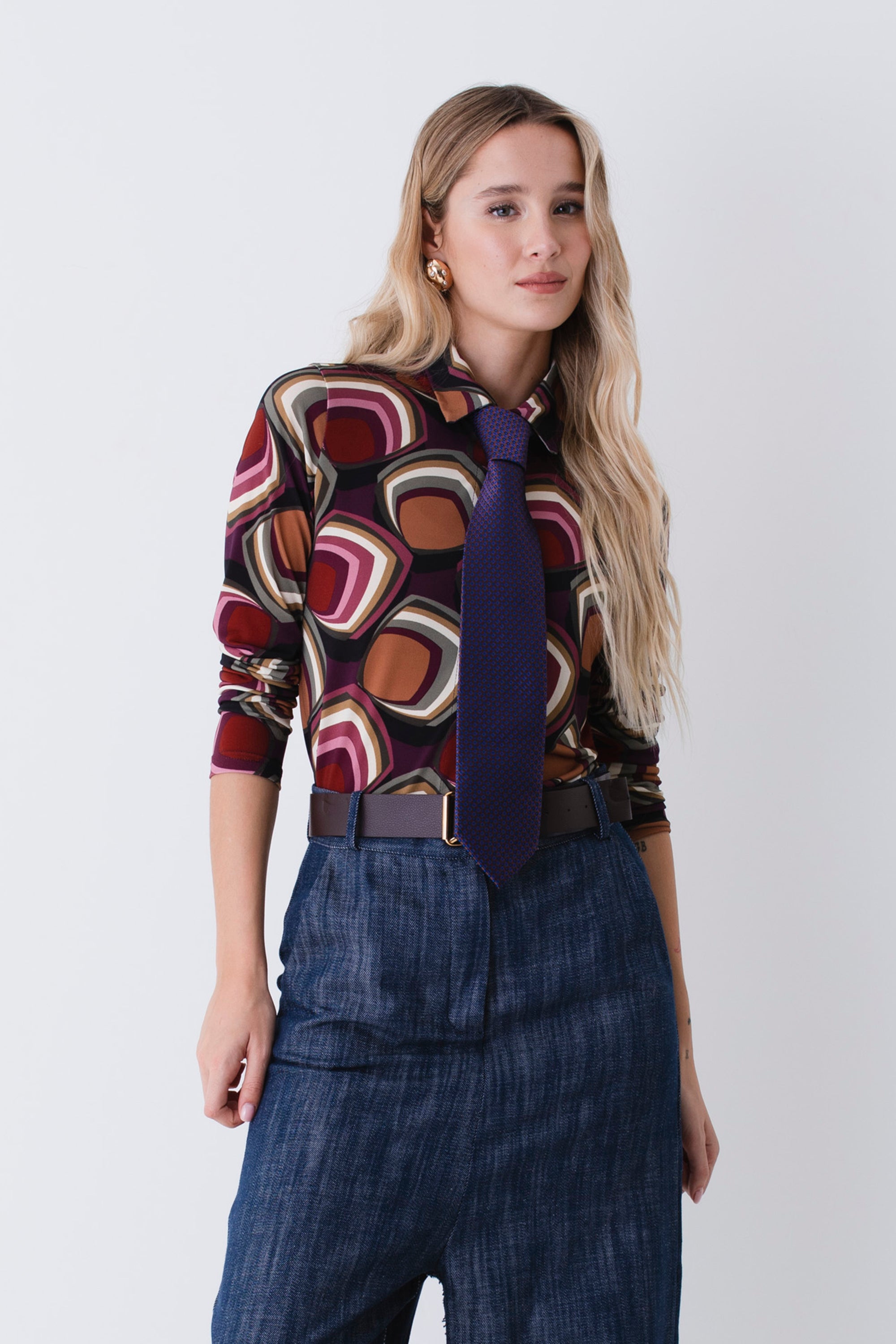 Camicia in raso fantasia geometrica - FW26
