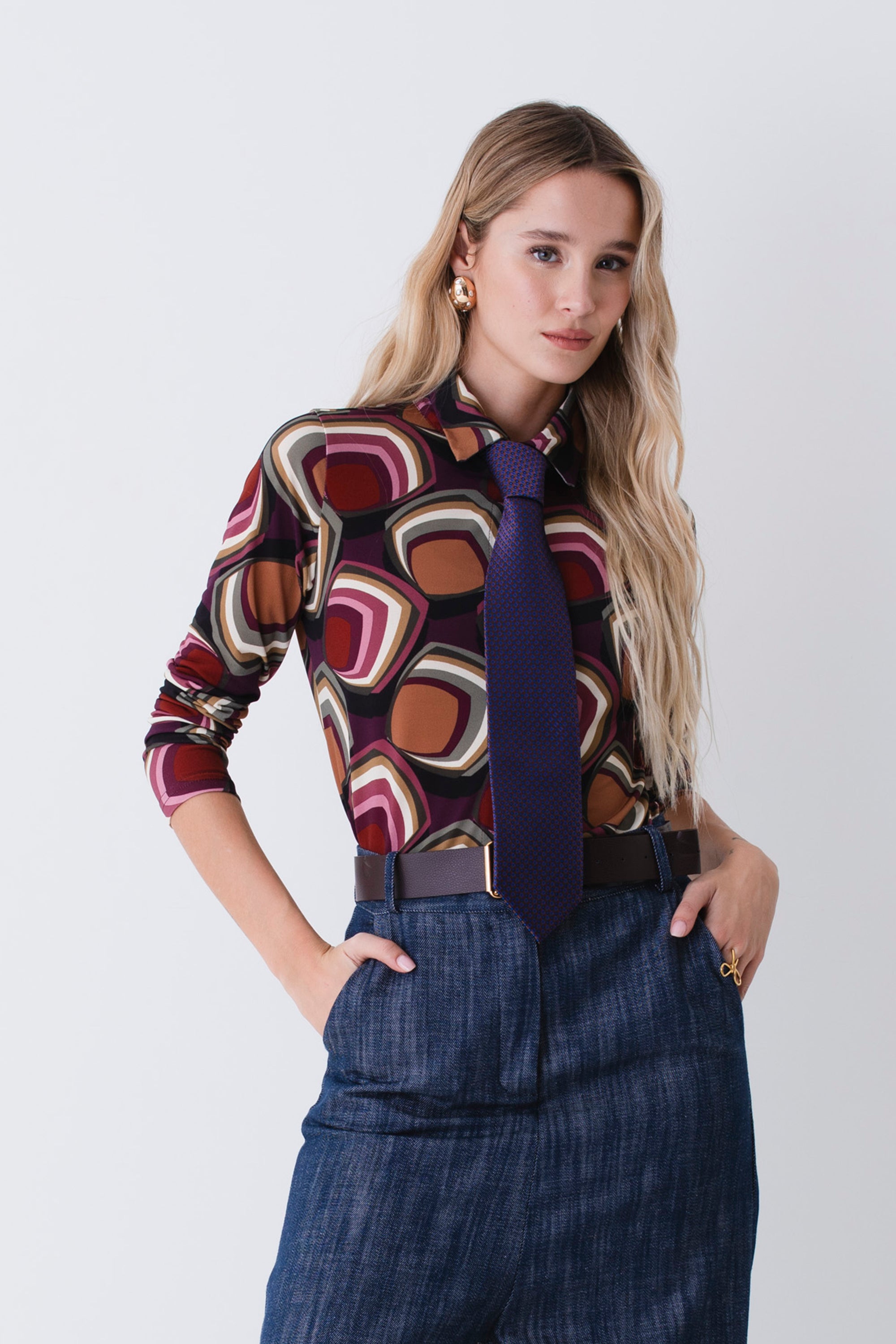 Blusa in georgette fantasia geometrica - FW26