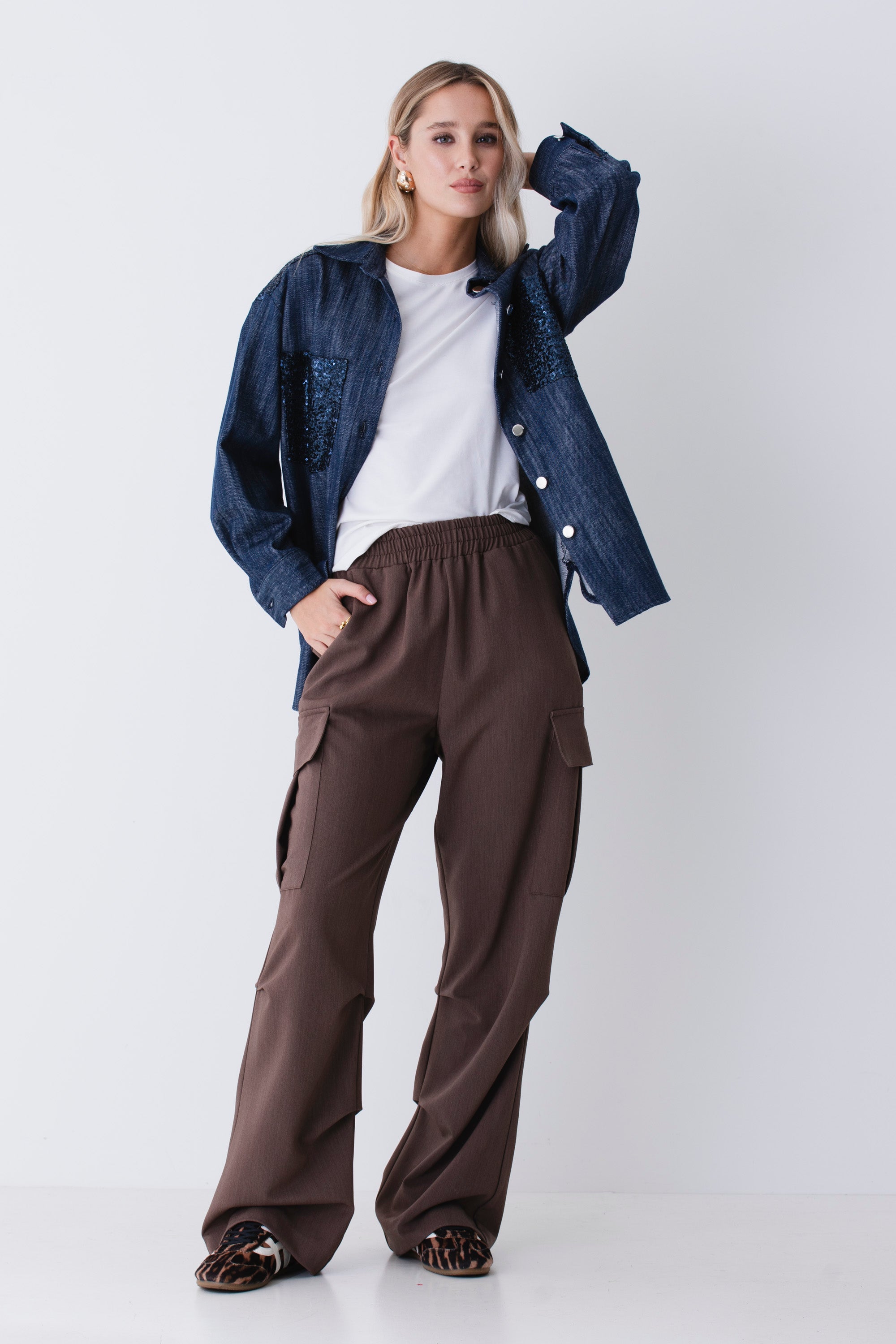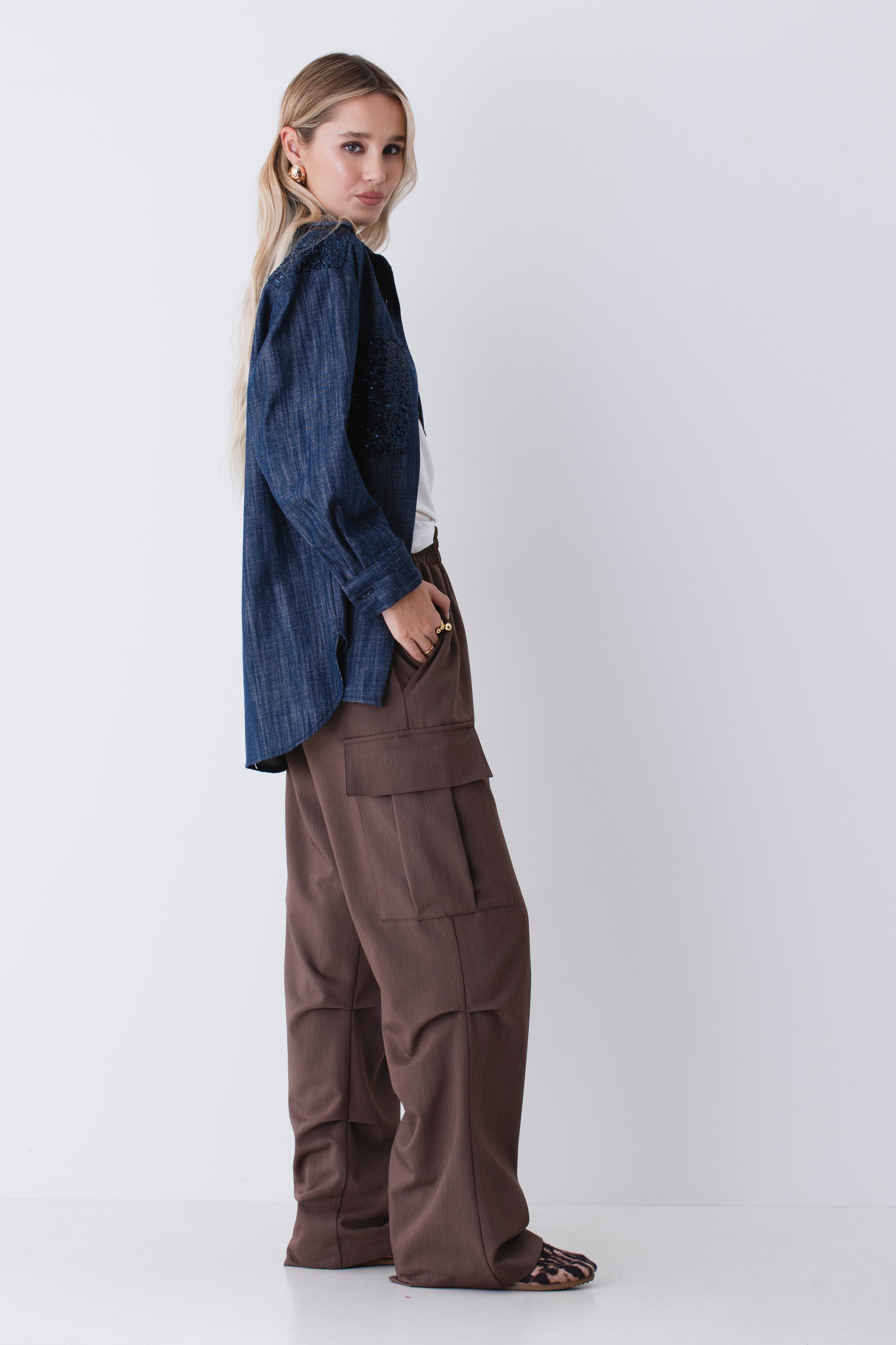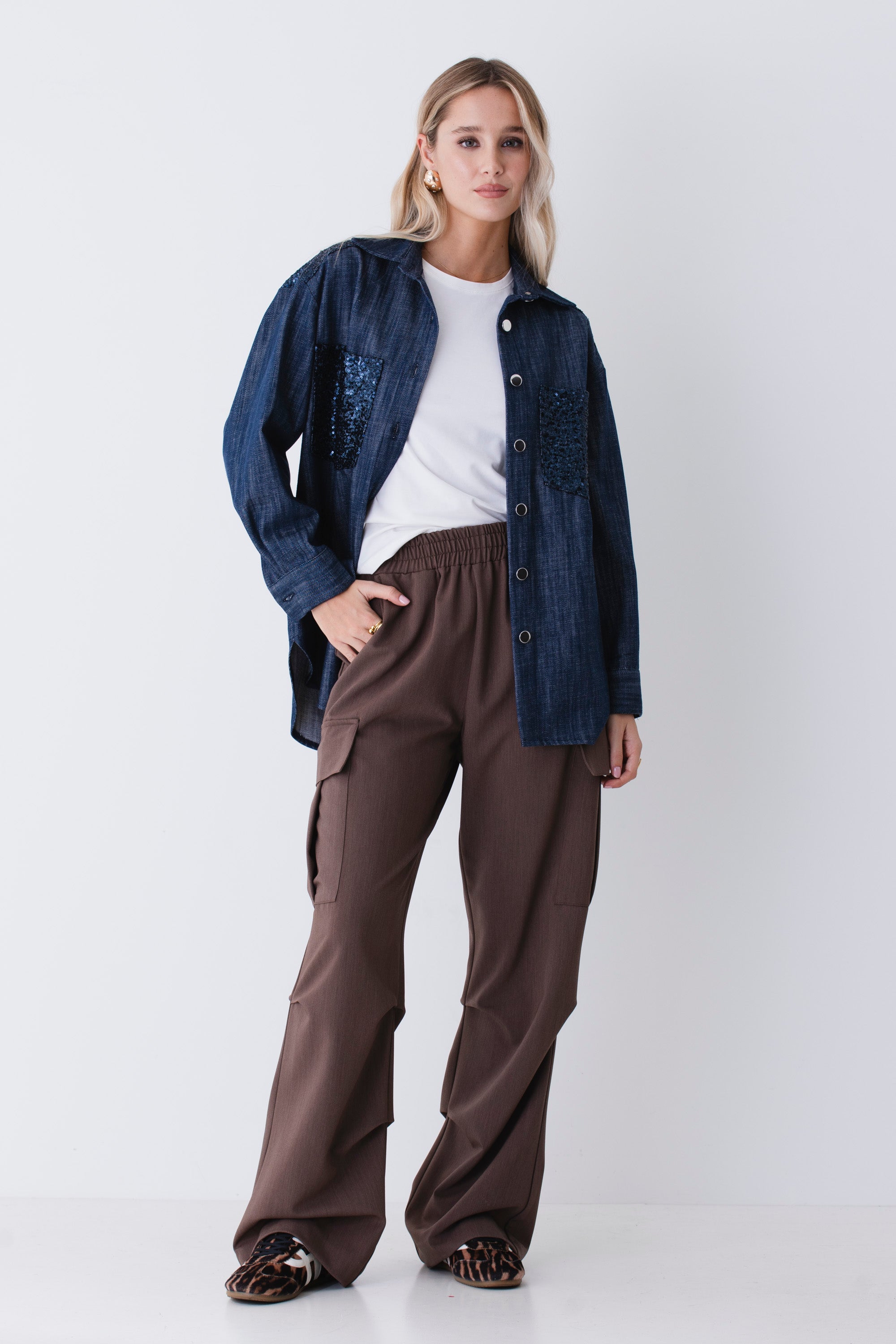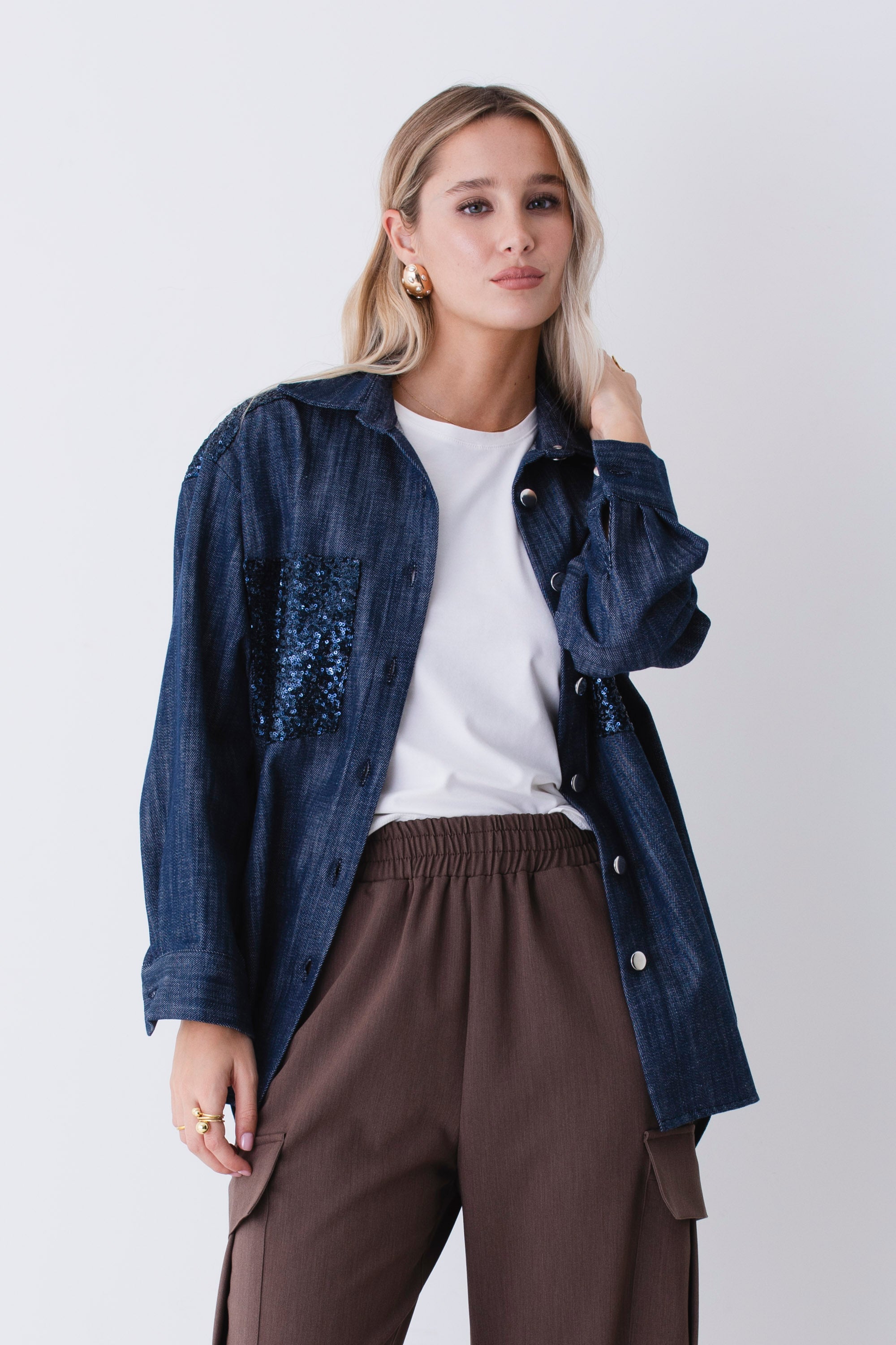 Camicia over in finto jeans con paillettes - FW26
