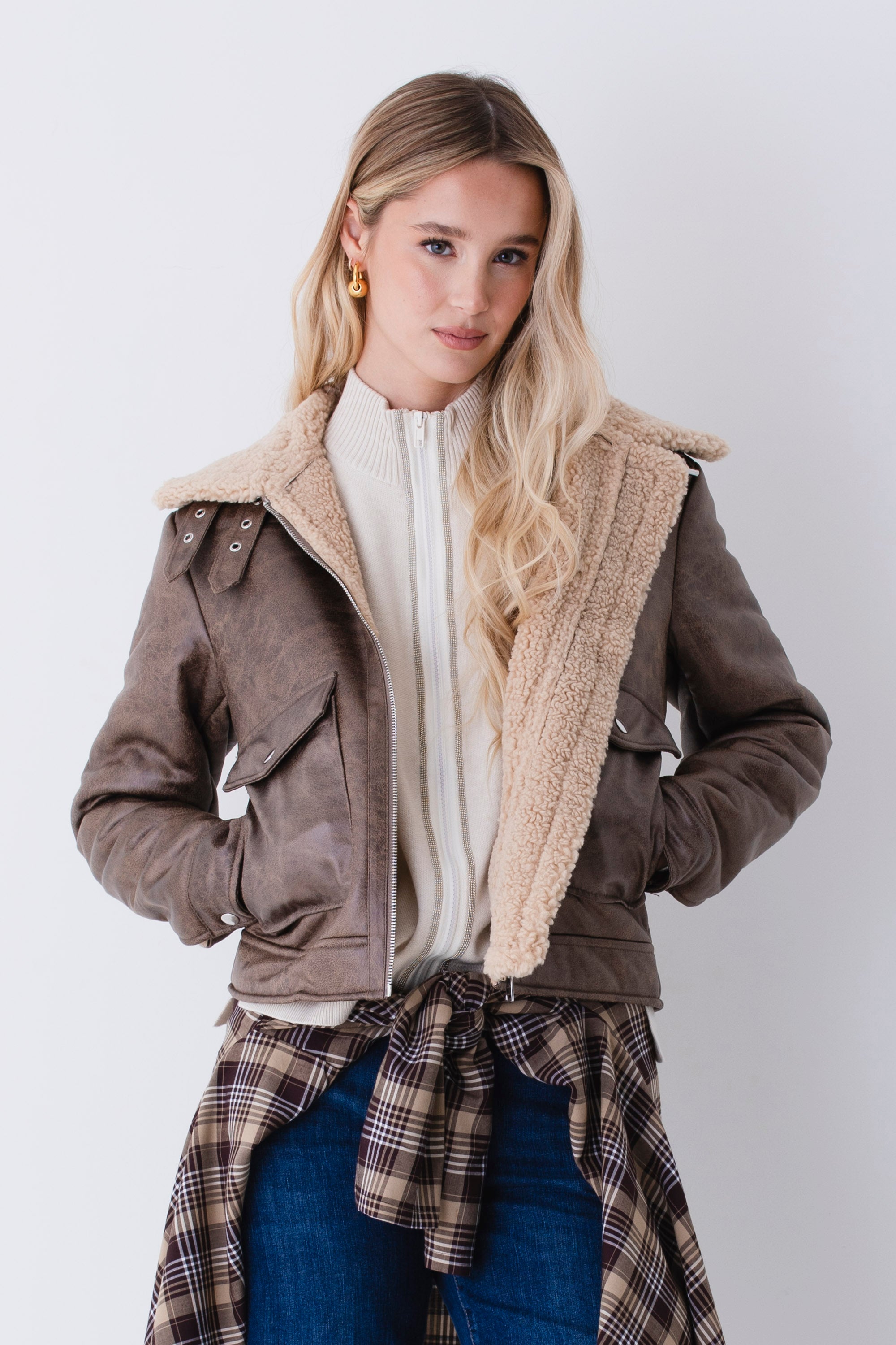 Giacca corta con cappuccio effetto pelliccia - FW26