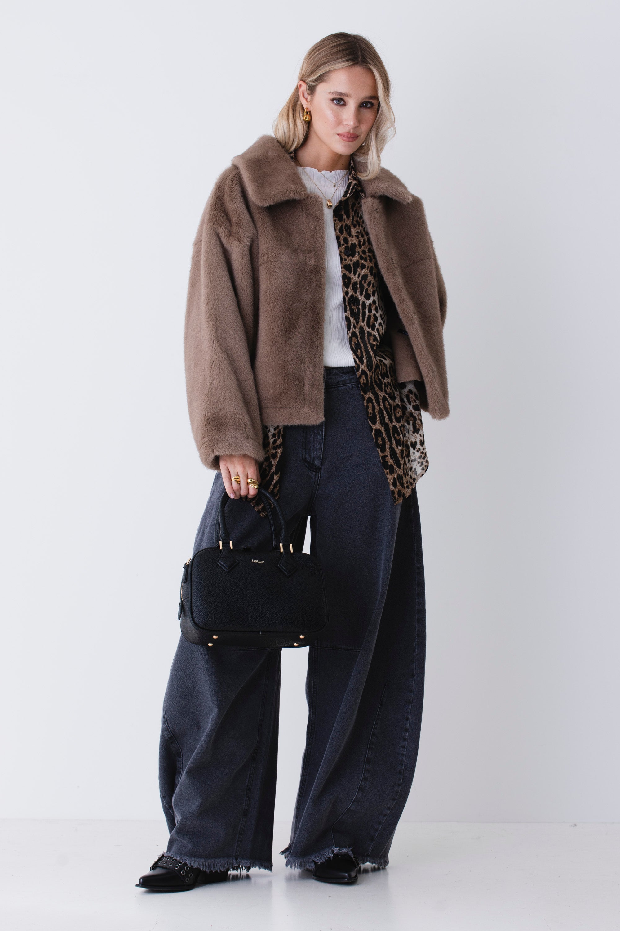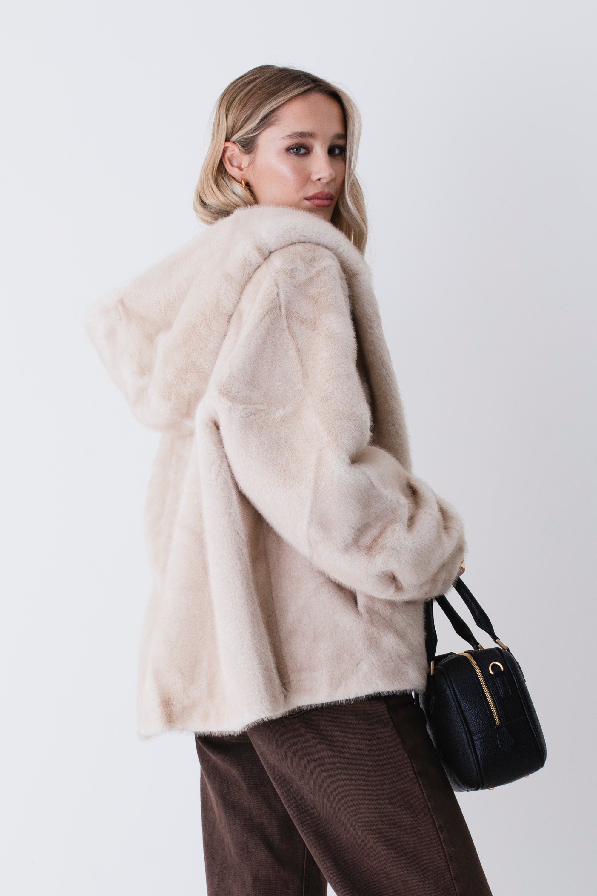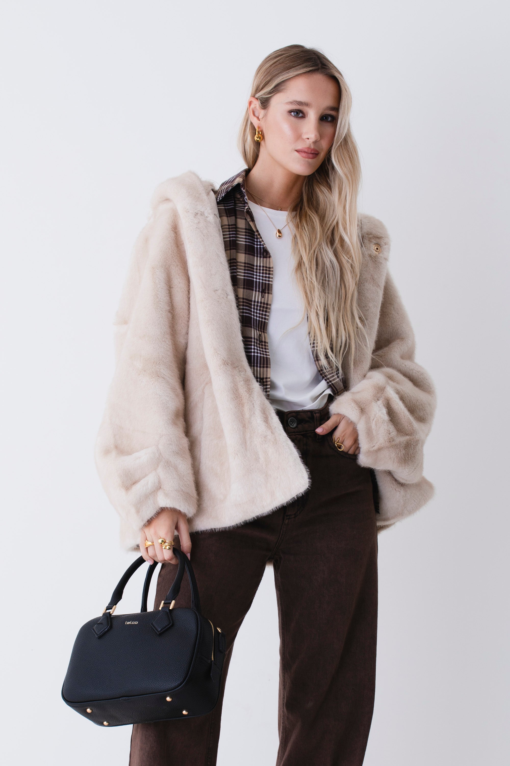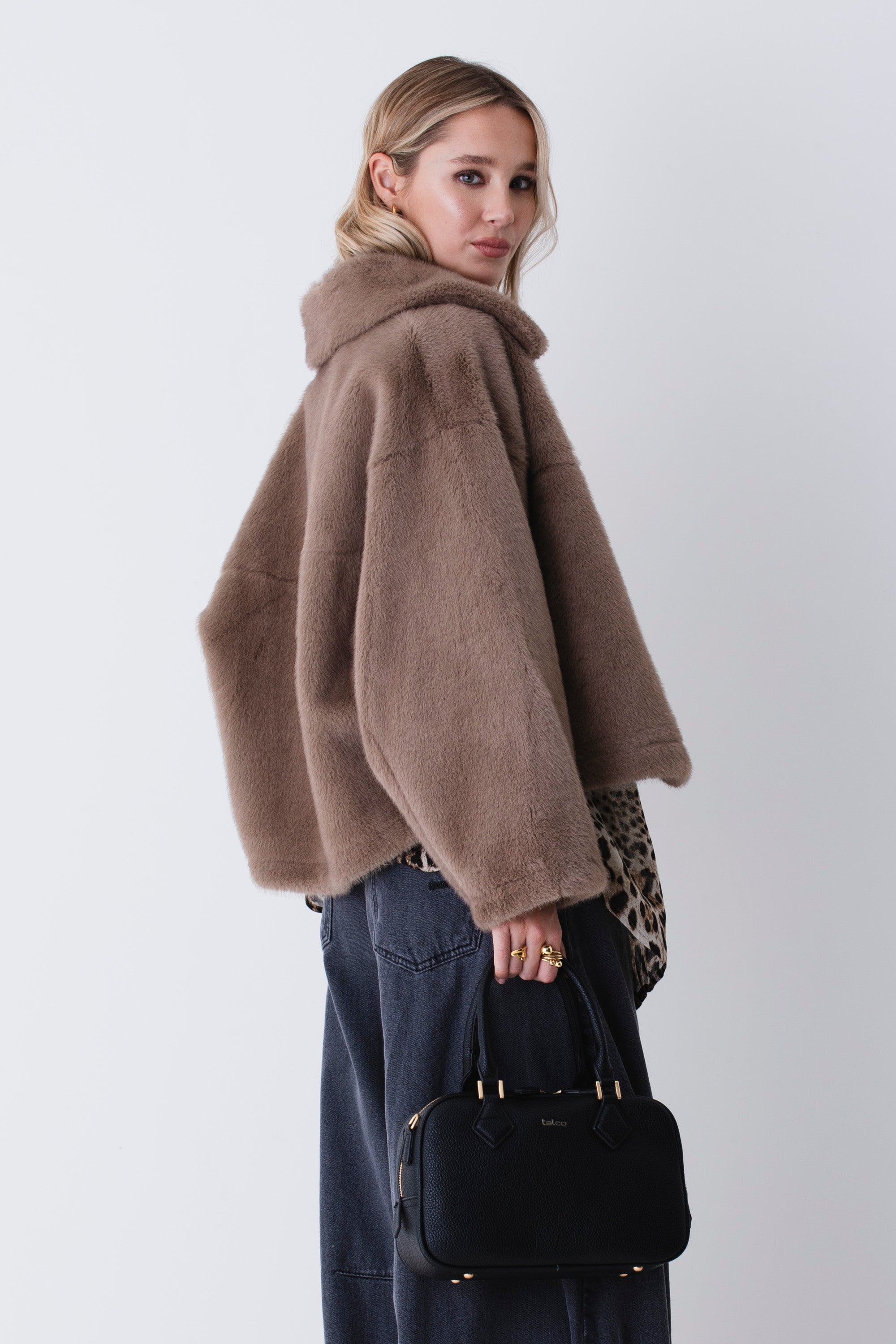 Giacca over con cappuccio in effetto pelliccia - FW26