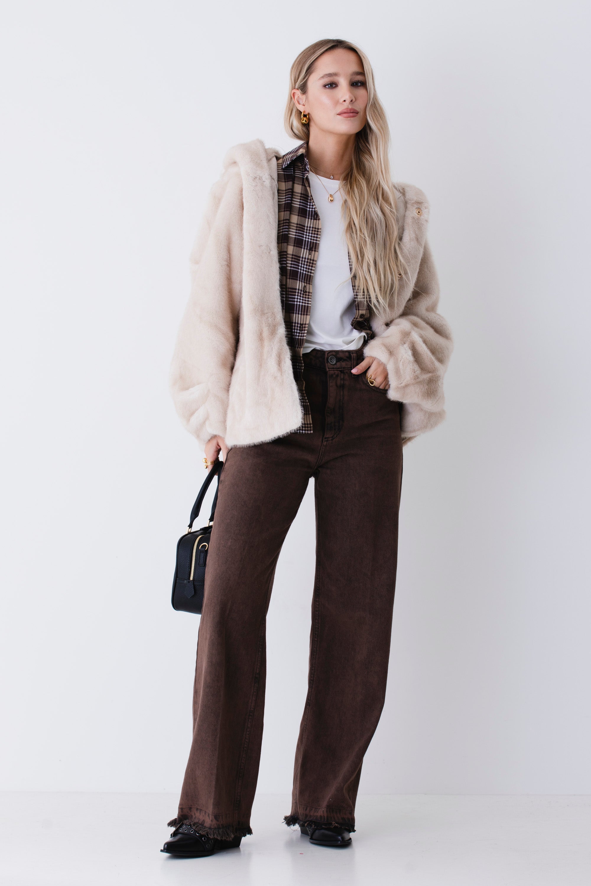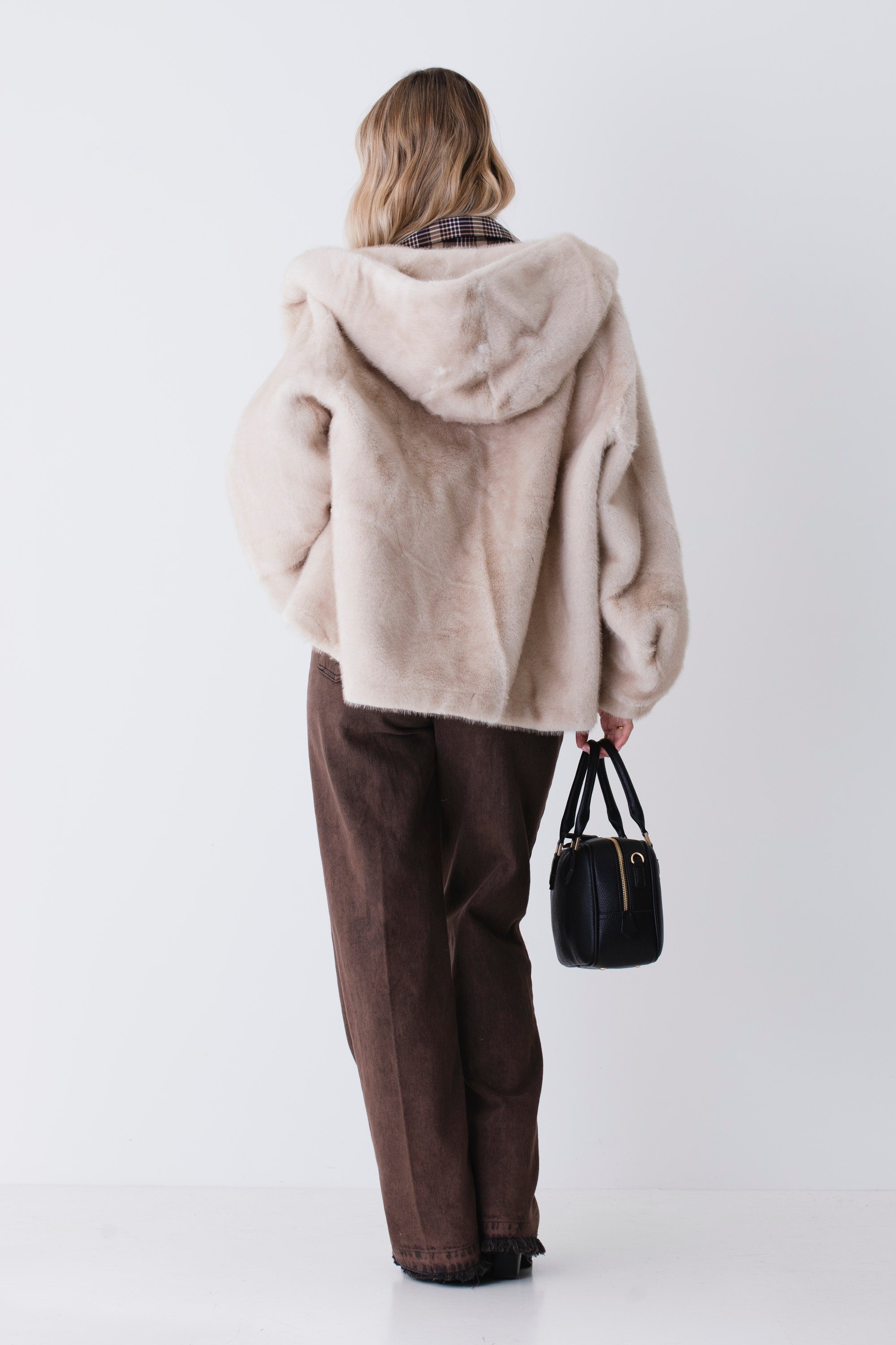 Giacca corta con cappuccio effetto pelliccia - FW26