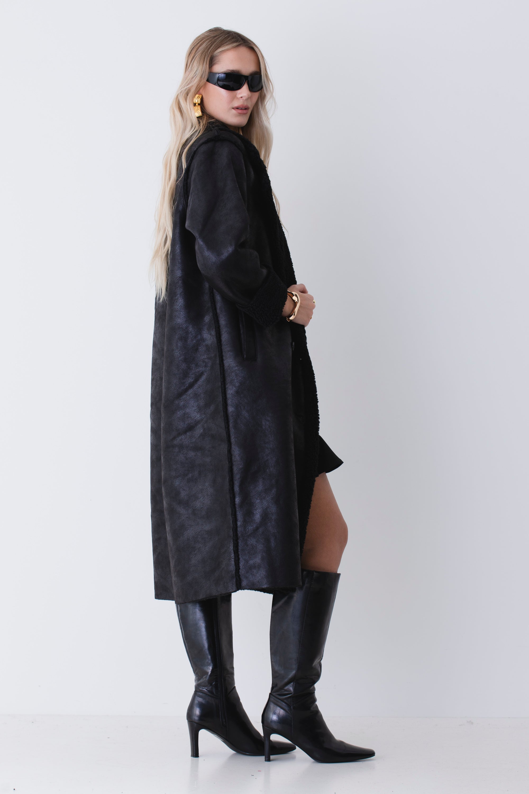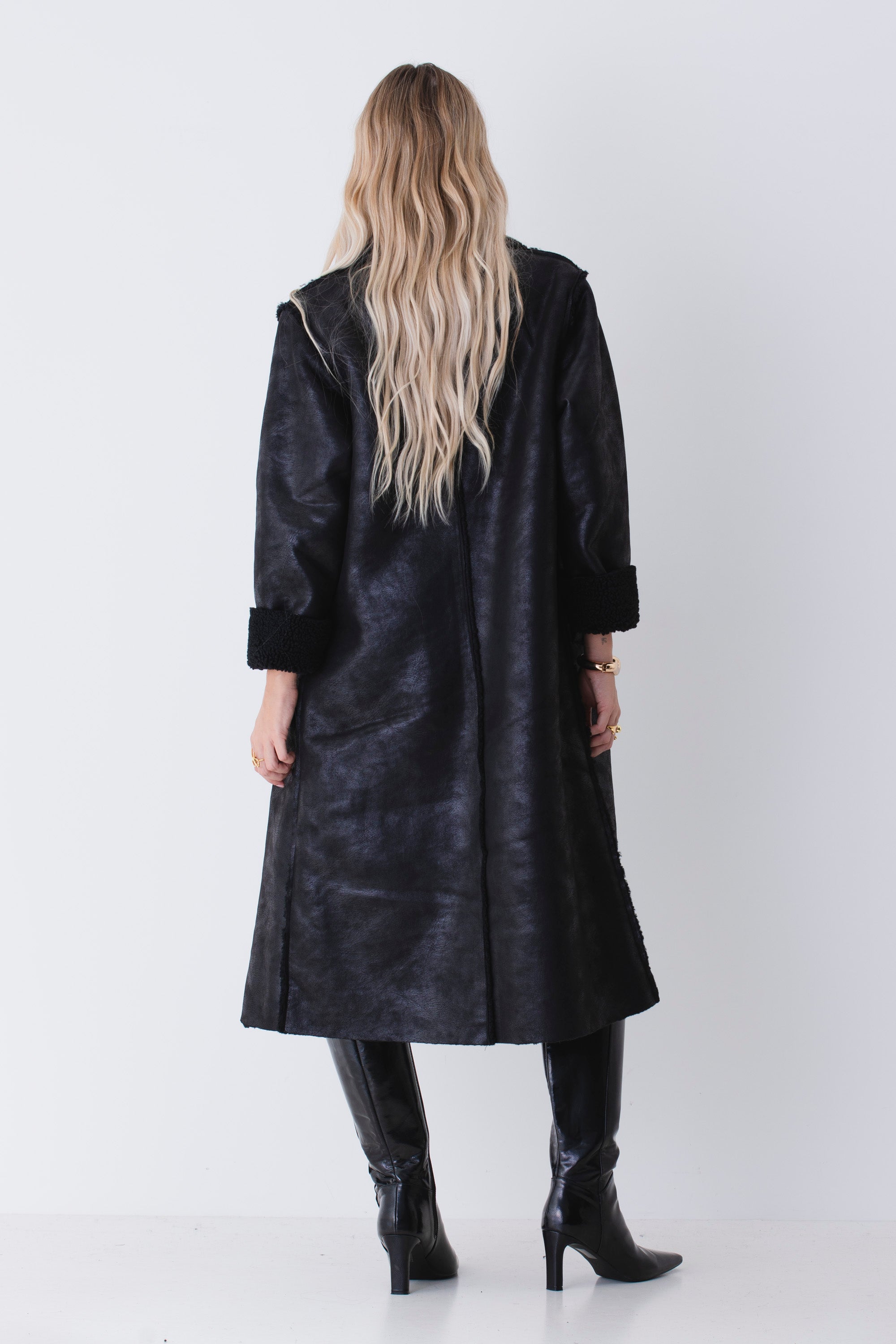Cappotto lungo doppio petto in tessuto effetto montone - FW26