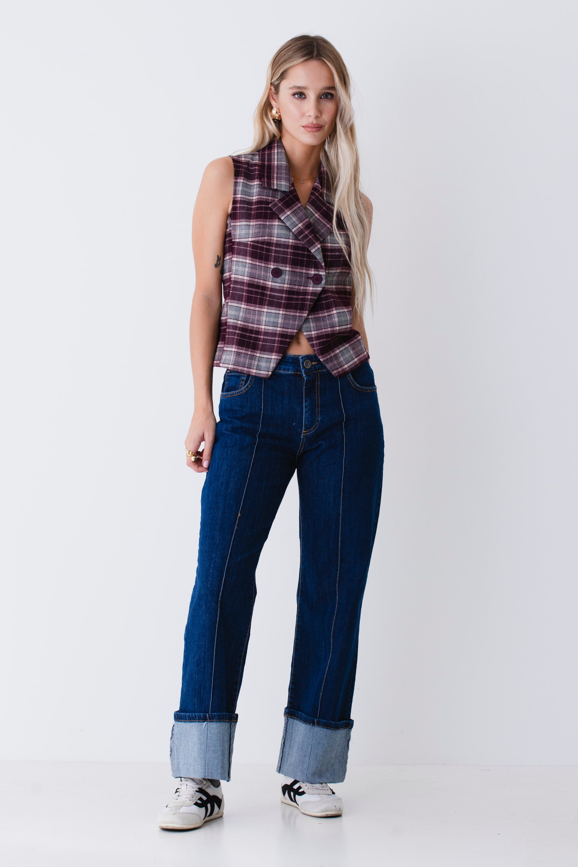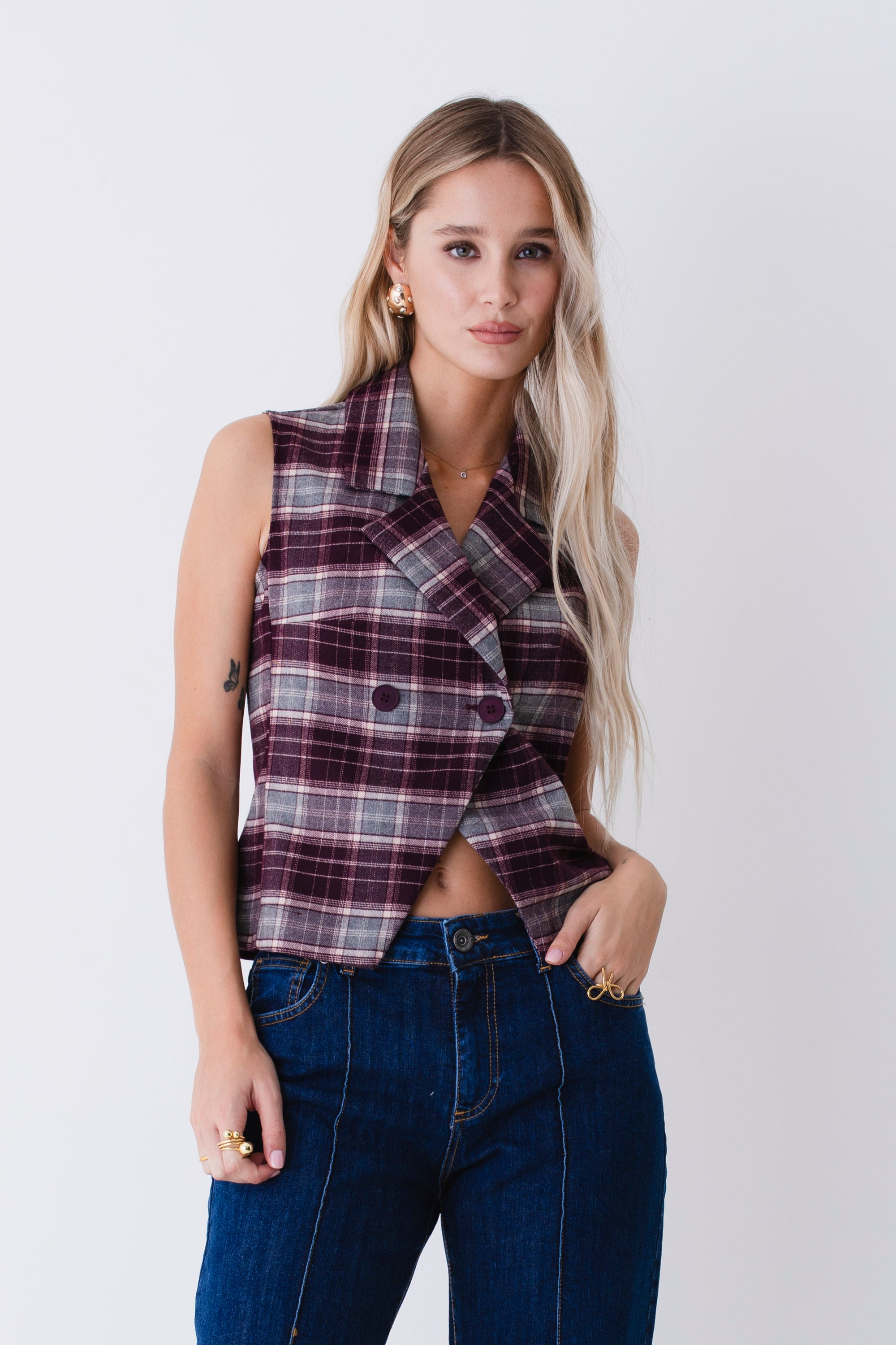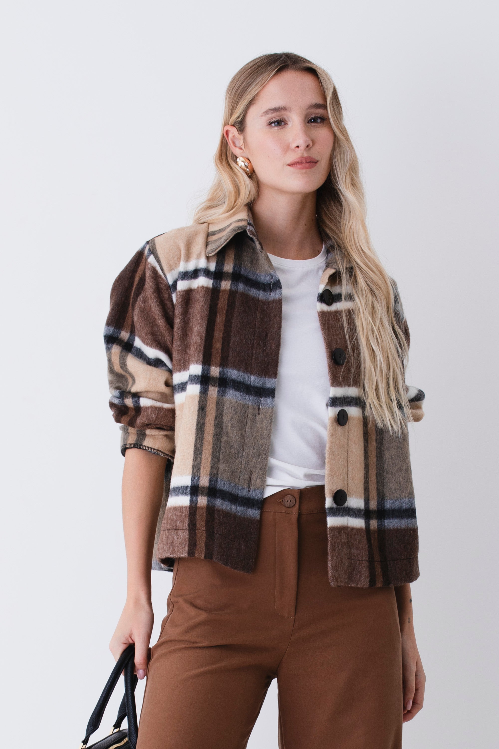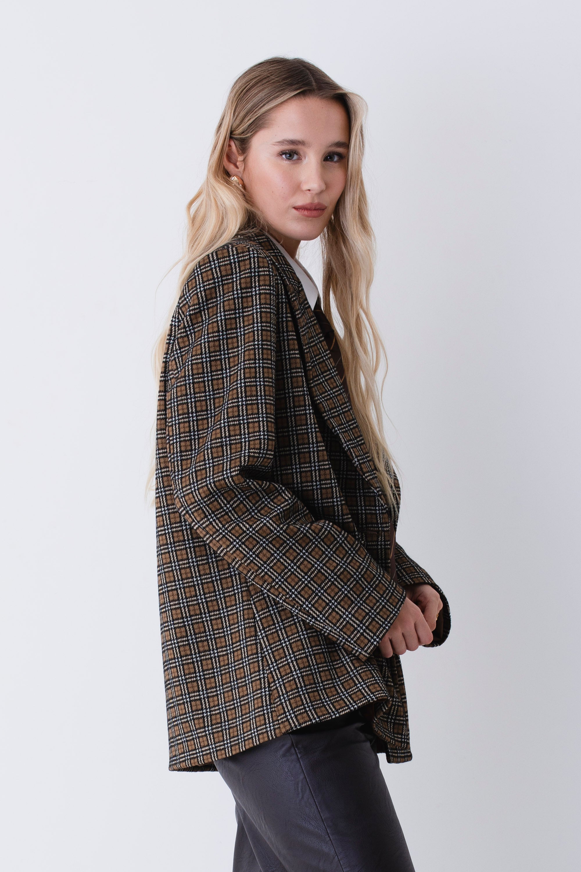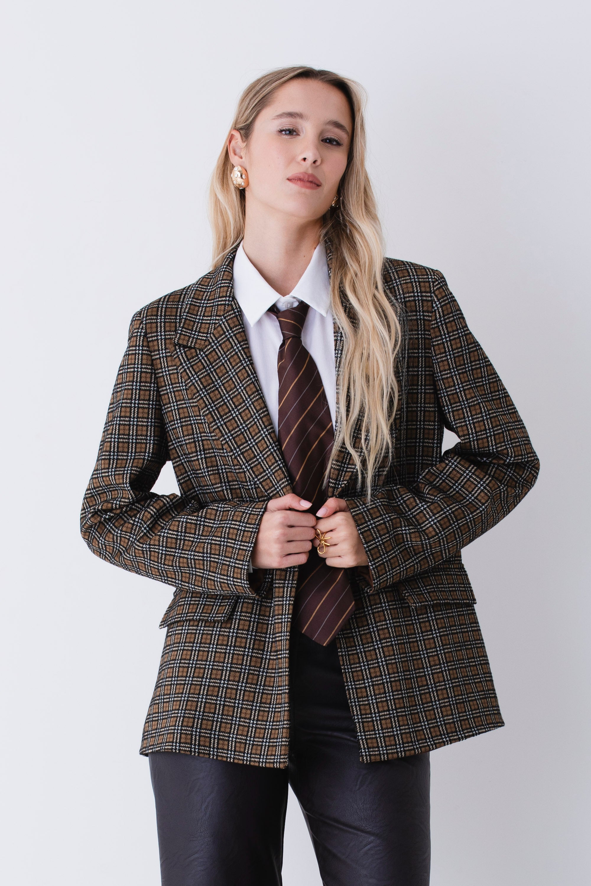 Giacca a quadri con bottoni in tessuto misto lana - FW26
