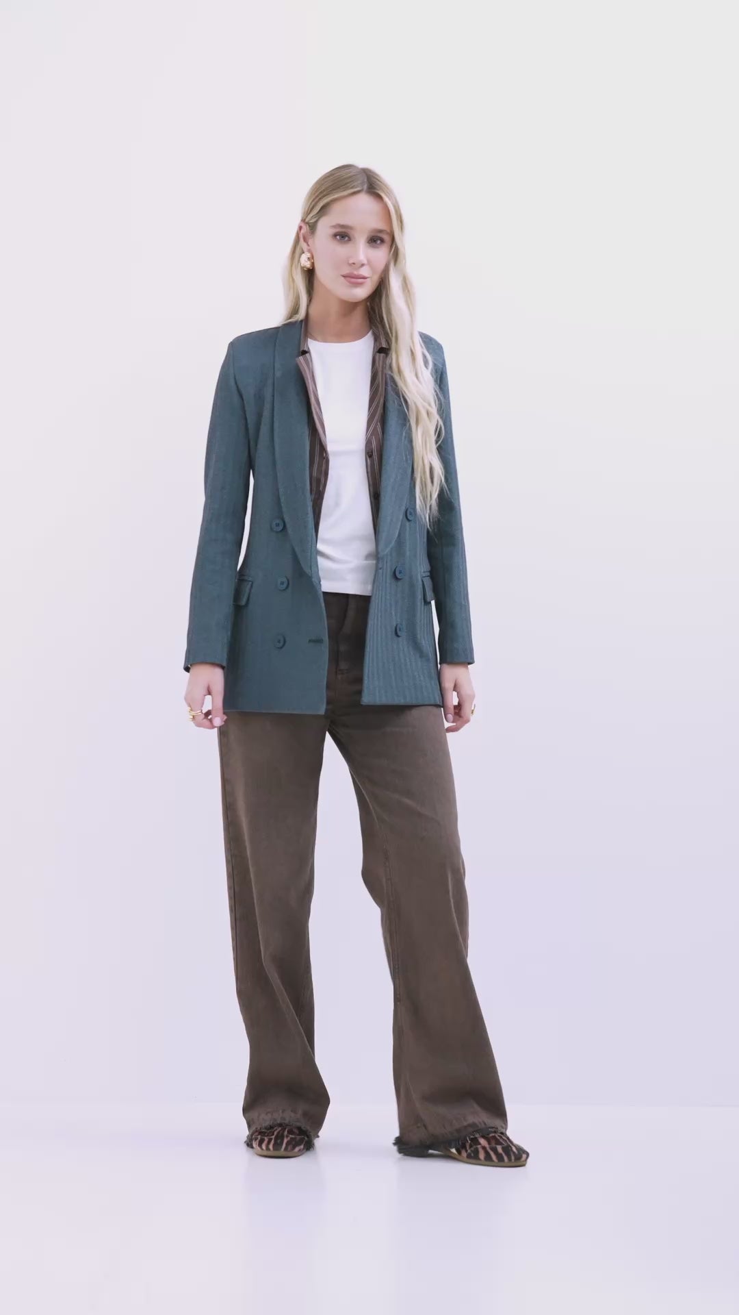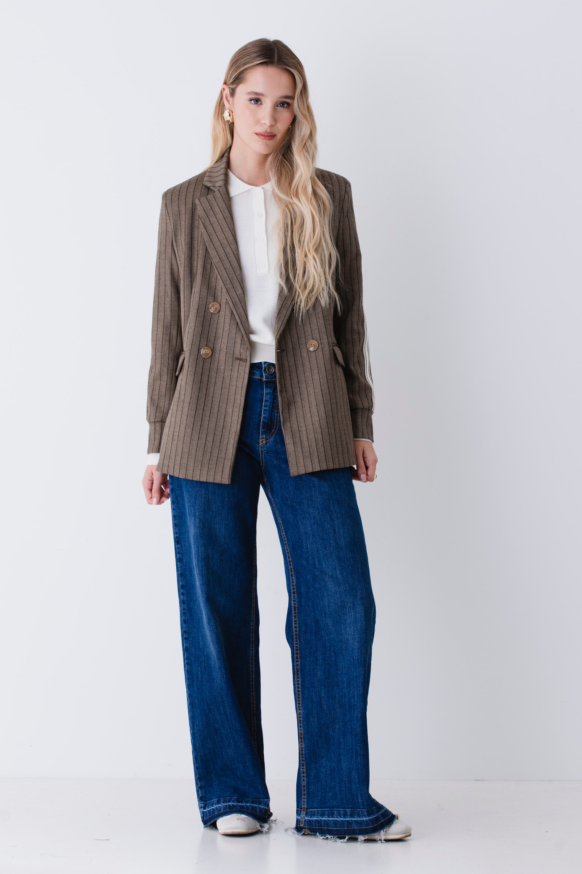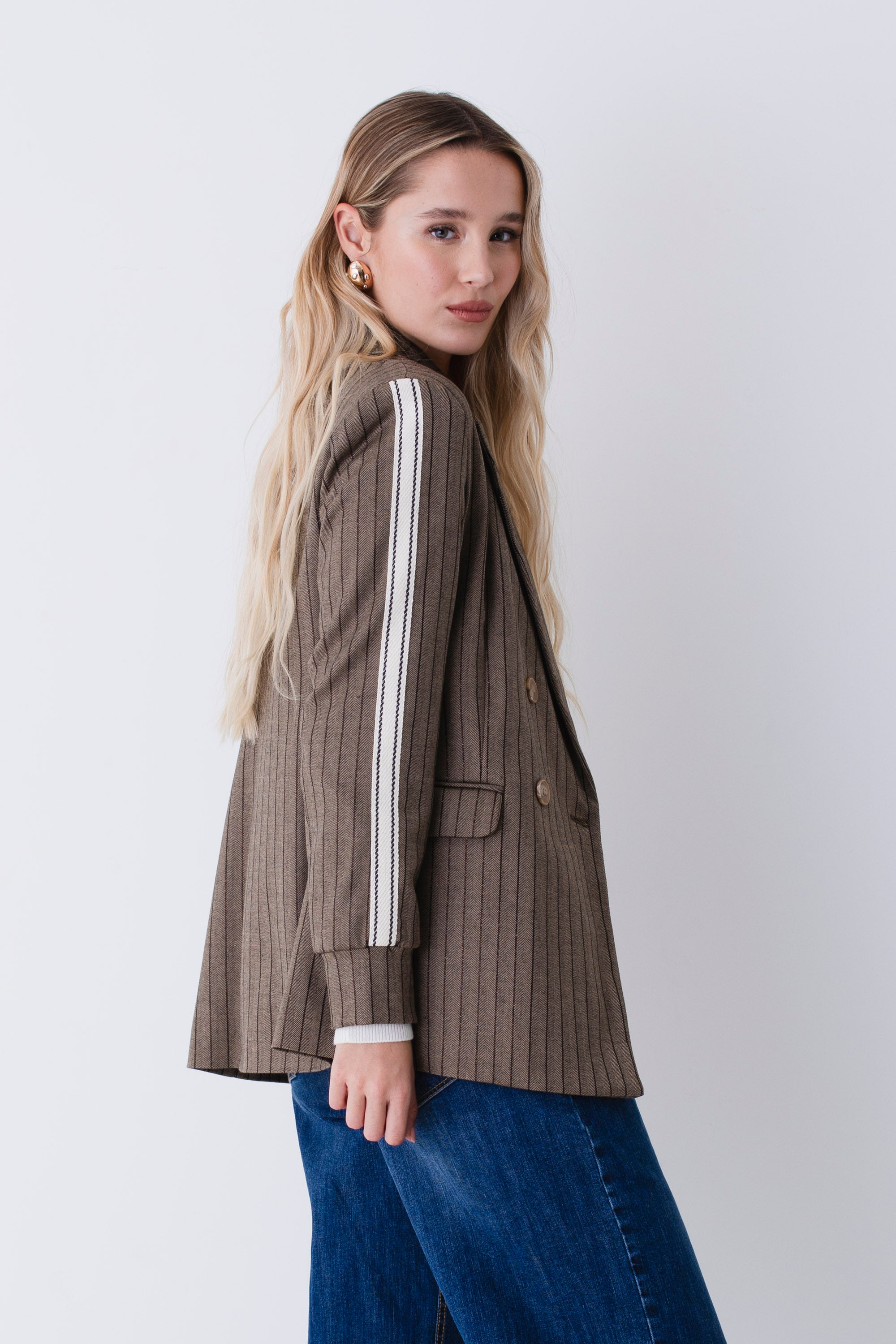 Blazer doppio petto in tessuto gessato con spille - FW26