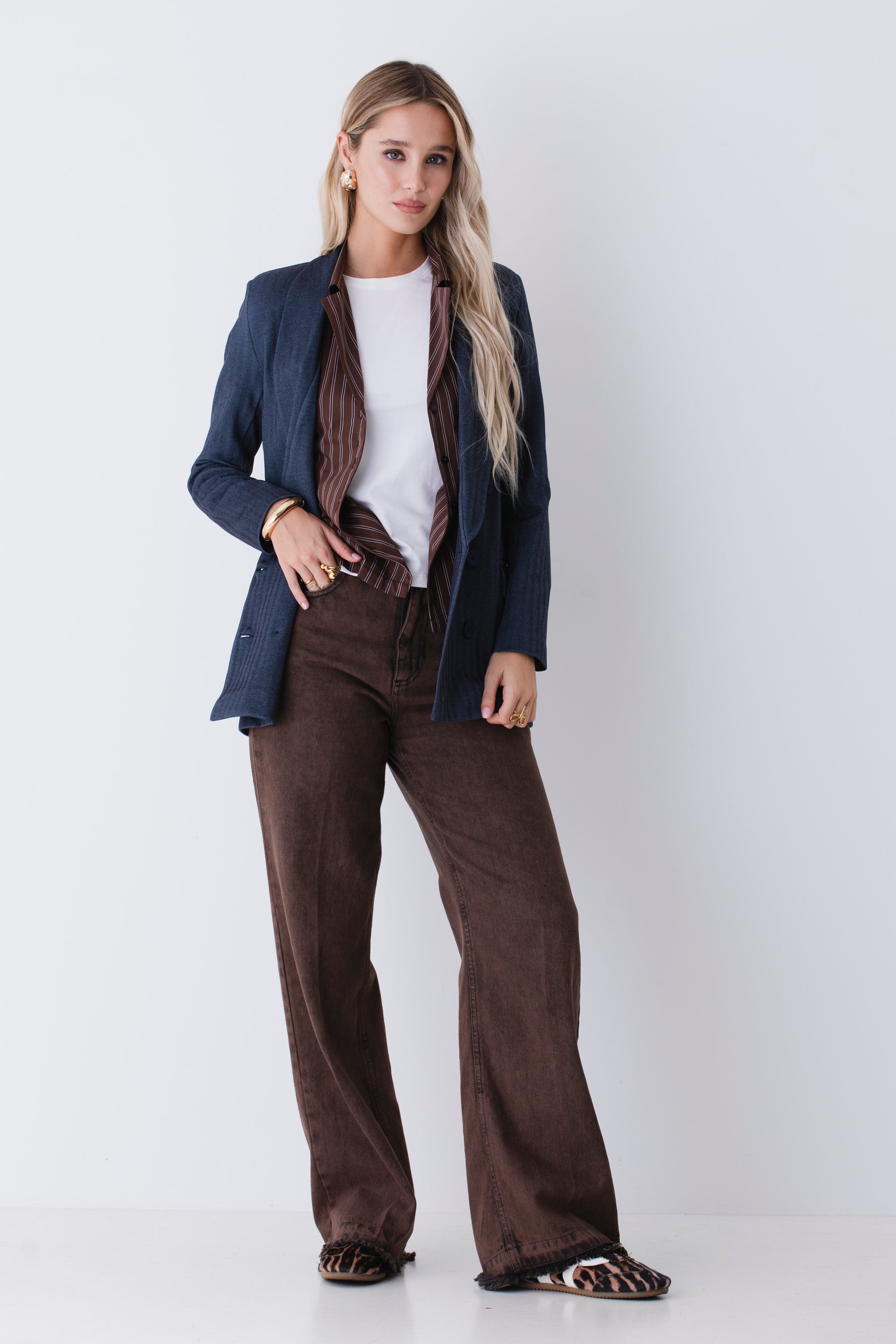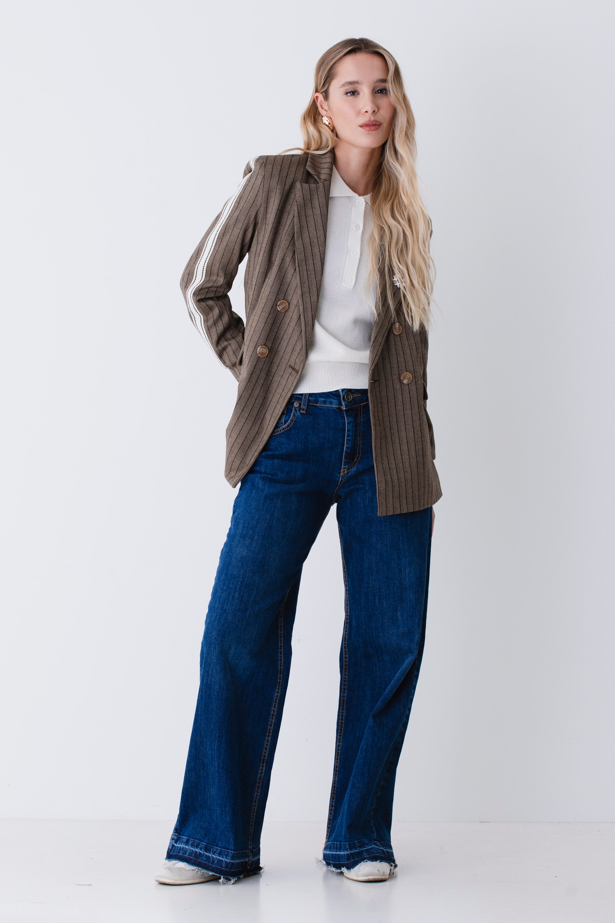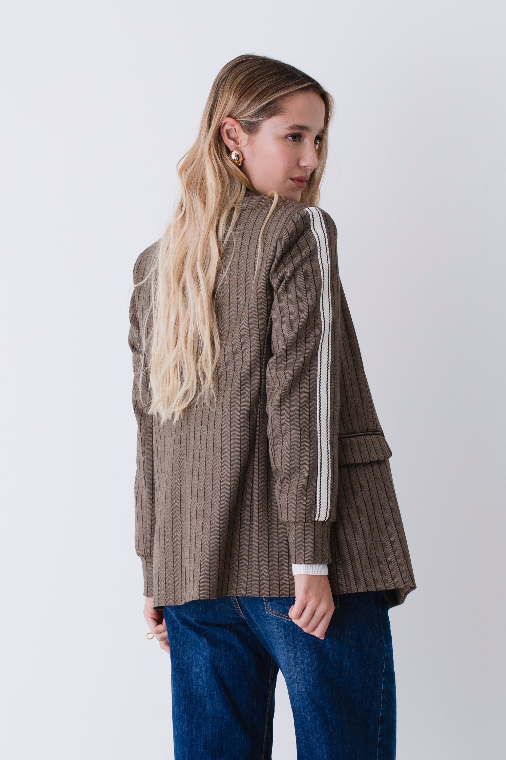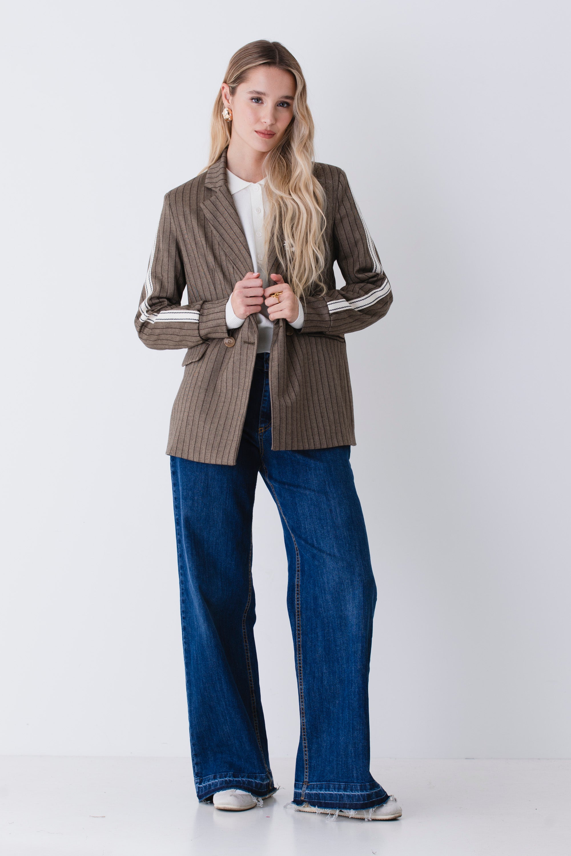 Blazer doppio petto in tessuto gessato con spille - FW26