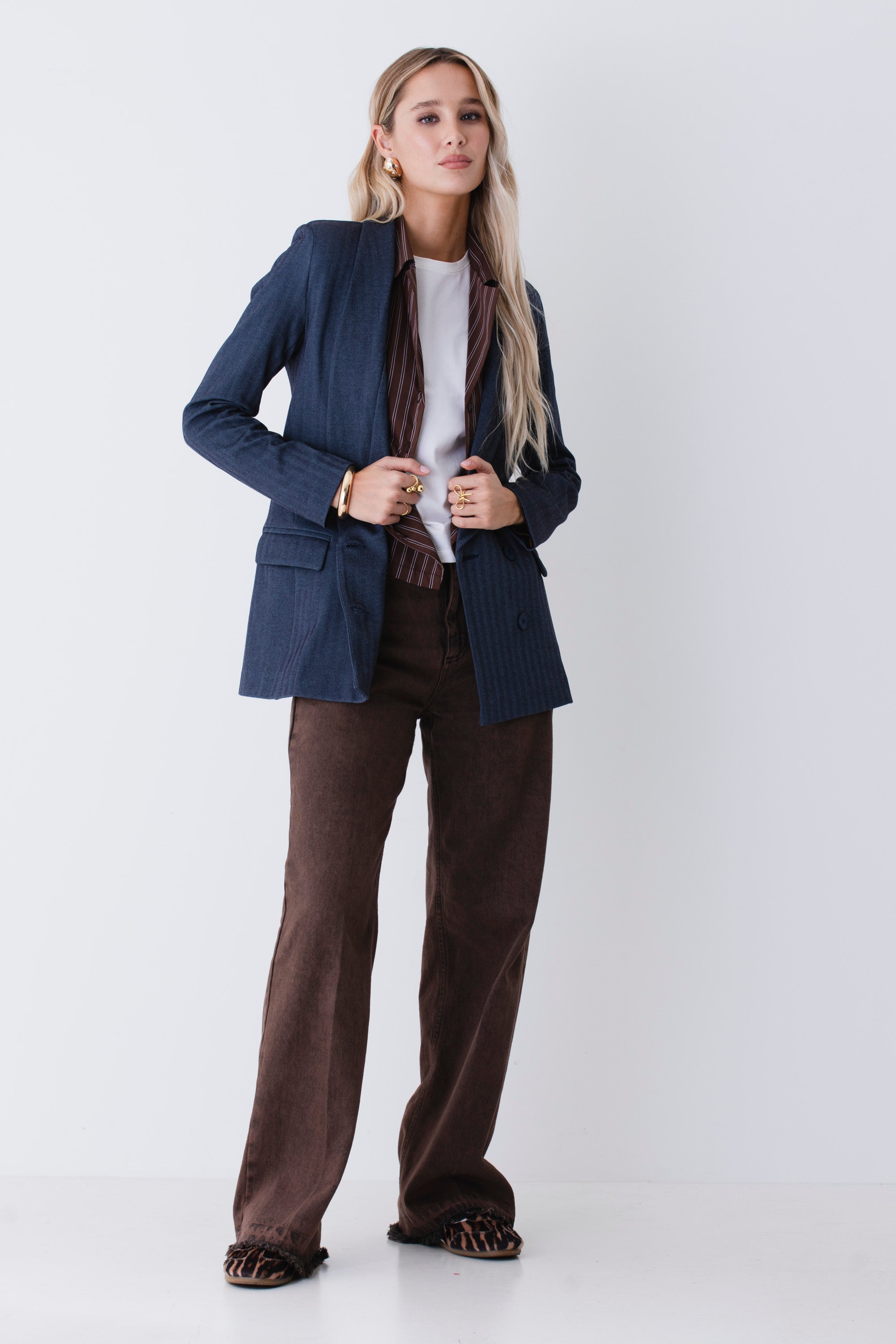 Blazer lungo doppio petto in tessuto spinato - FW26
