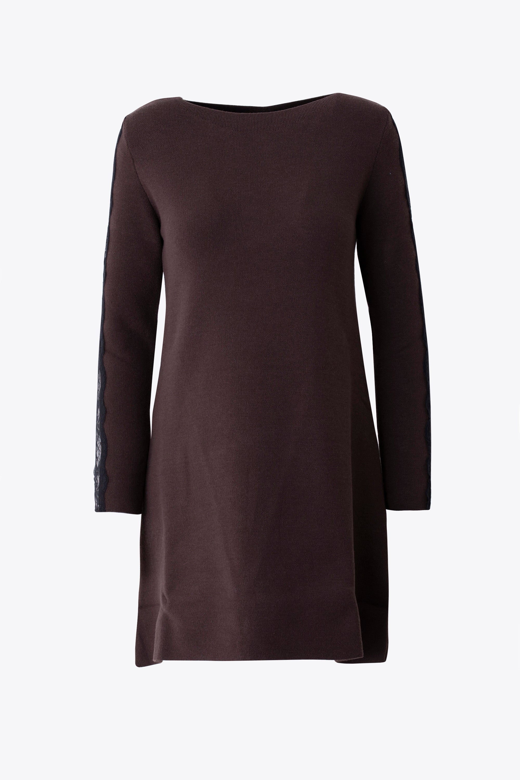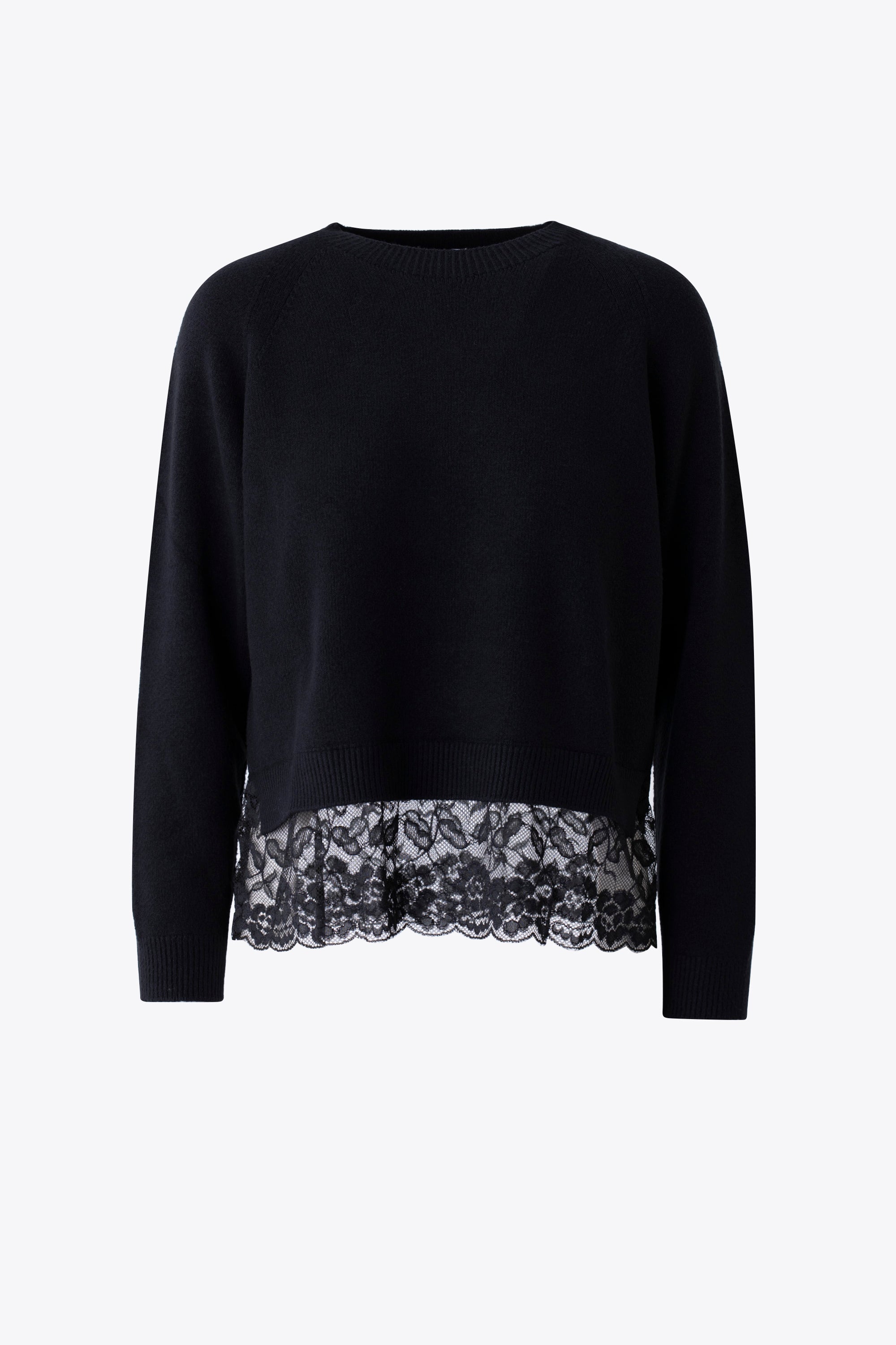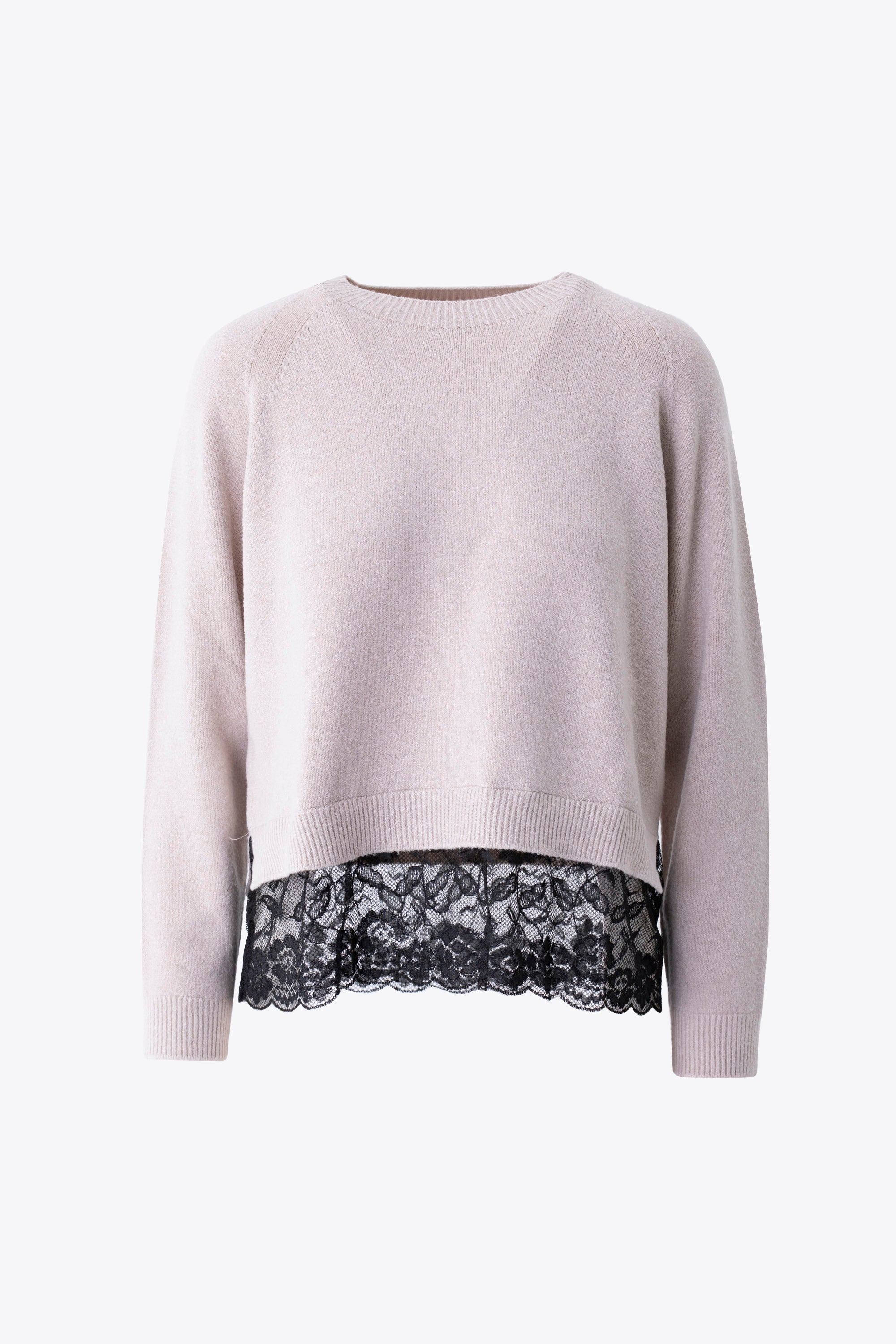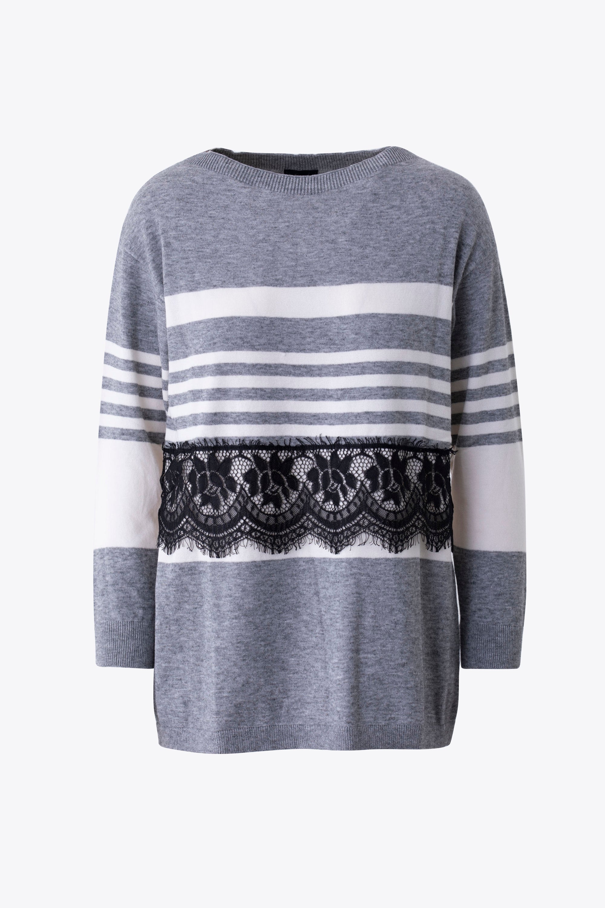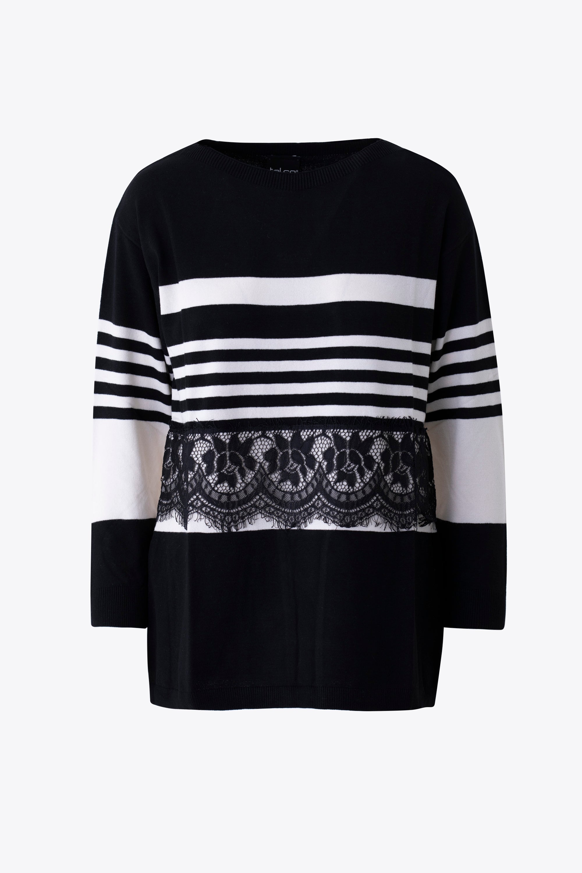 Maglia lunga a righe orizzontali con inserto in pizzo - FW26
