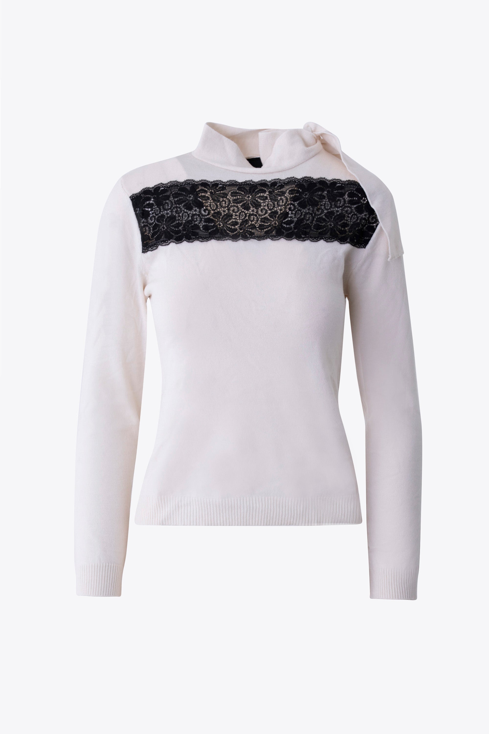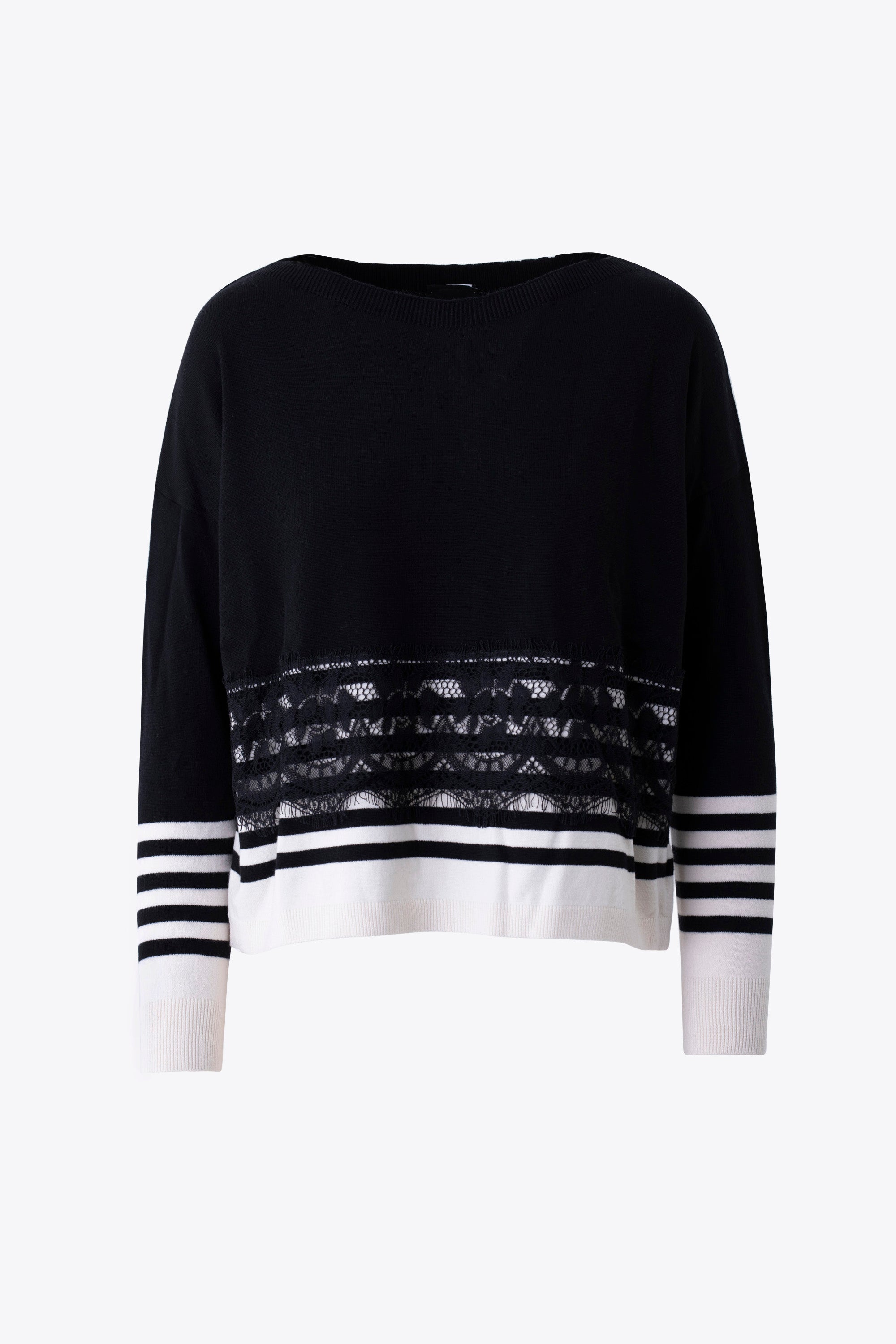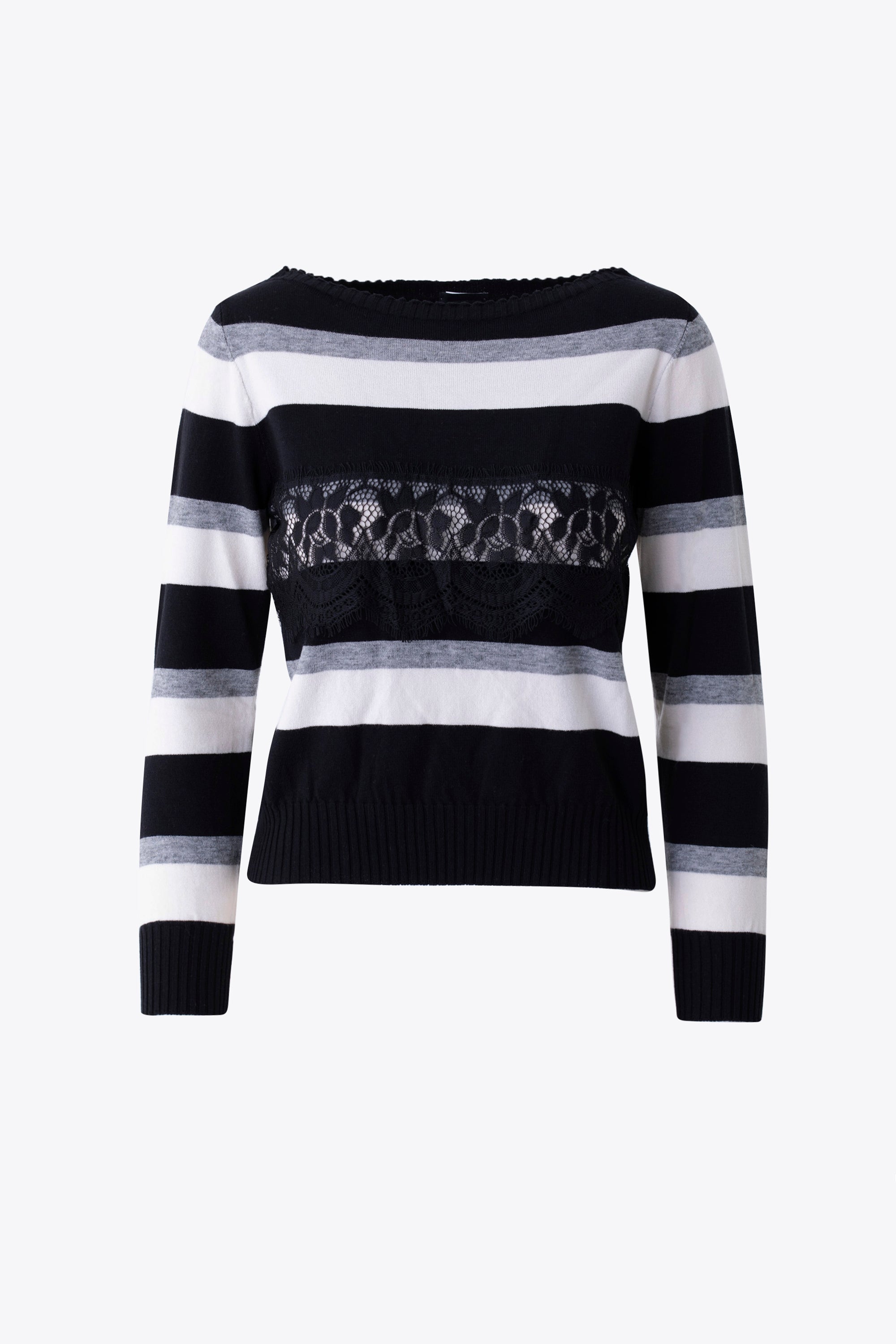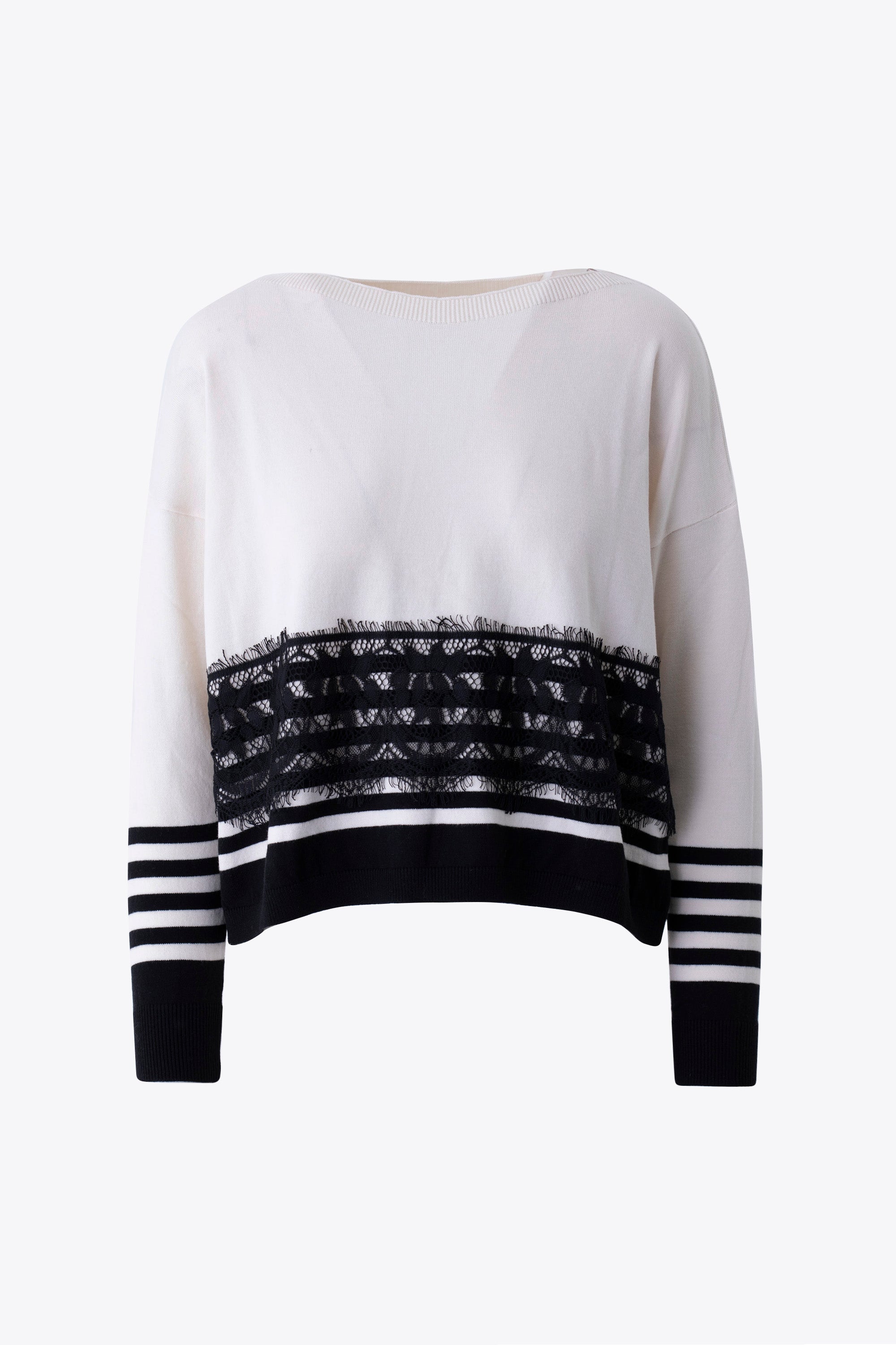 Maglia a righe orizzontali con inserto in pizzo - FW26