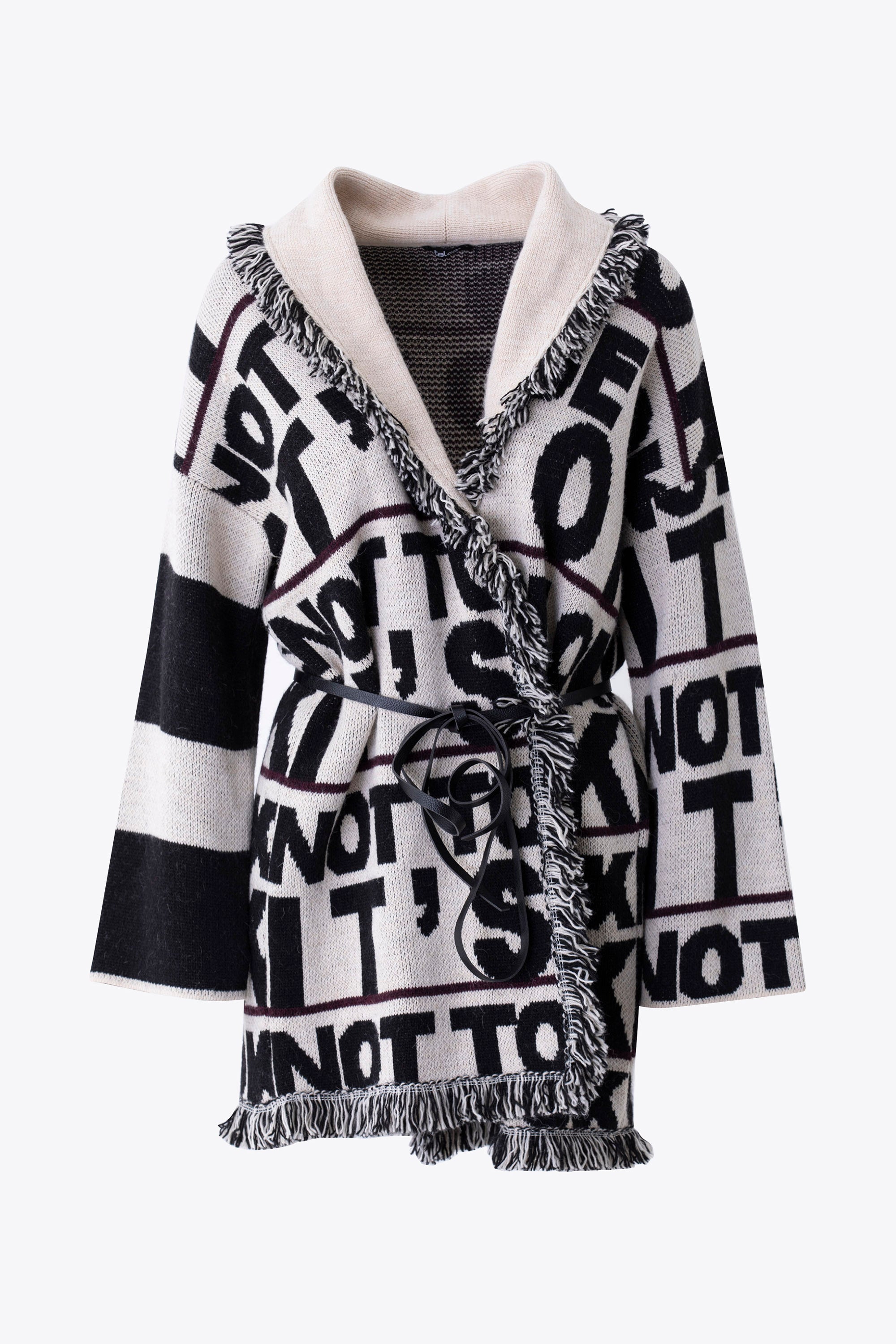 Cardigan lungo in misto lana lavorazione jaquard a lettere - FW26