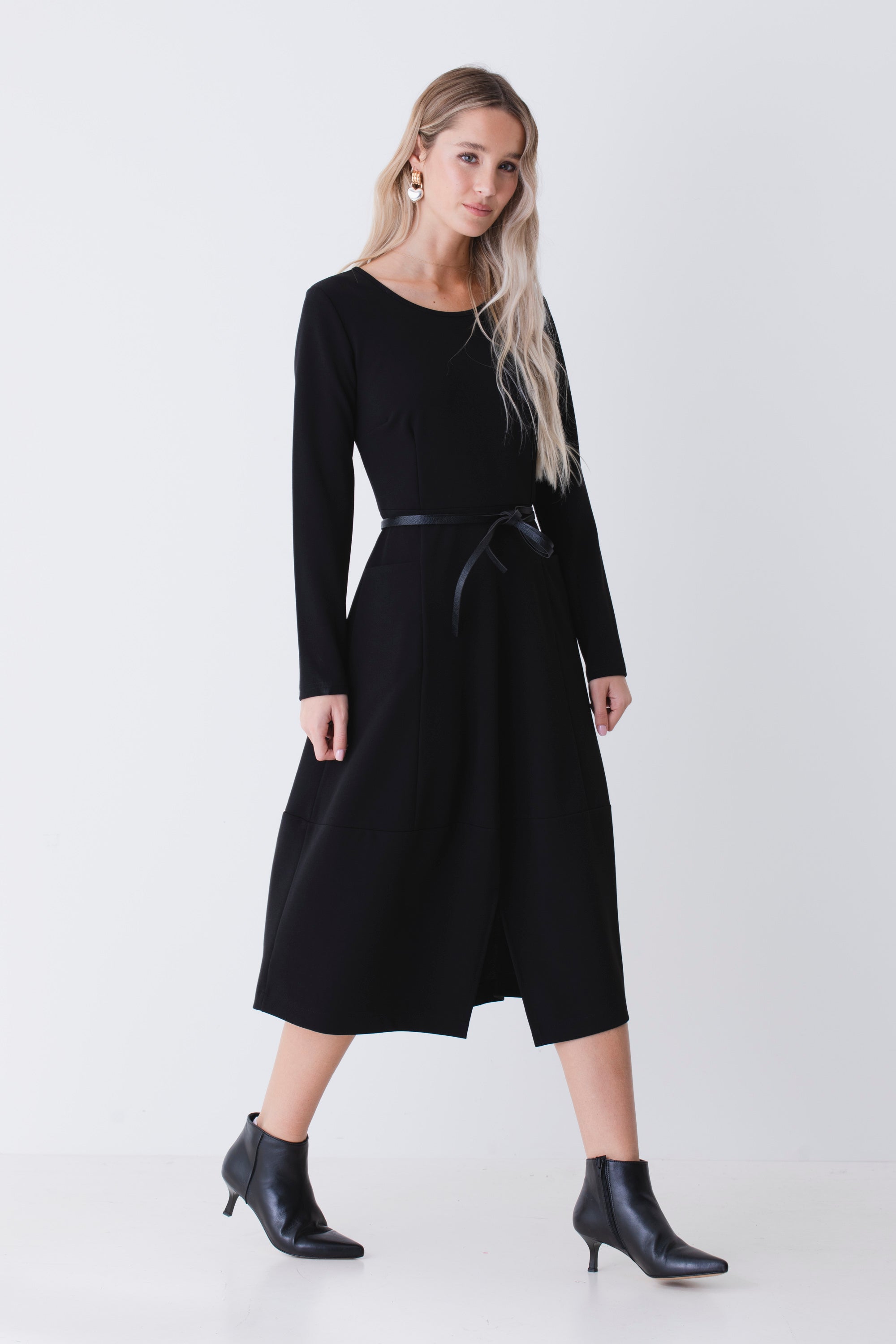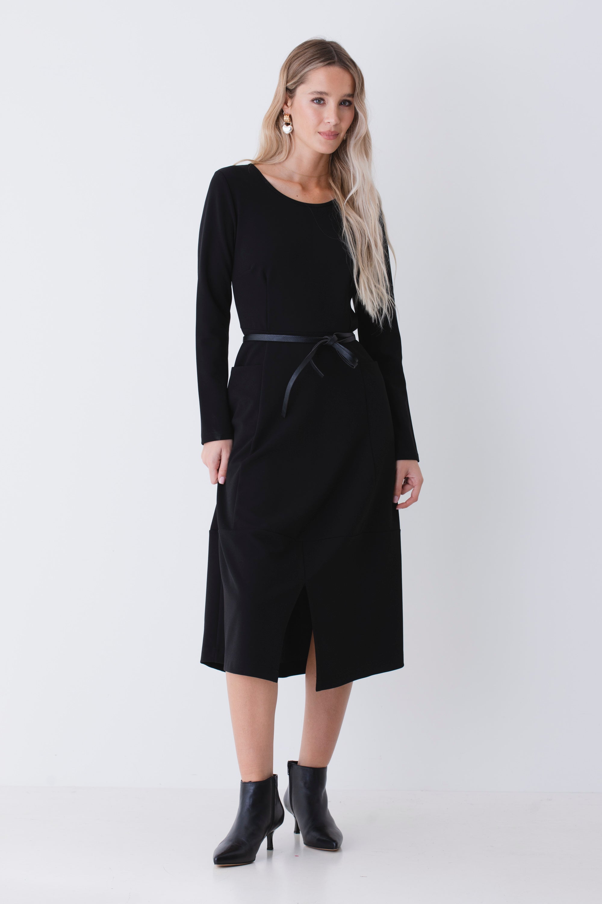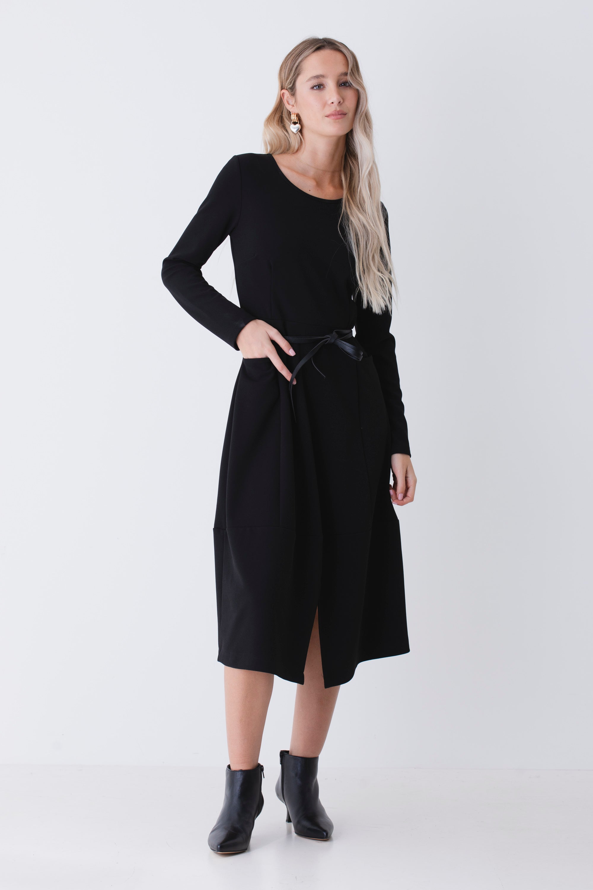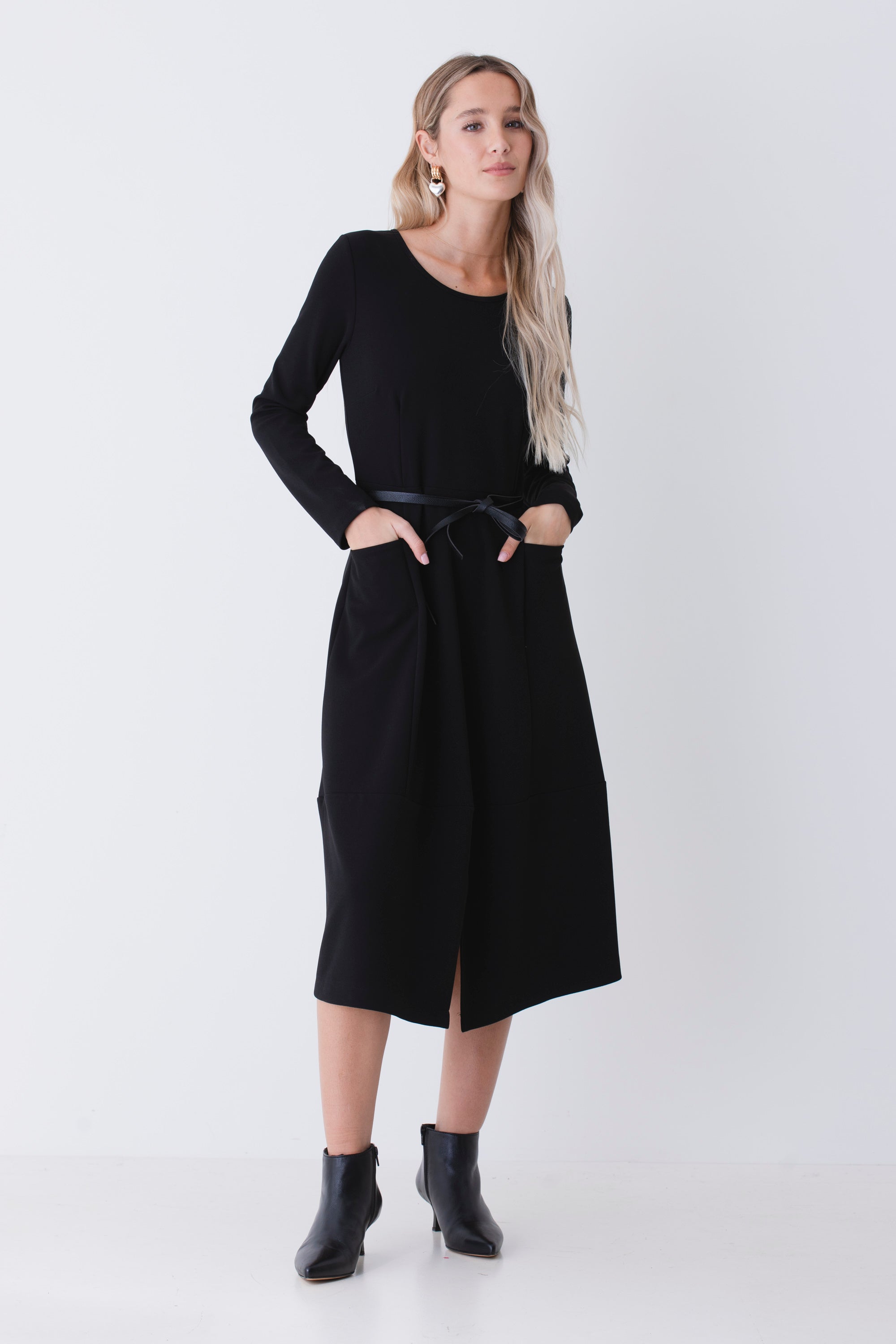 Abito lungo a uovo in scuba crepe con tasche - FW26