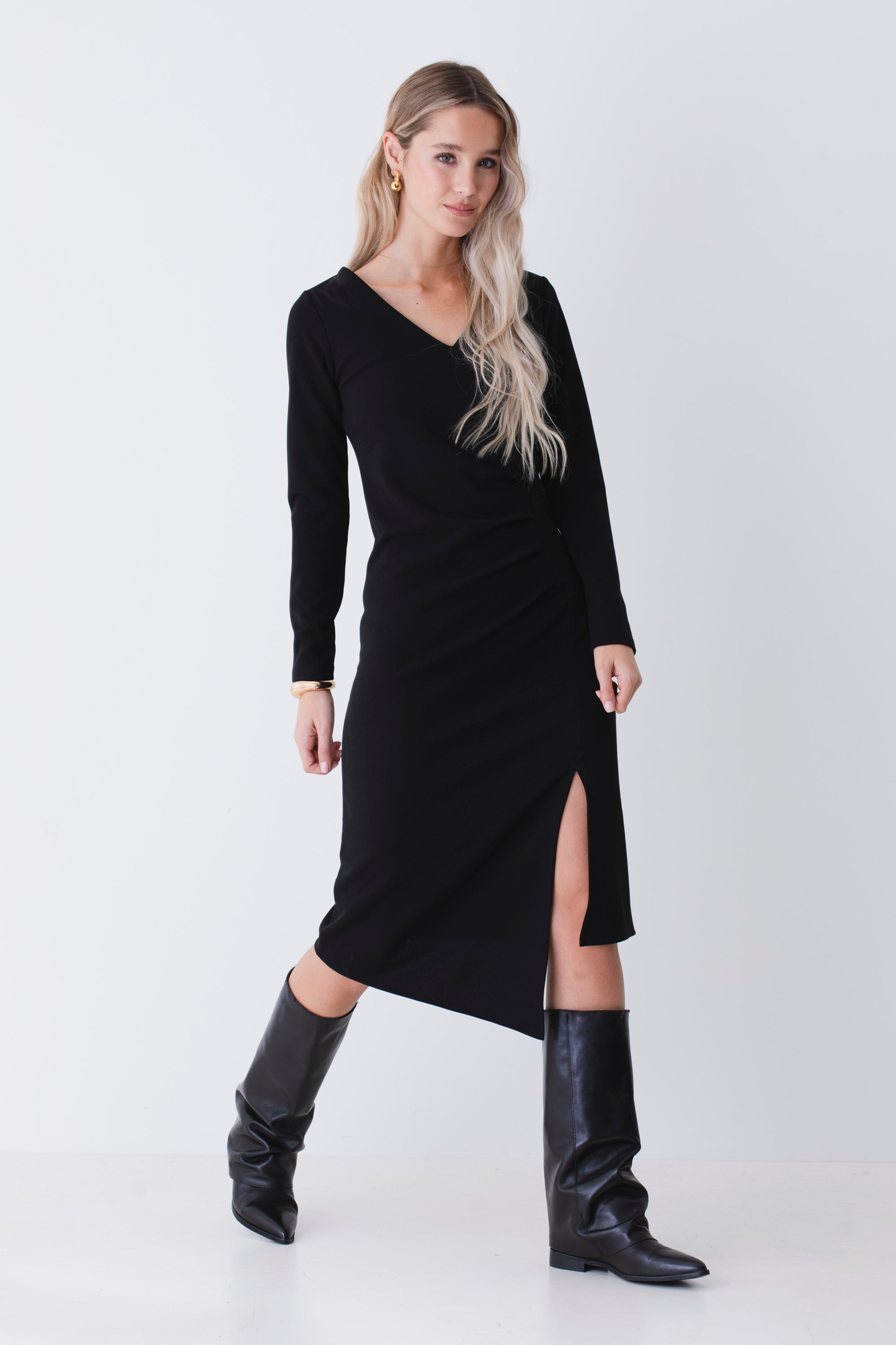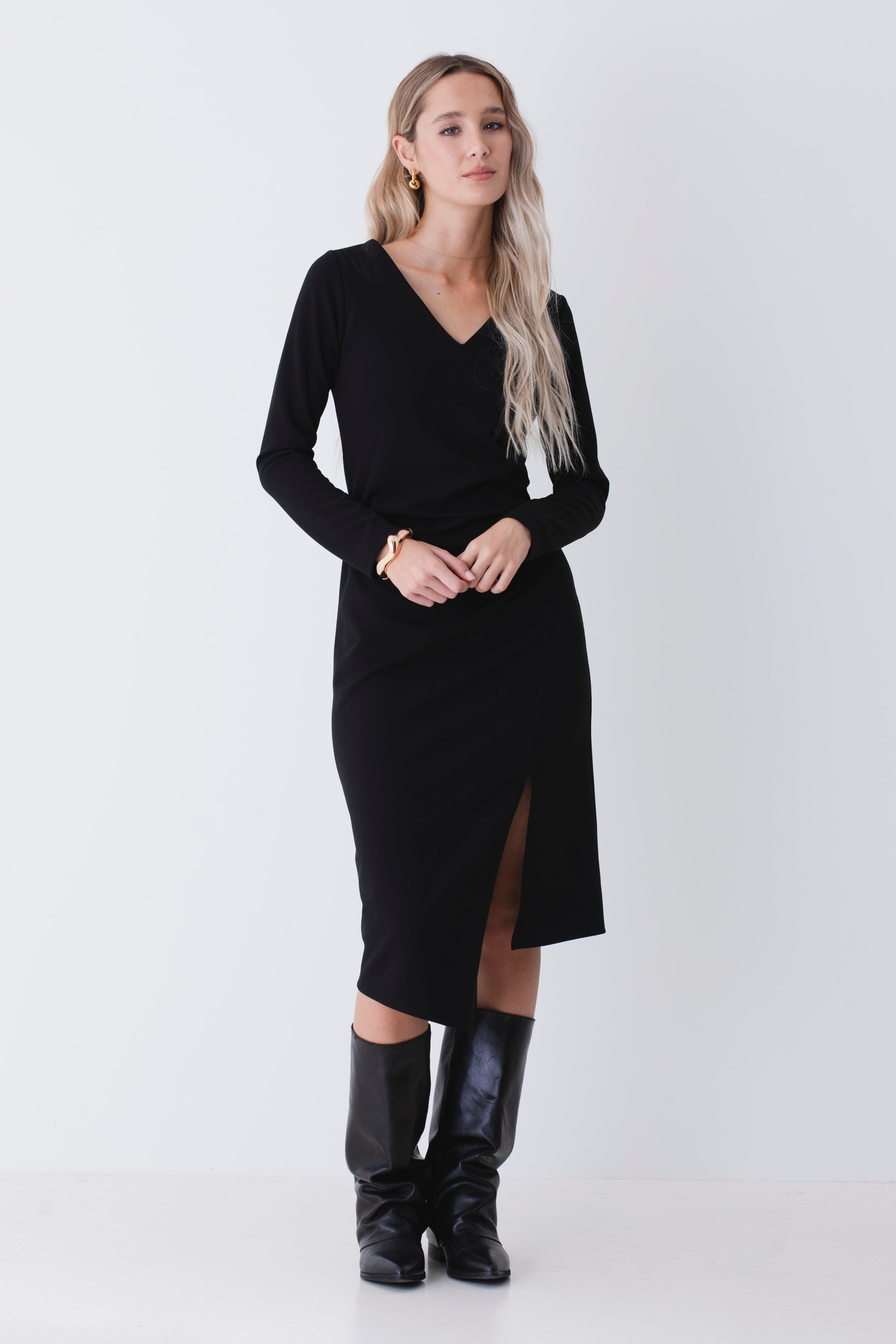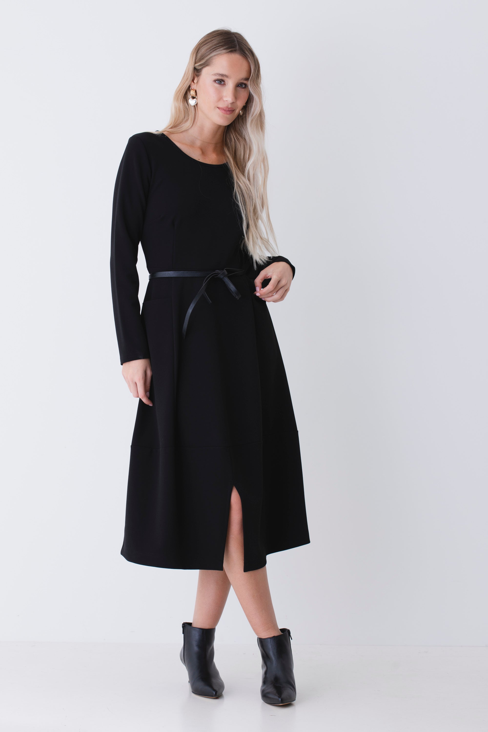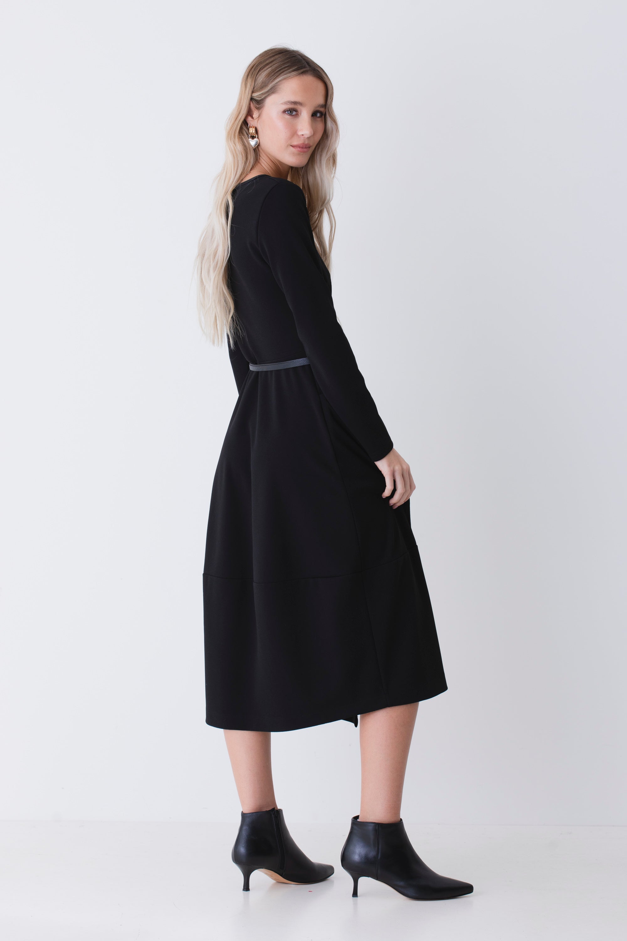 Abito lungo a uovo in scuba crepe con tasche - FW26