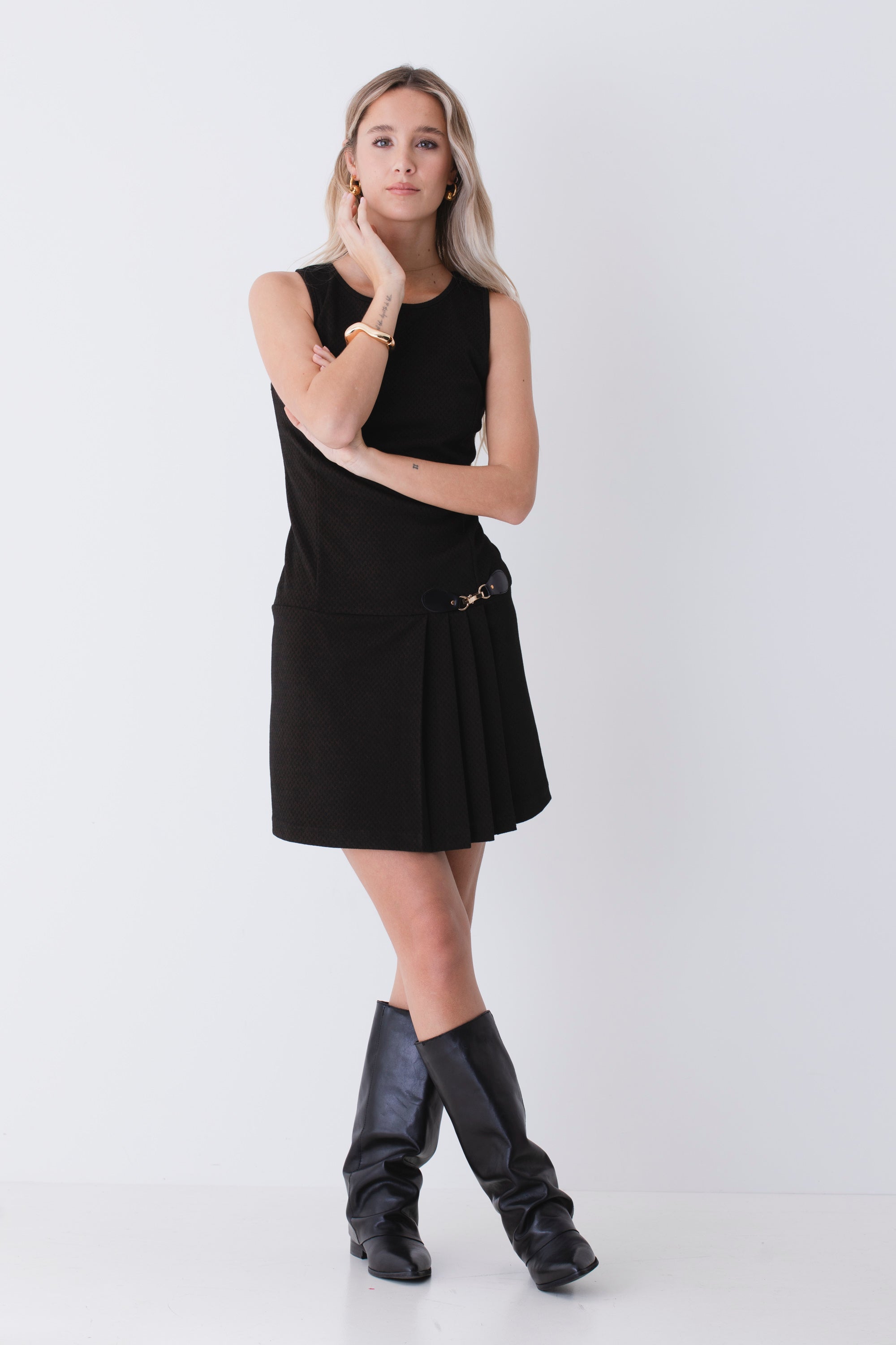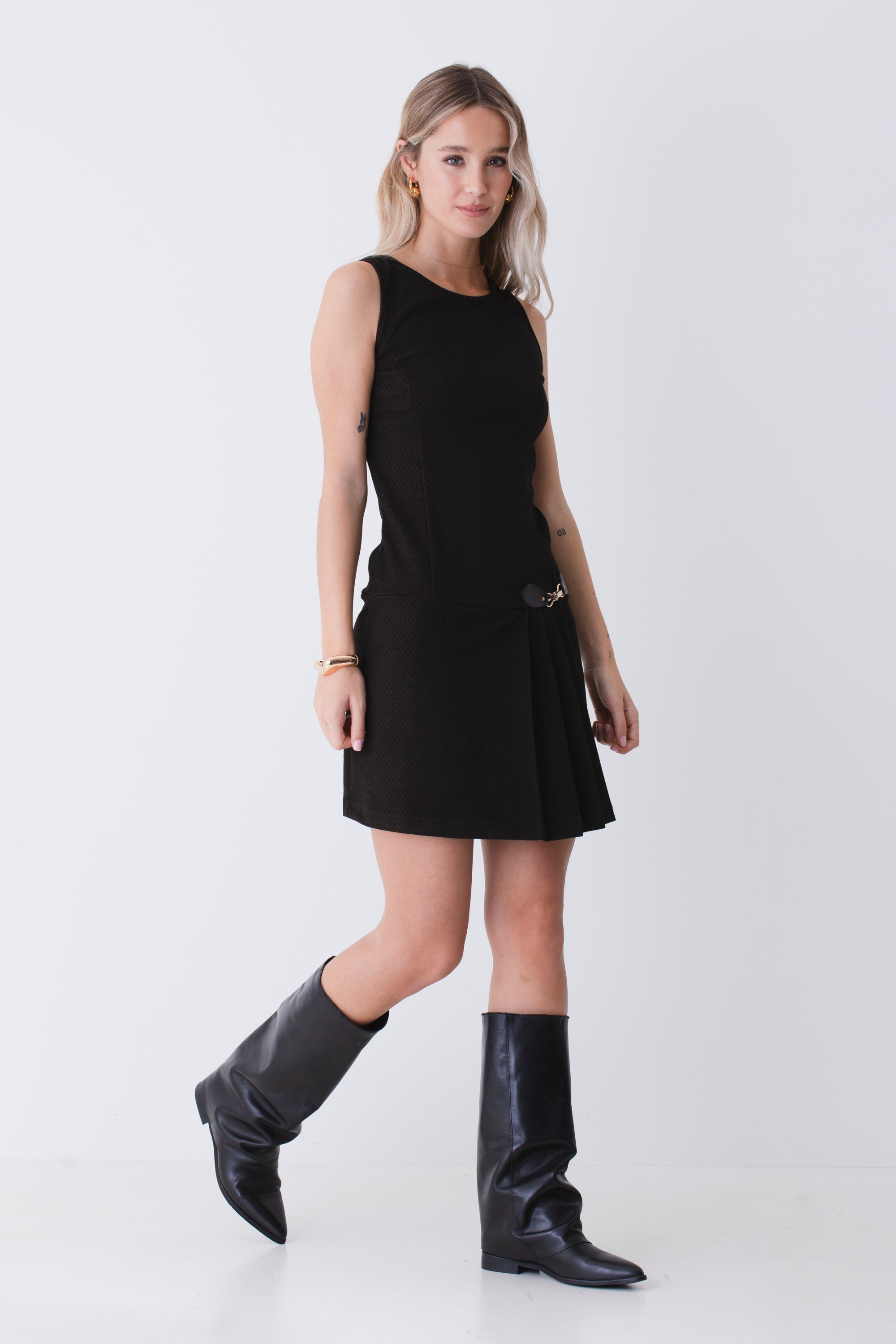 Abito corto con gancio e pieghe in tessuto jacquard - FW26