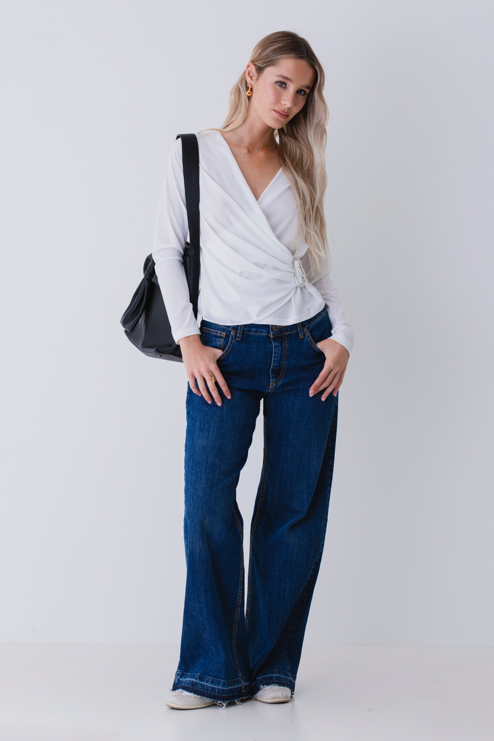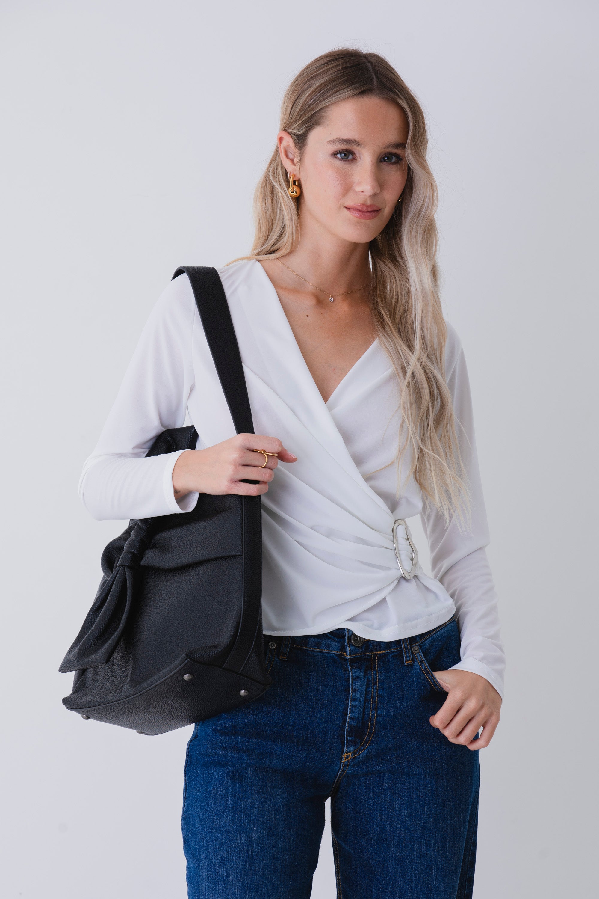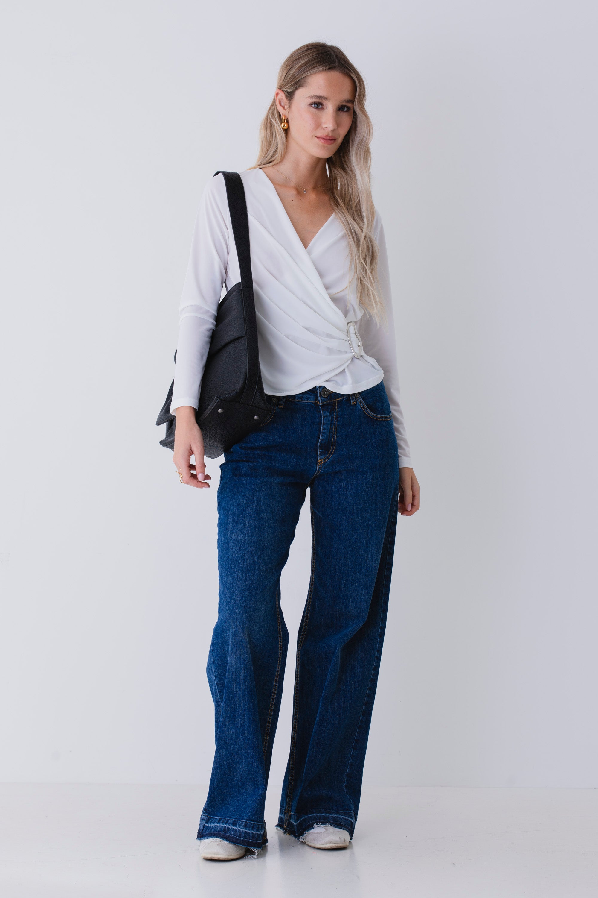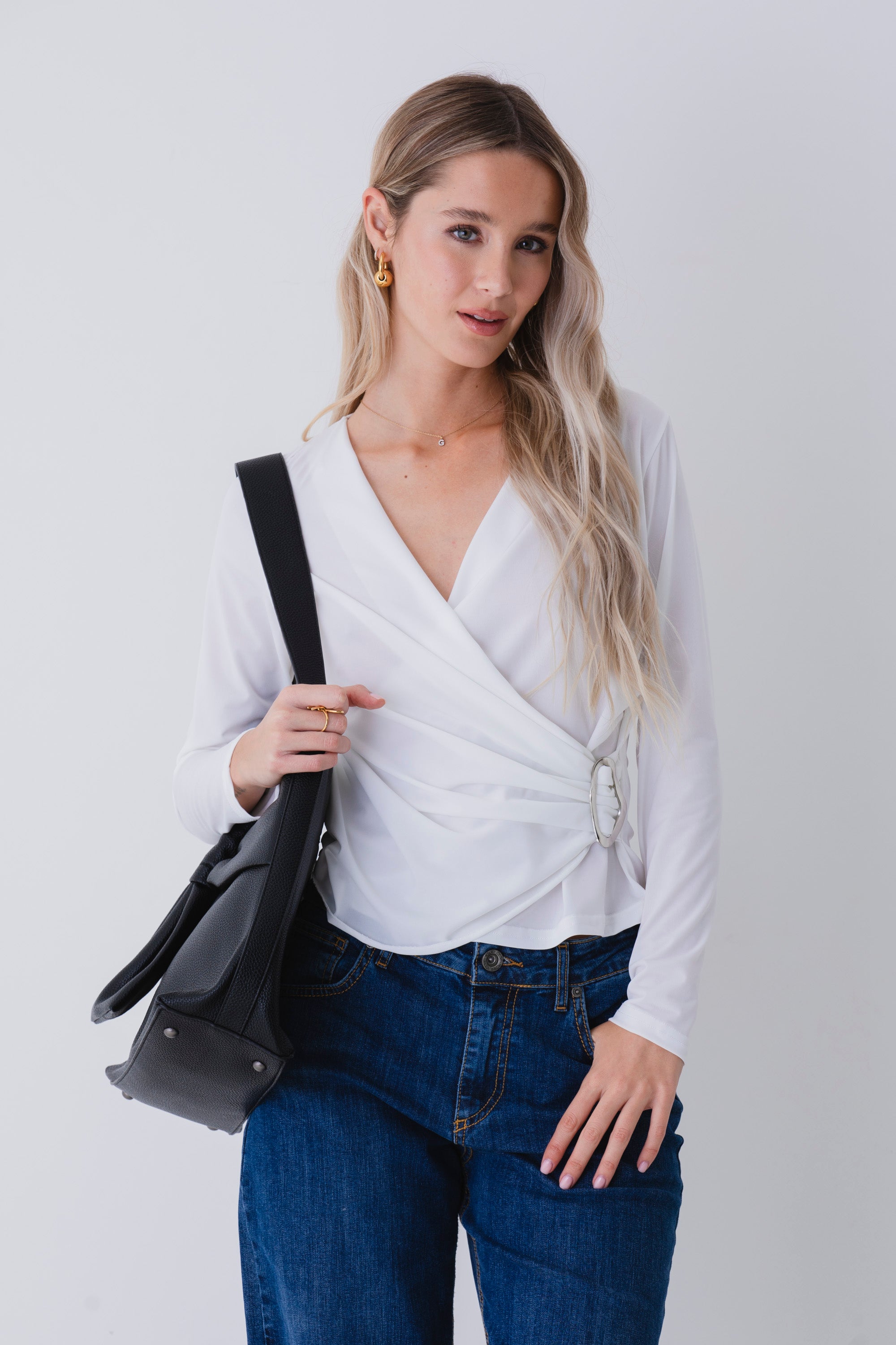 Blusa incrociata con fibbia decorativa in jersey elasticizzato - FW26
