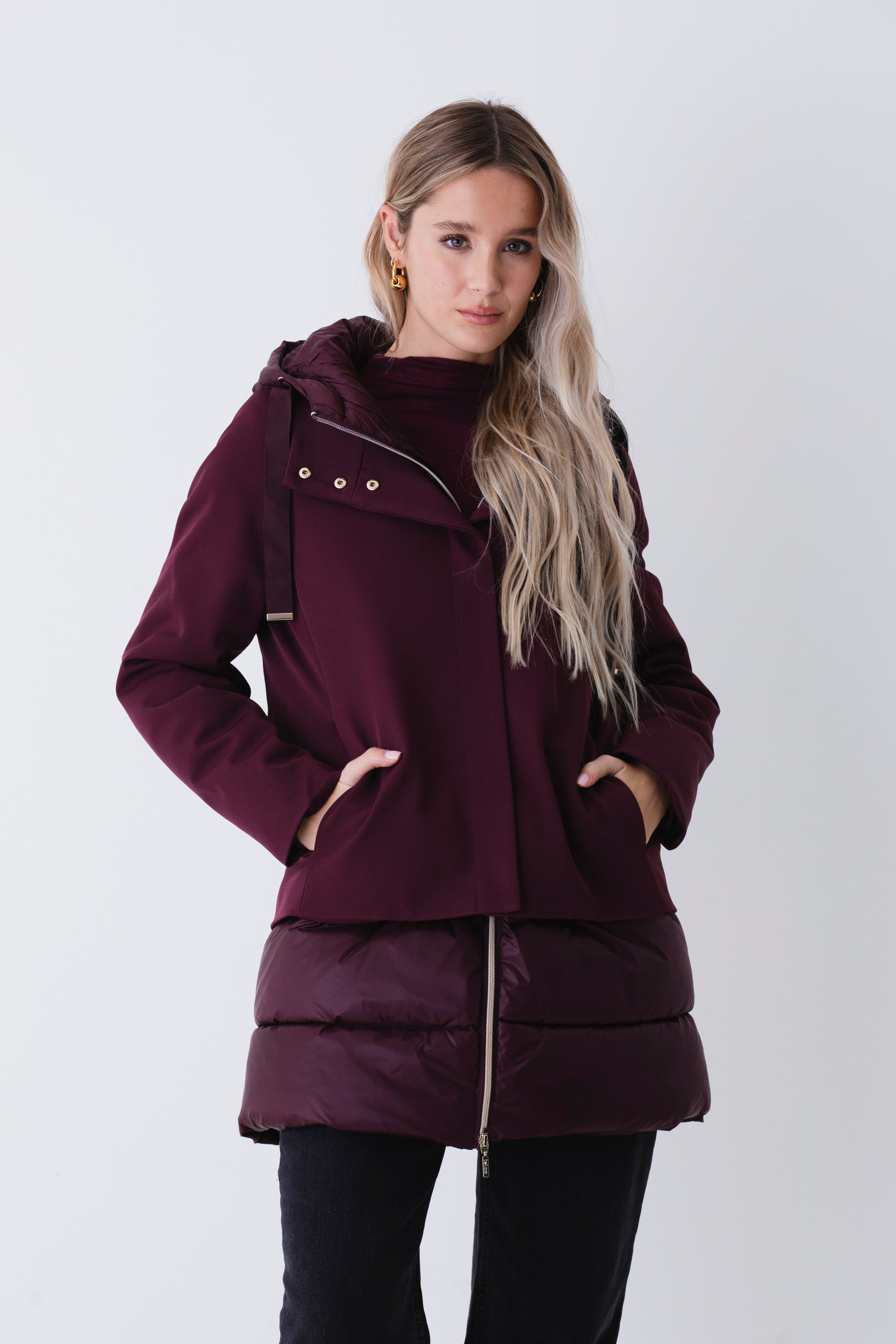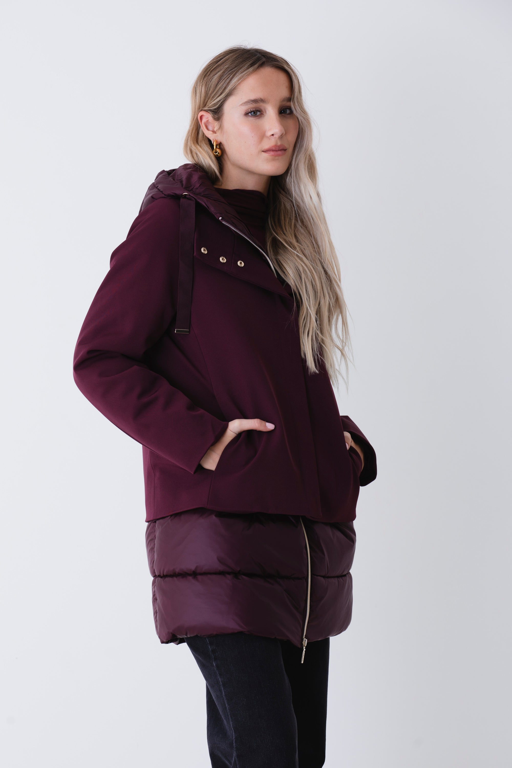 Piumino corto in nylon con inserti in tessuto imbottito lucido - FW26