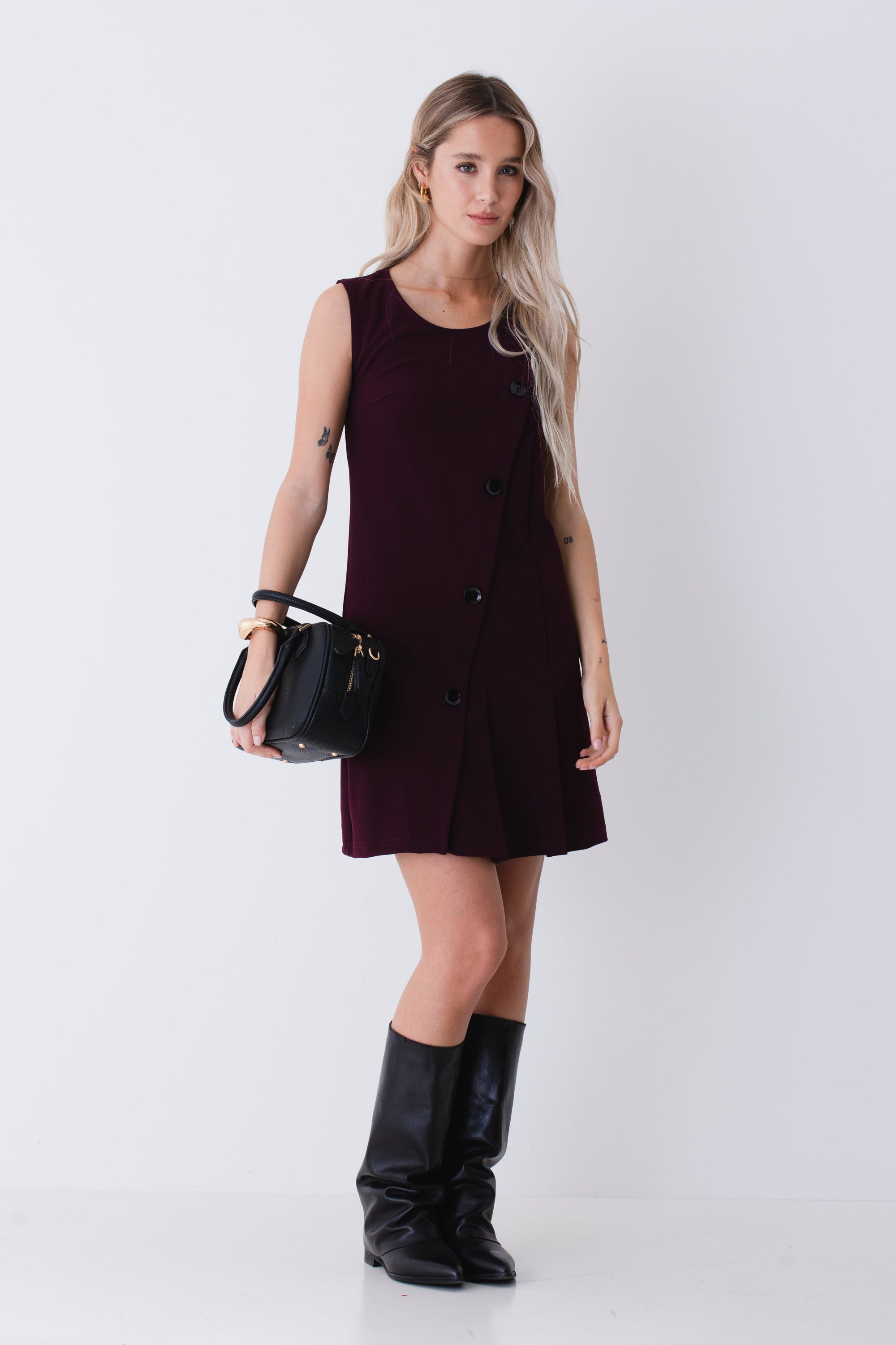 Abito corto con bottoni decorativi in scuba crepe - FW26