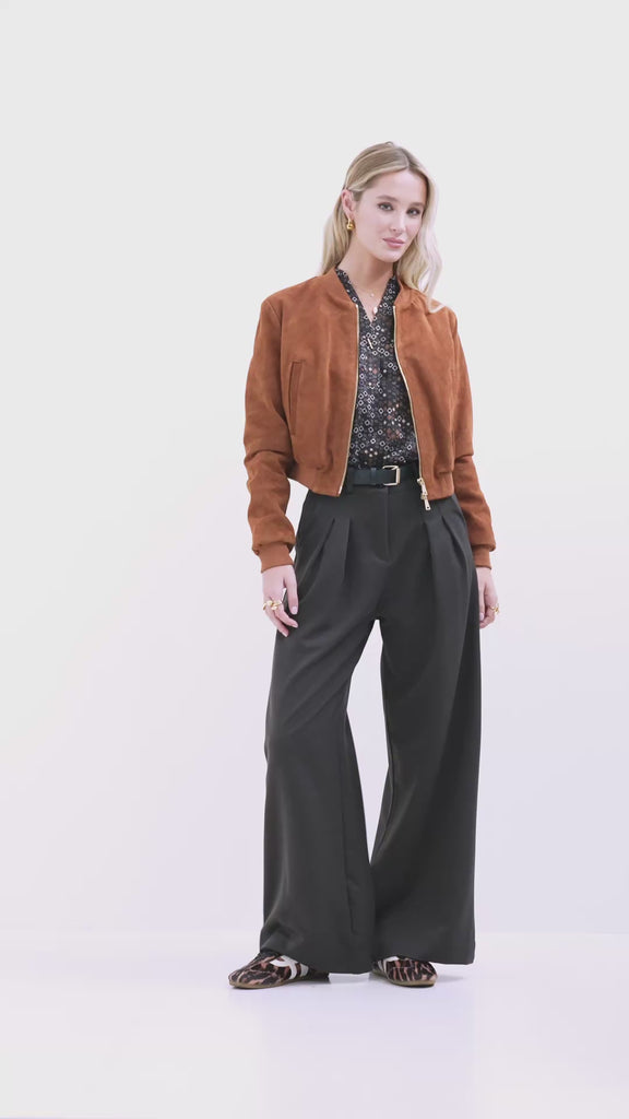 Pantalone palazzo con pinces in mano lana - FW26
